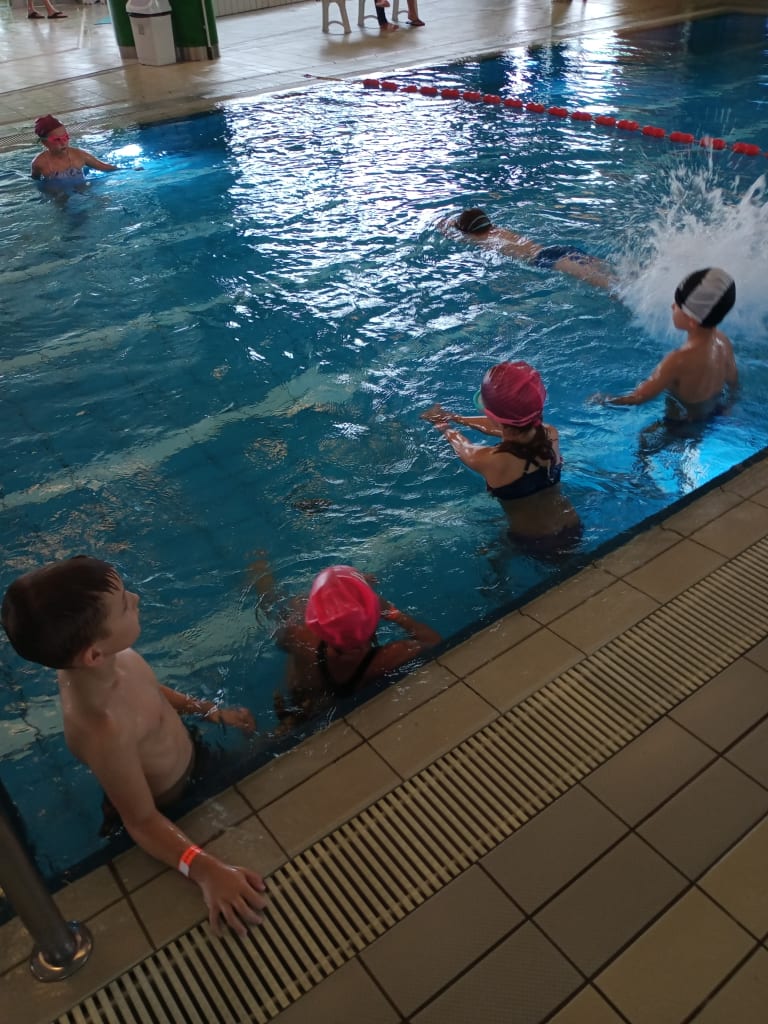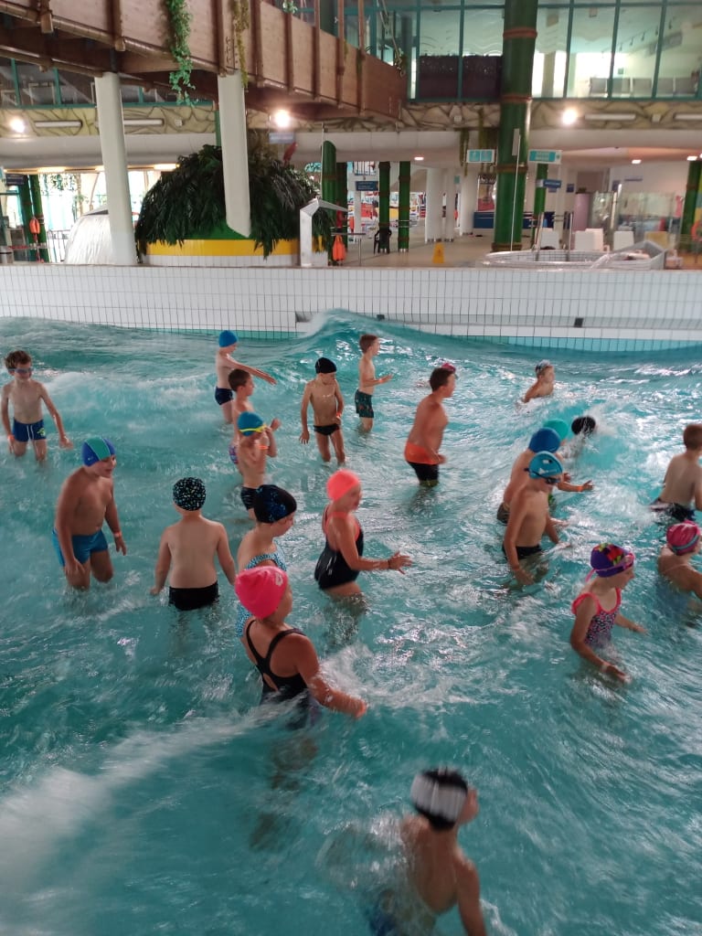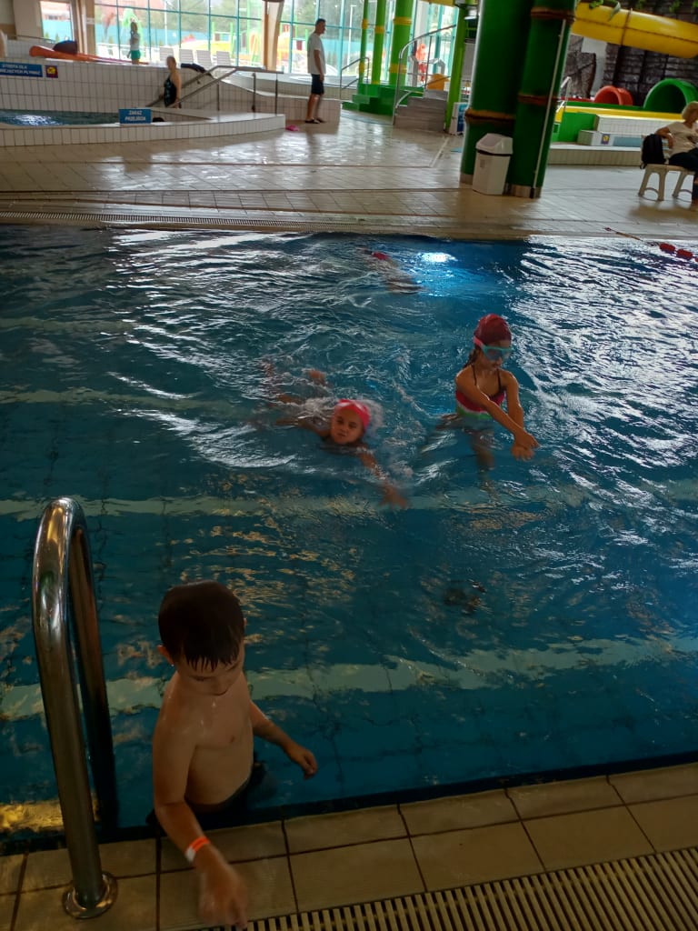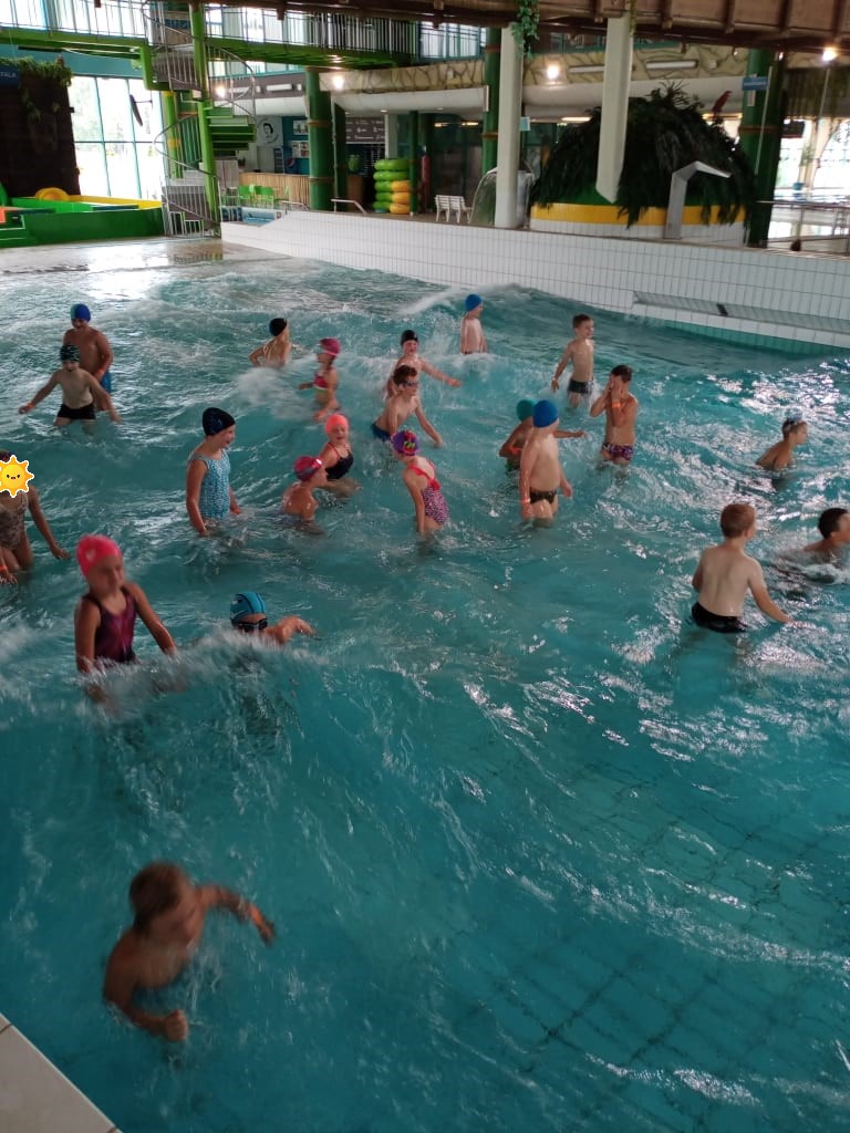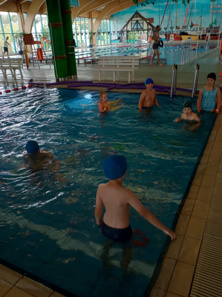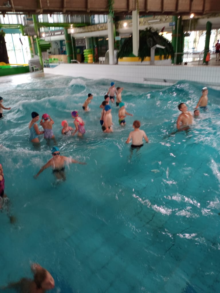 16 września uczniowie klas I – III naszej szkoły rozpoczęli naukę pływania. Wyjazdu na basen odbywają się w ramach projektu powszechnej nauki pływania „Umiem pływać”. Przez dziesięć kolejnych czwartków wczesnym rankiem uczniowie wraz ze swoimi paniami jeździć będą do Parku Wodnego w Tarnowskich Górach, gdzie pod opieką instruktorów nauczą się pływać. Pierwsze zajęcia już za nami. Dzieci wspaniale czuły się w wodzie i wzorowo współpracowały z instruktorami.