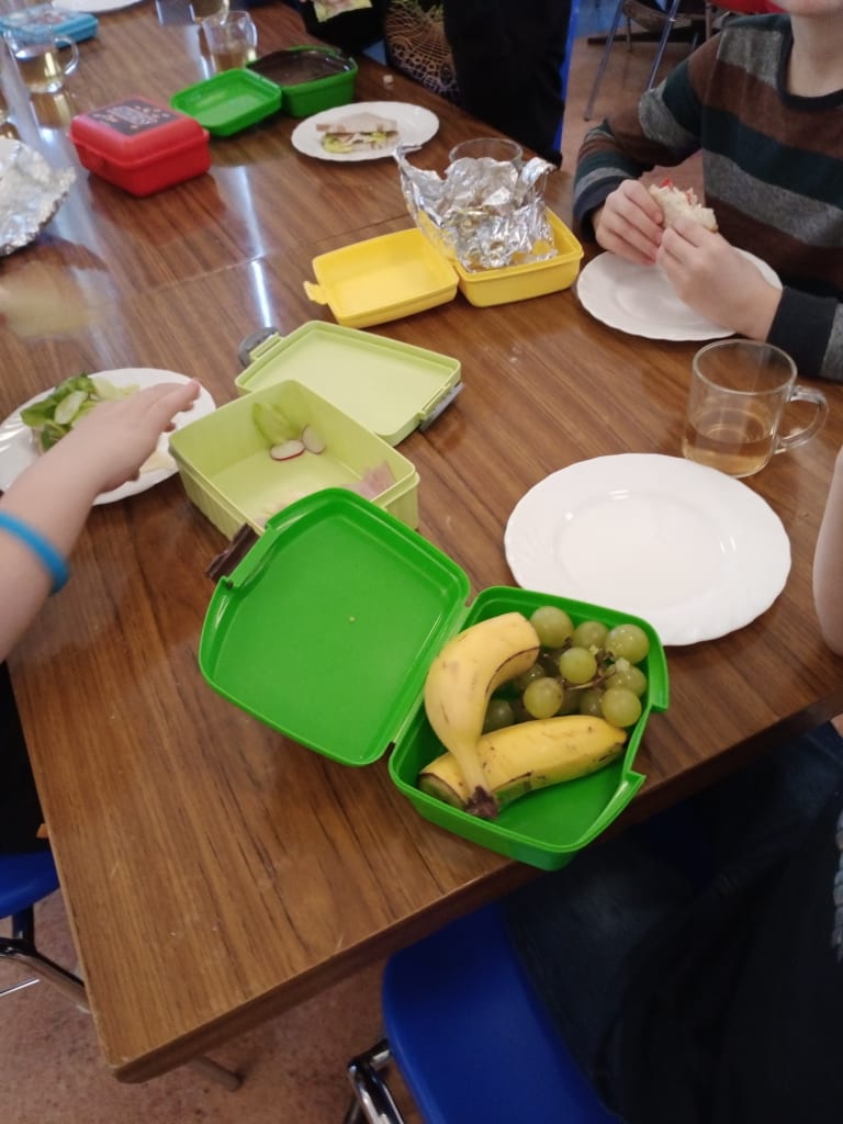 8 listopada uczniowie klas I-III usystematyzowali wiedzę na temat zdrowego żywienia. Wiedzą, że zdrowe śniadanie to zbilansowane śniadanie. Znają produkty z piramidy zdrowego żywienia. Rodzice każdego dnia przygotowują dzieciom śniadania, ale dziś szczególne zadbali o ten posiłek. Uczniowie zasiedli do stołu z przeróżnymi, bogato przygotowanymi śniadaniówkami. W miłej atmosferze dzieci zjadły zdrowy posiłek. Pamiętajmy, że dzieci które jedzą pożywne śniadanie lepiej radzą sobie w szkole, a także mają większe szanse na utrzymanie prawidłowej wagi.