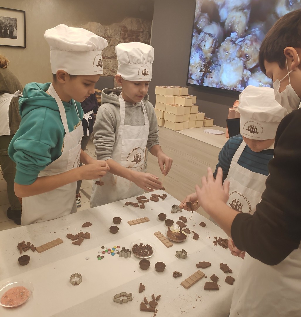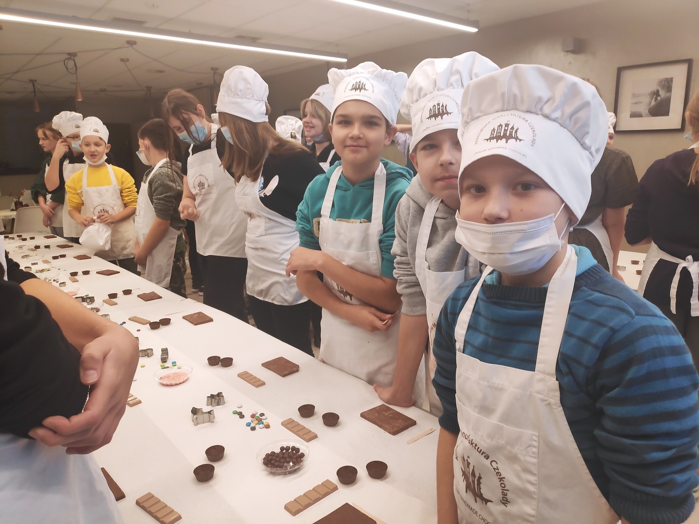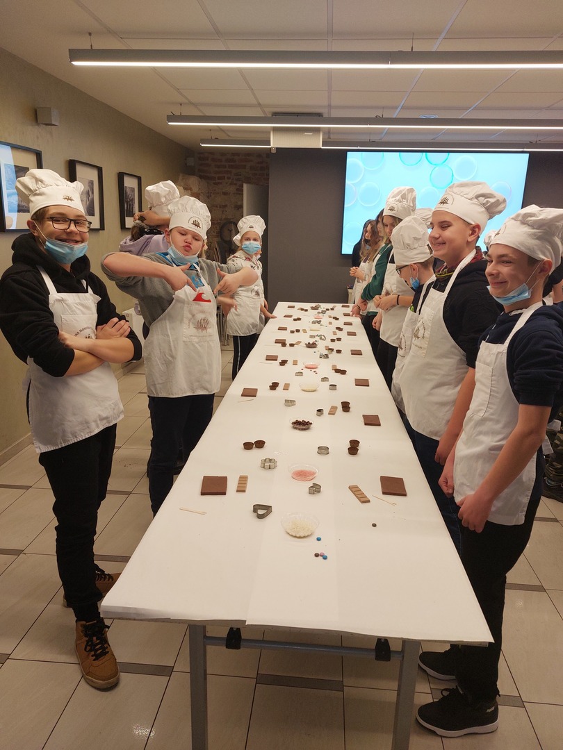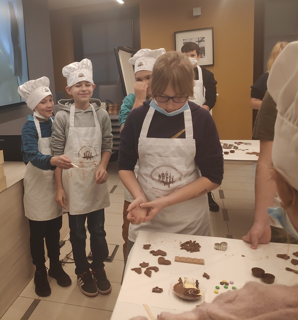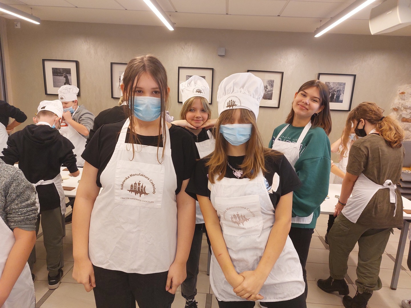 Naszą wizytę w Grodzie Kraka rozpoczęliśmy od słodkich warsztatów w Fabryce Czekolady, gdzie mieliśmy okazję zobaczyć ciekawy film o produkcji czekolady. Jednak tym na co wszyscy czekali była możliwość zrobienia własnoręcznie pysznych czekoladowych pralin. Dla wyjątkowych smakoszy słodkości były również czekoladowe tatuaże. Smakoszy było wielu….. było pysznie