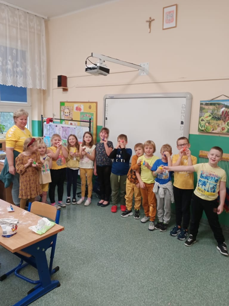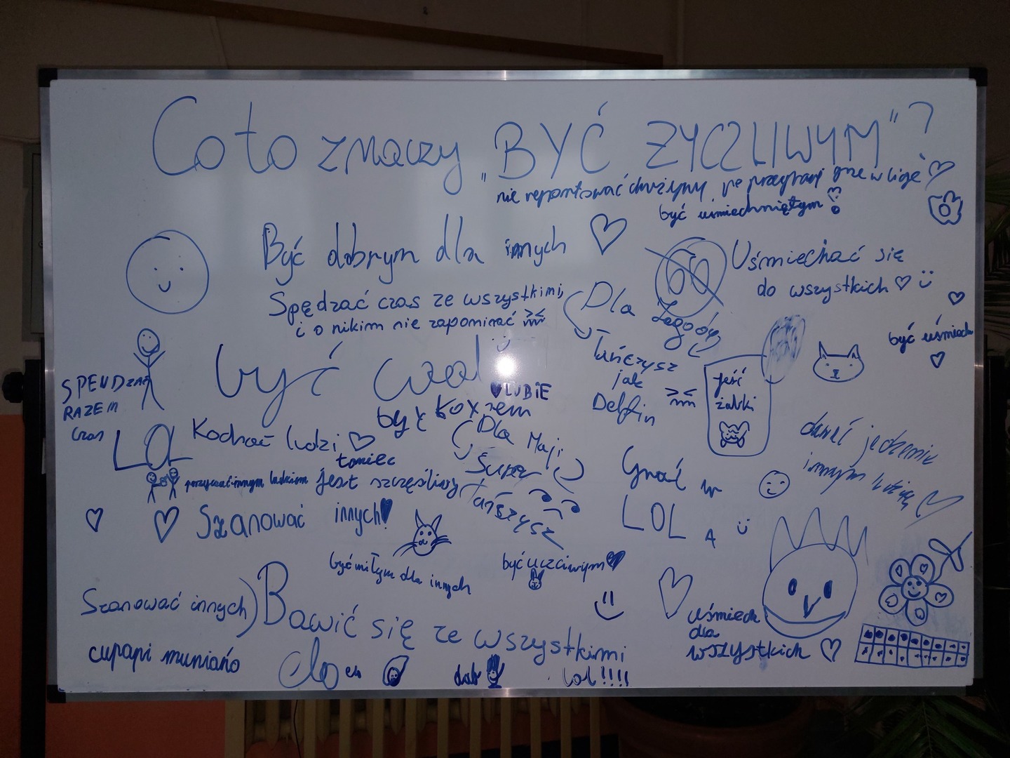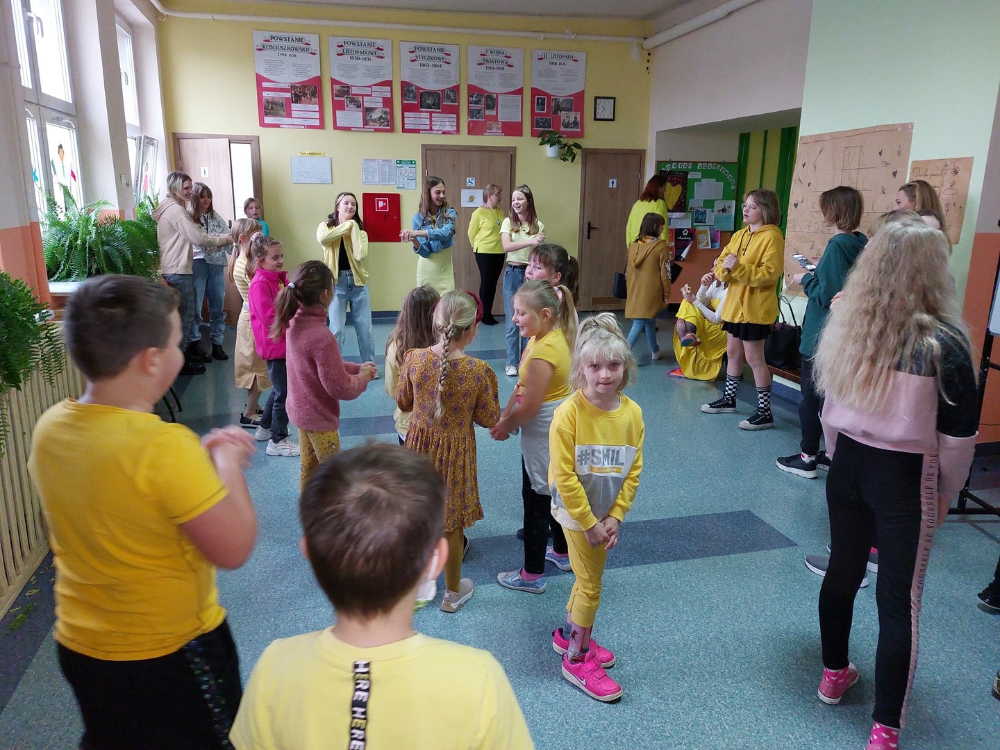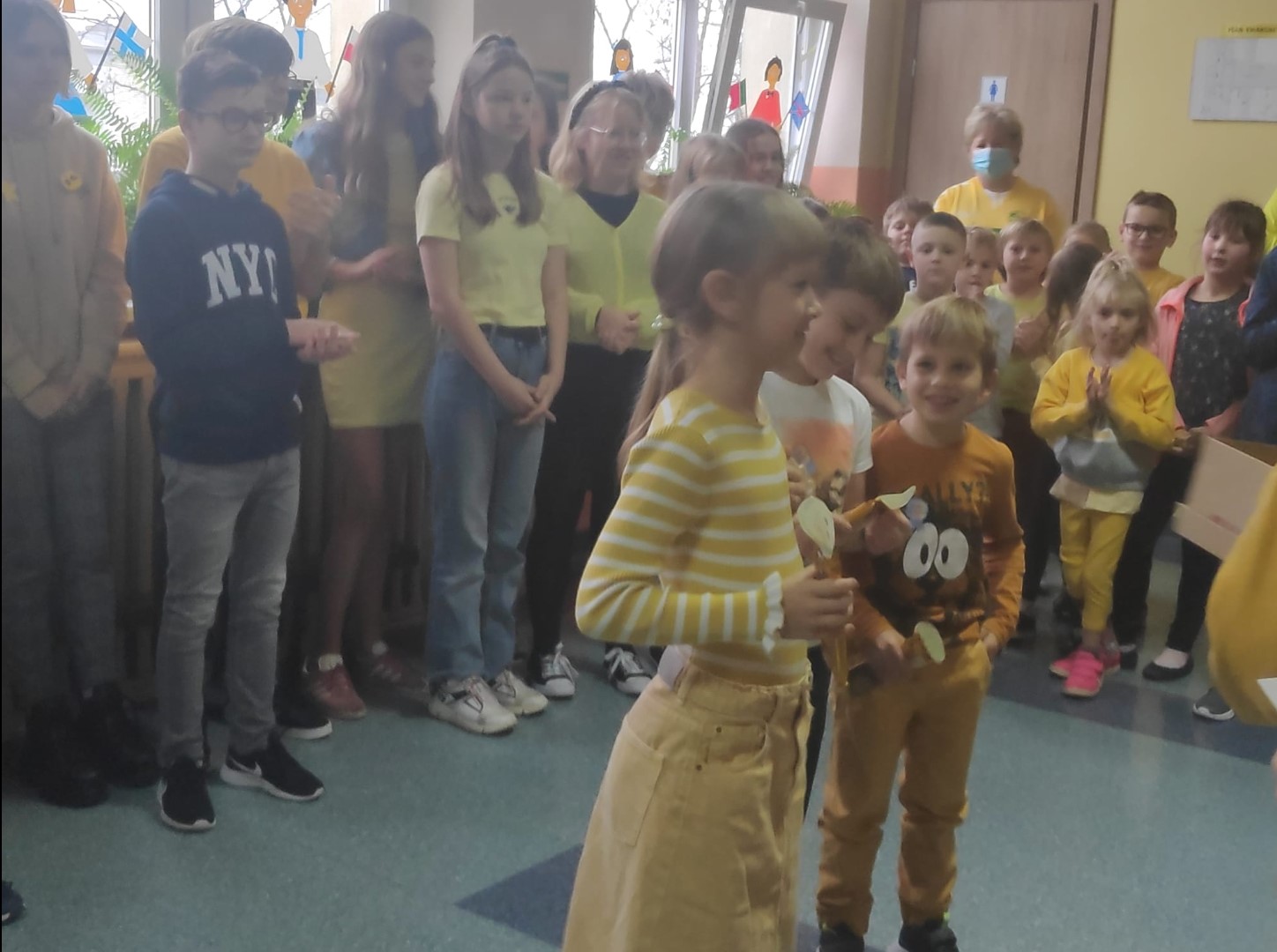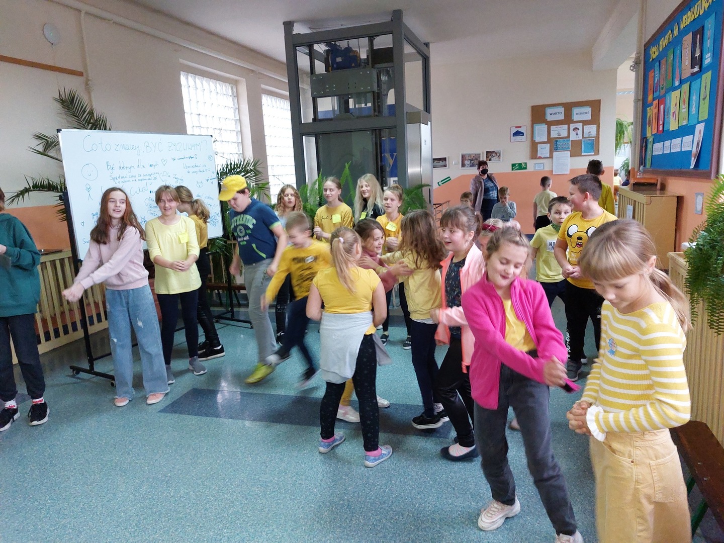 21 listopada obchodzony jest jako Światowy Dzień Życzliwości i Pozdrowień, dzień dobrych uczynków i pozytywnych emocji. Jego celem jest uwrażliwienie ludzi na wzajemną życzliwość, wzbudzenie w nich pozytywnych emocji. Jest to apel przeciwko problemom i często smutnej rzeczywistości. Przesłanie akcji jest proste bądźmy życzliwi codziennie, a nie tylko od święta. W naszej szkole też, tak ważny dzień nie przeszedł bez echa. W każdej klasach odbyły się głosowania na najżyczliwszą osobę, uczniowie dzielili się też życzliwym gestem wymieniając się pomiędzy sobą kartką z komplementem i słodkim łakociem. Dodatkowym pomysłem budzącym kreatywność było zapisywanie na specjalnie przygotowanej tablicy, co to znaczy „być życzliwym” nie tylko od święta oraz rozwiązywanie krzyżówek z szukaniem hasła. Była też skrzynka życzliwości, do której można było wrzucać miłe słowa skierowane do najsympatyczniejszej osoby. W klasach IV-VIII przeprowadzona została prezentacja na temat życzliwości, a klasy młodsze uczestniczyły w warsztatach tematycznych z pedagogiem szkolnym. Cała społeczność szkolna w geście solidarności założyła stroje w żółtych barwach. Przez cały dzień odbywały się też gry i zabawy na wesoło oraz tańczące przerwy. Warto walczyć, by wzajemne relacje pomiędzy uczniami były nacechowane tolerancją i wzajemną sympatią.Pamiętajmy, że pozytywna energia, którą przekazujemy w świat do ludzi, wraca do nas z nawiązką.