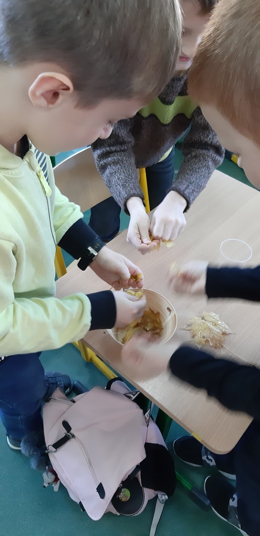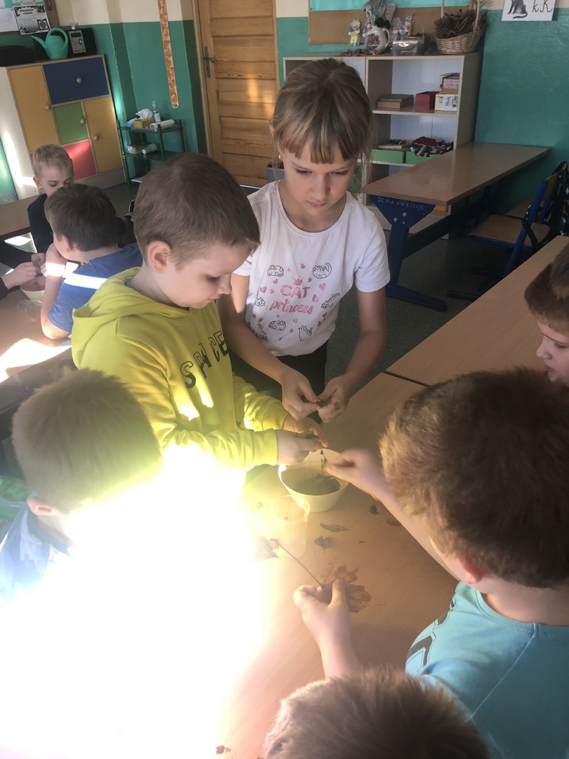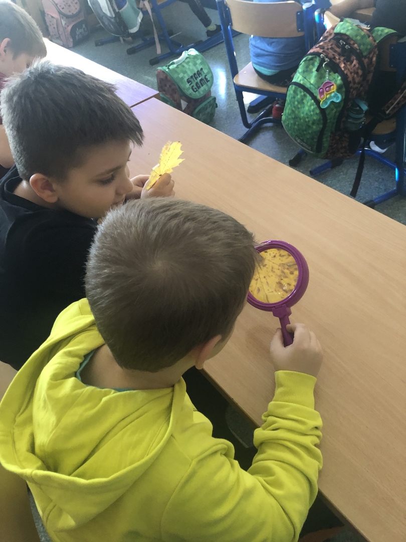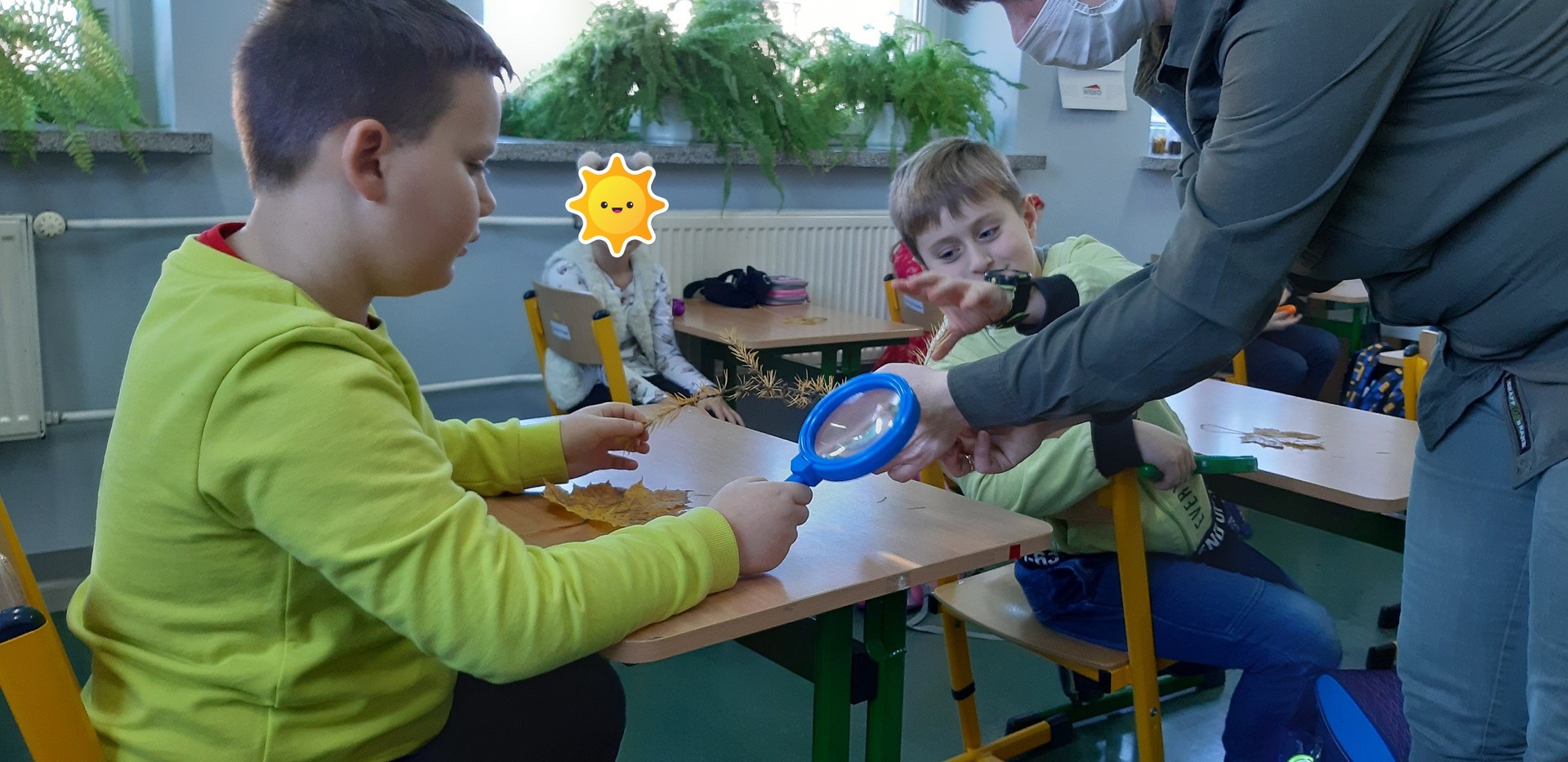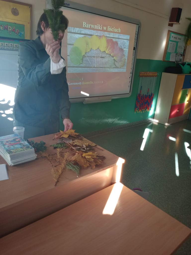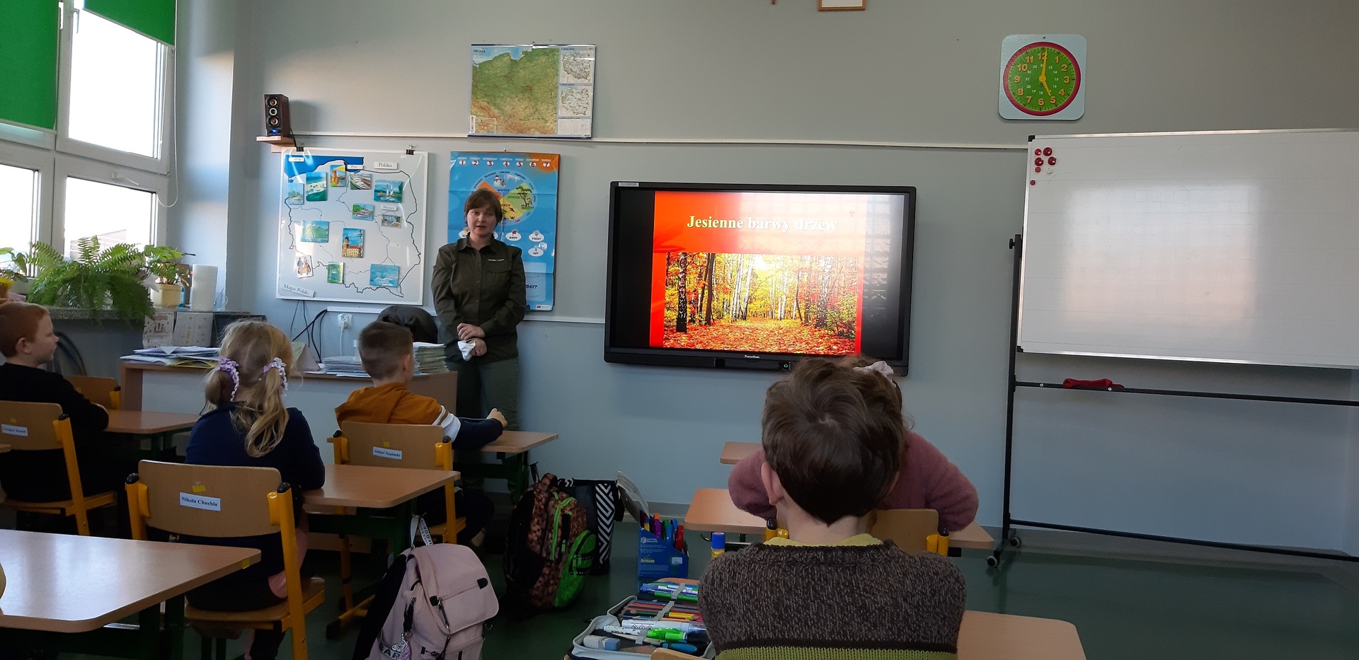Uczniowie klasy I – III gościli Panią Monikę, która to jest pracownikiem Nadleśnictwa Świerklaniec. W trakcie warsztatów przeprowadzonych przez gościa dzieci dowiedziały się, dlaczego drzewa gubią liście na zimę oraz wykonały ciekawy eksperyment, który pokazał dzieciom jakie kolory ukrywają w sobie liście. W zajęciach została wykorzystana prezentacja multimedialna oraz przyrządy służące do wykonywania obserwacji przyrodniczych.
