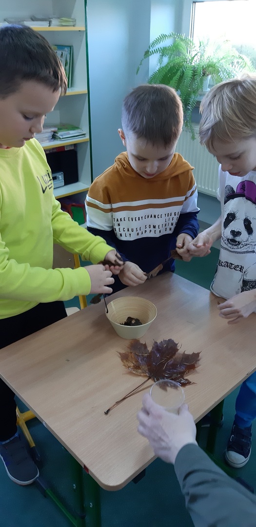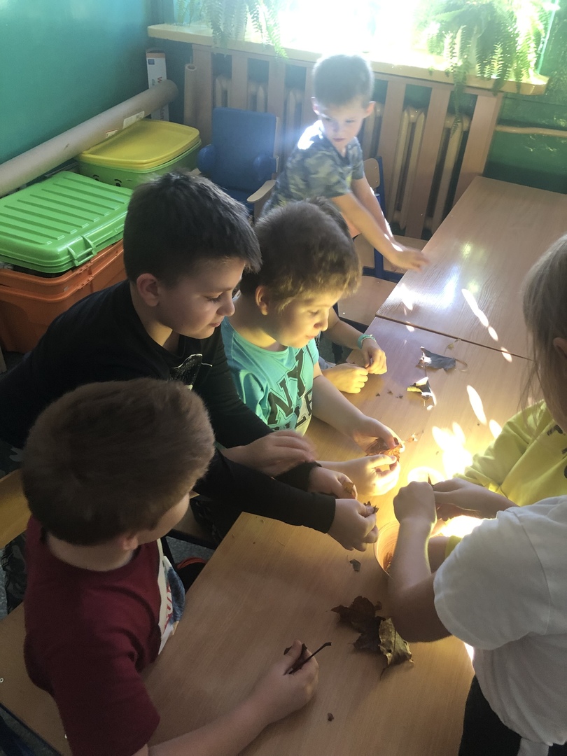 Uczniowie z zaciekawieniem i zaangażowaniem uczestniczyli w warsztatach. Tak bardzo ich pochłonęło odkrywanie świata przyrody, iż umówili się z Panią Moniką na kolejne zajęcia już wiosenne.