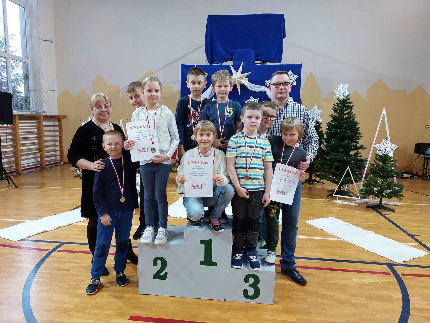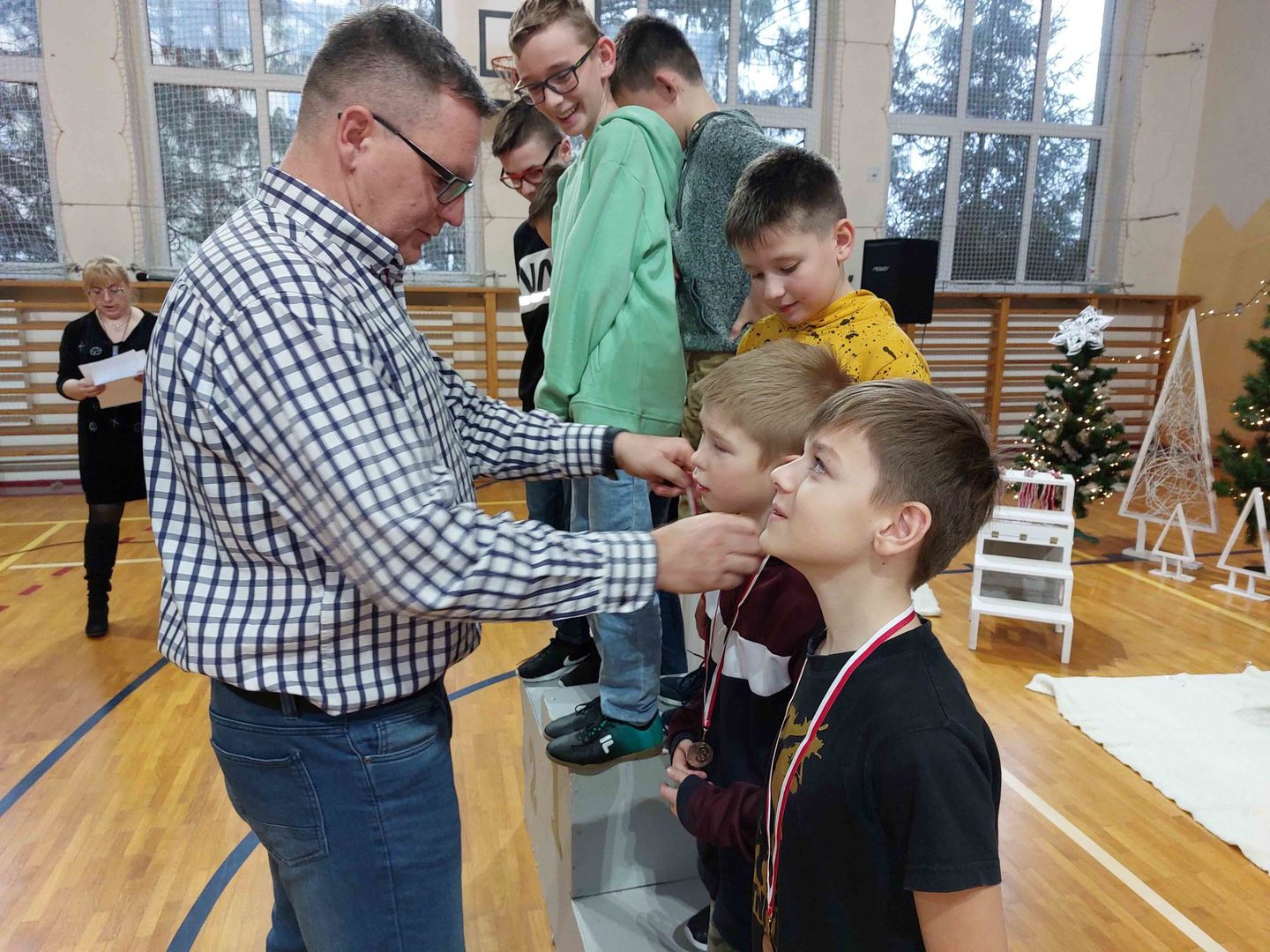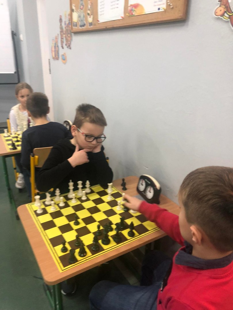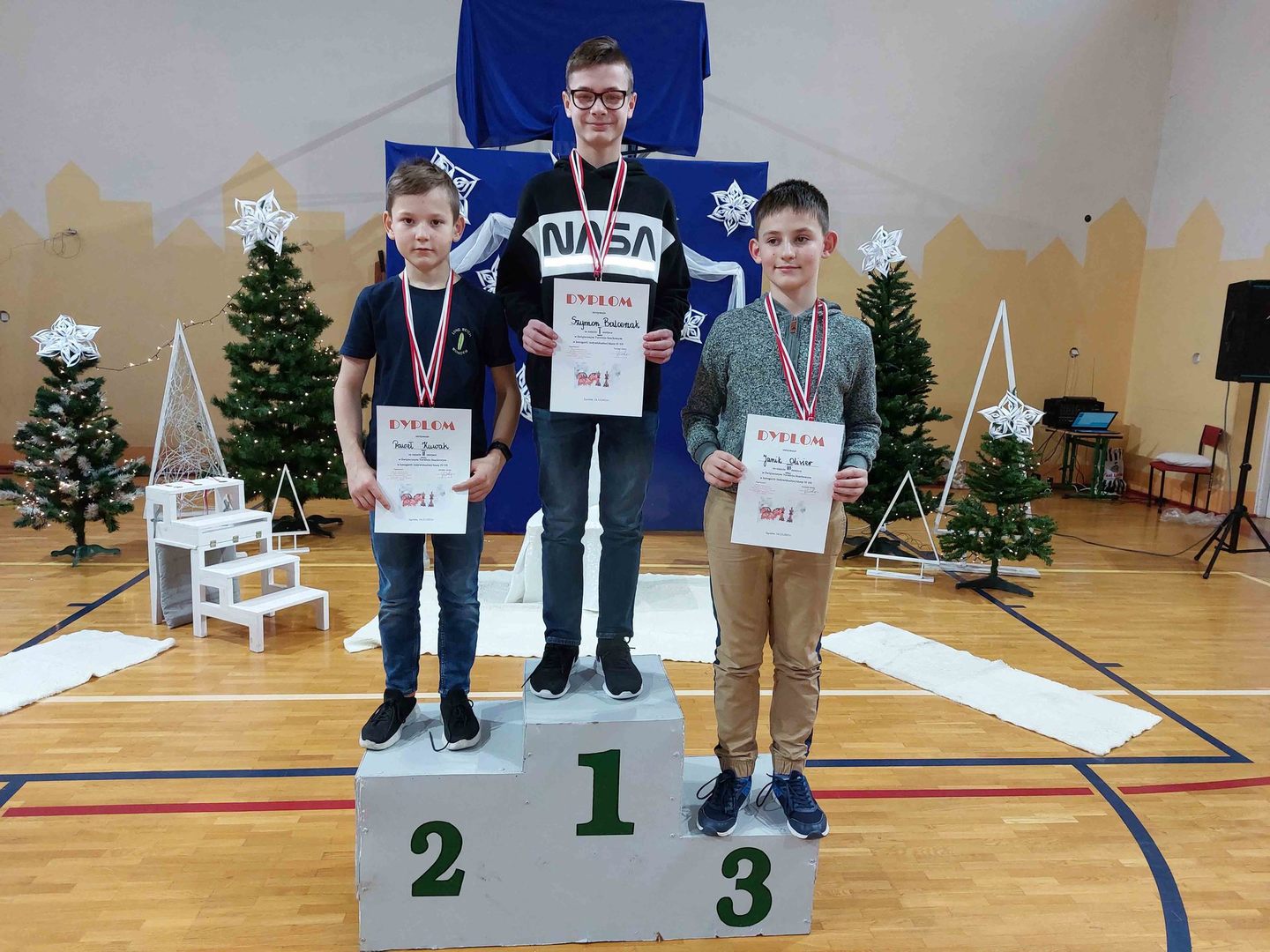 W dniu 16 grudnia 2021r. uczniowie naszej szkoły mieli okazję zmierzyć się w wyjątkowych zawodach, a mianowicie w Świątecznym Turnieju Szachowym. Do rozgrywek zgłosiło się 32 miłośników szachów z klas I -VII. Po eliminacjach do turnieju zakwalifikowało się 18 osób. Rozegrano 5 rund w tempie 10 minut na zawodnika, w dwóch kategoriach: klasy I-III i klasy IV-VII. Młodsi zawodnicy to początkowi gracze, którzy będą dopiero rozwijać swój talent w tym kierunku. Ale o starszych zawodnikach można powiedzieć, że to już pasjonaci tej królewskiej gry. Zaprezentowali swoje umiejętności na wysokim poziomie. Nagrody zostały przyznane: