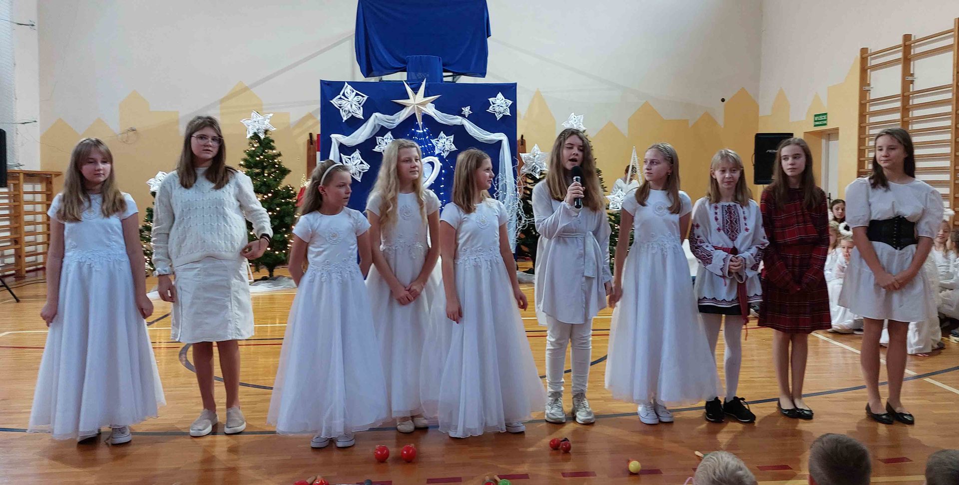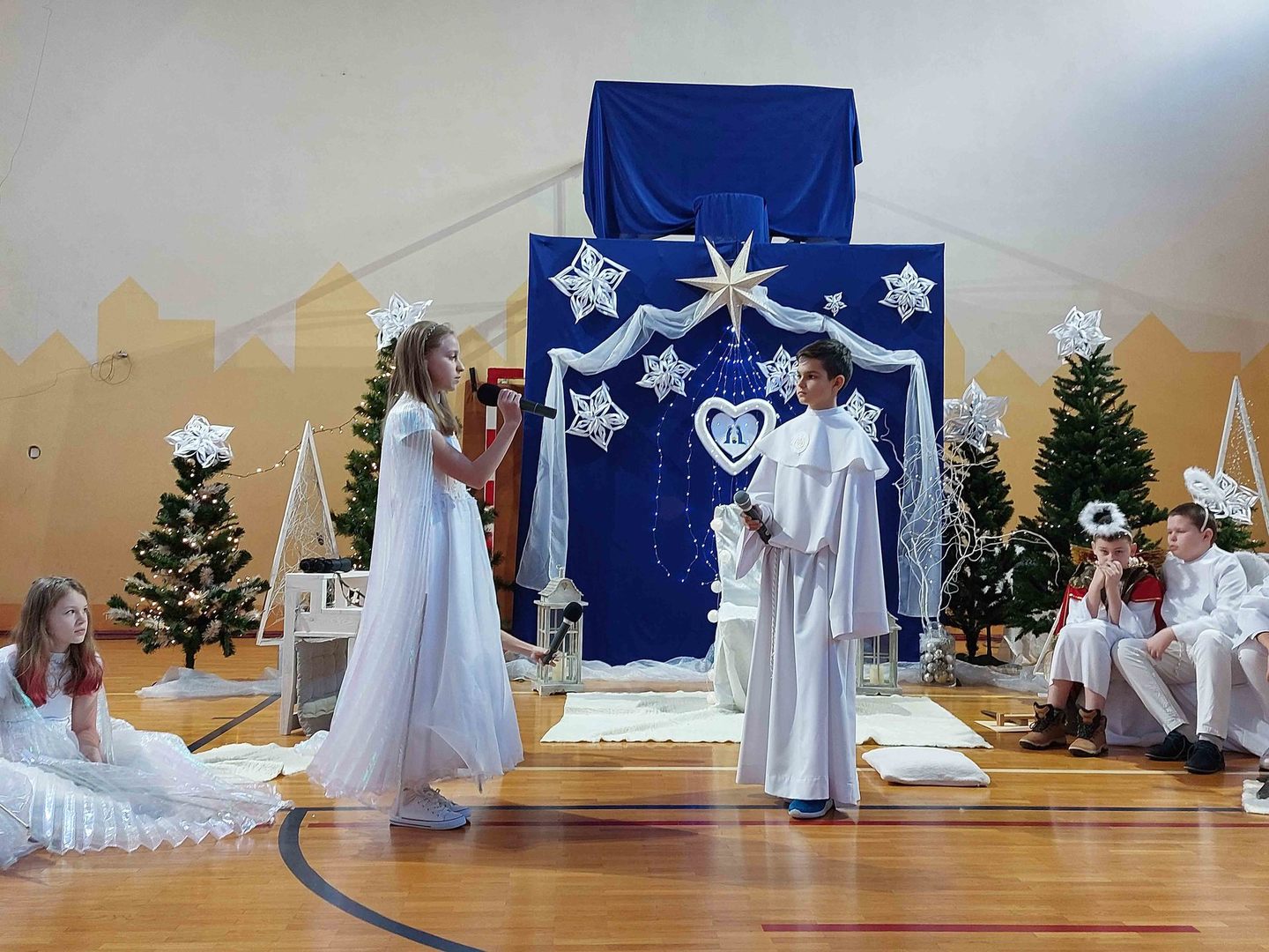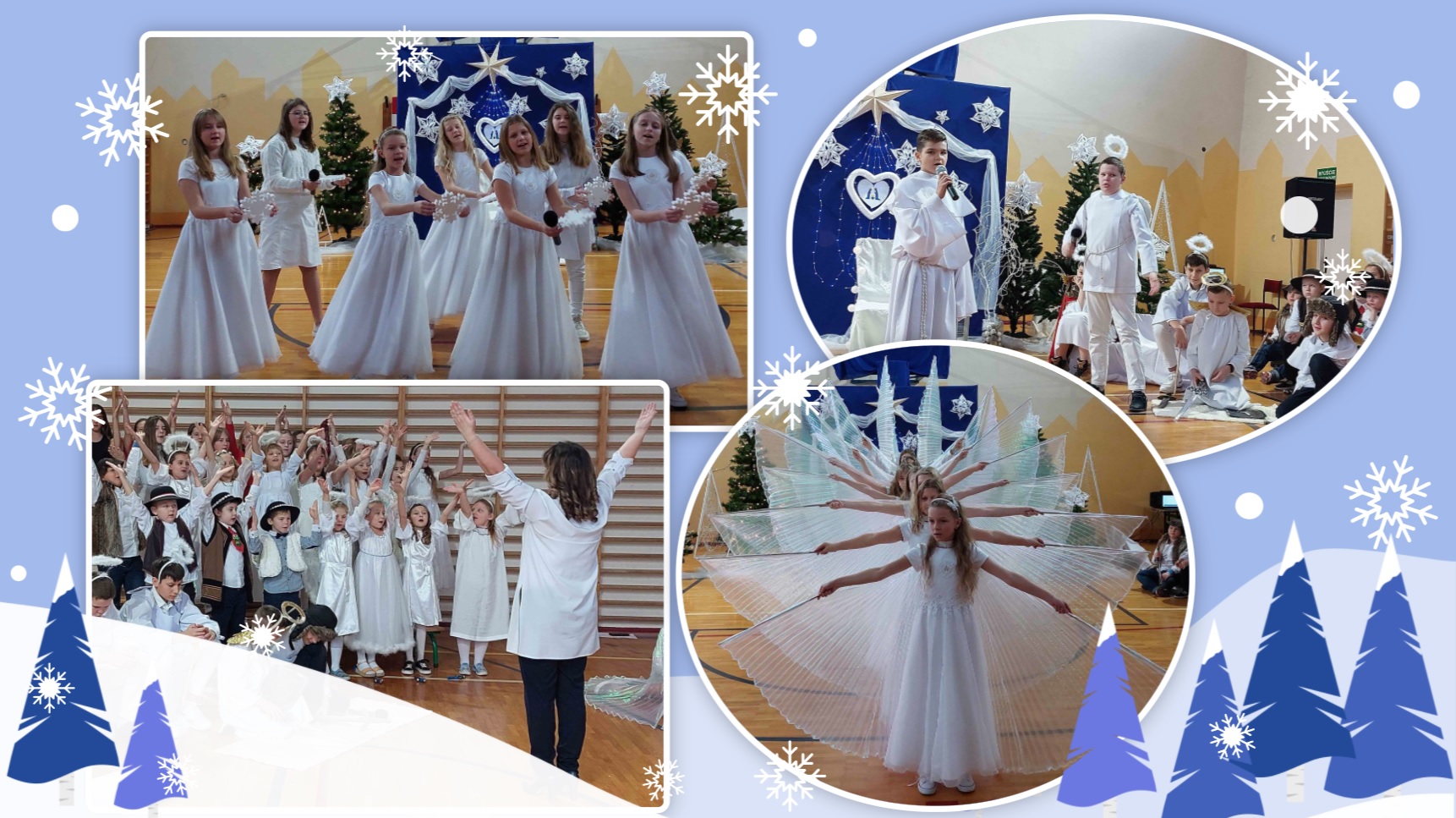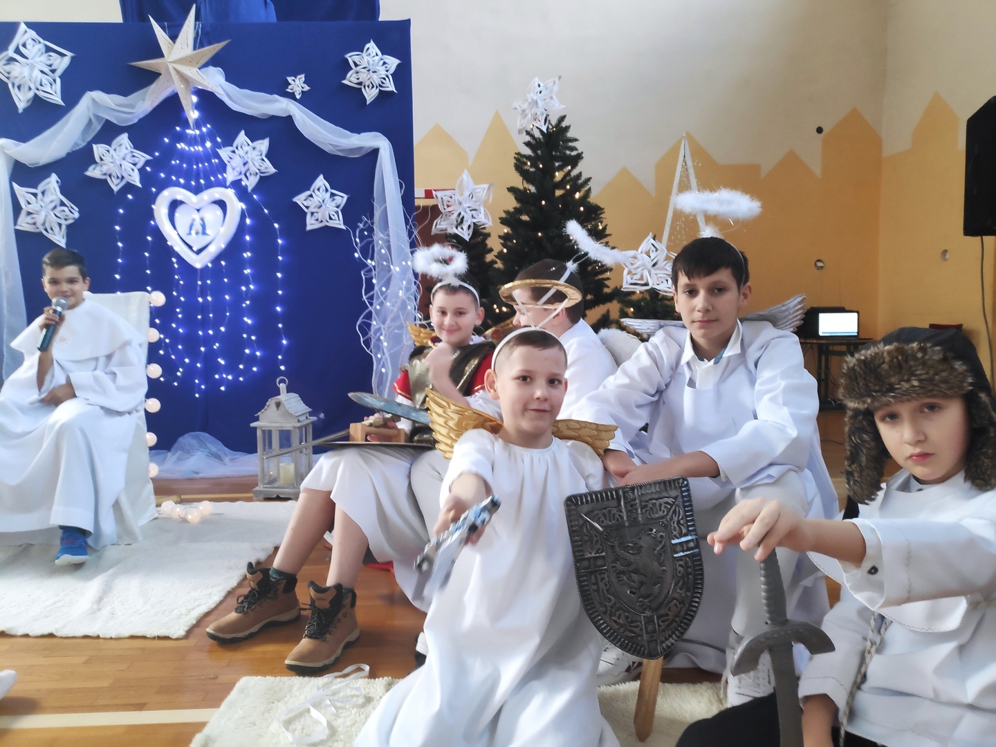 Klasa piąta przygotowała piękne i zabawne jasełka, z których mogliśmy się dowiedzieć ile było niespodziewanych trudności przed przyjściem Jezusa na świat. Podziwialiśmy taniec i śpiewy aniołów.