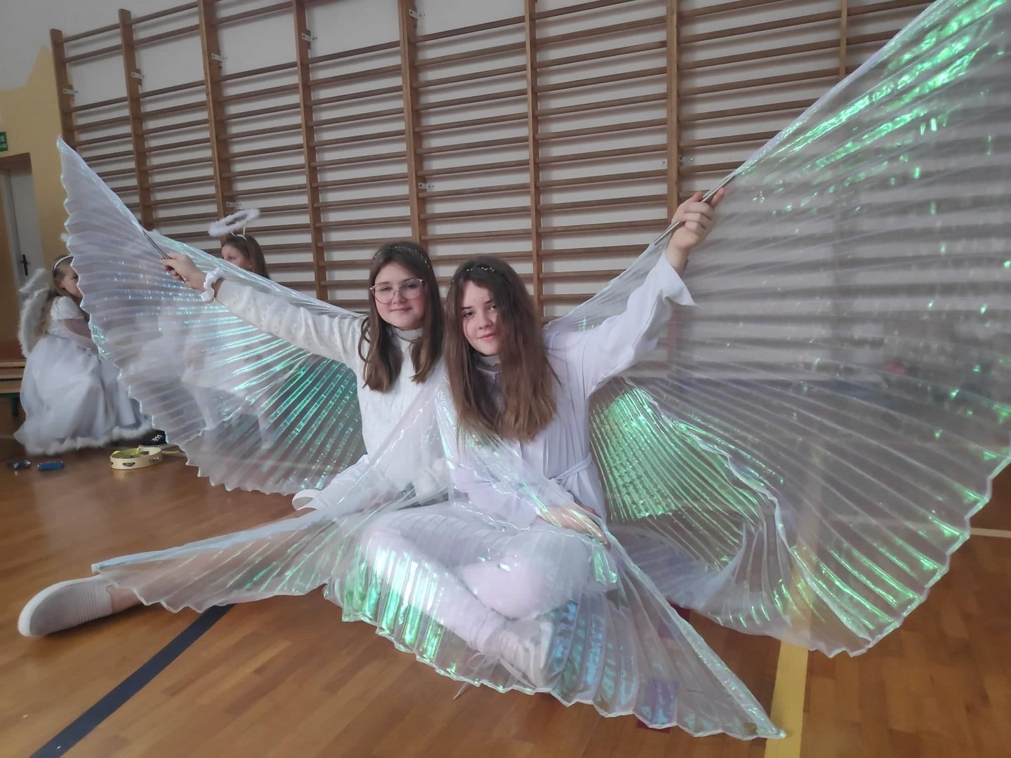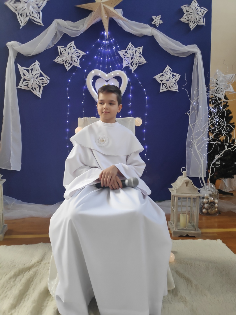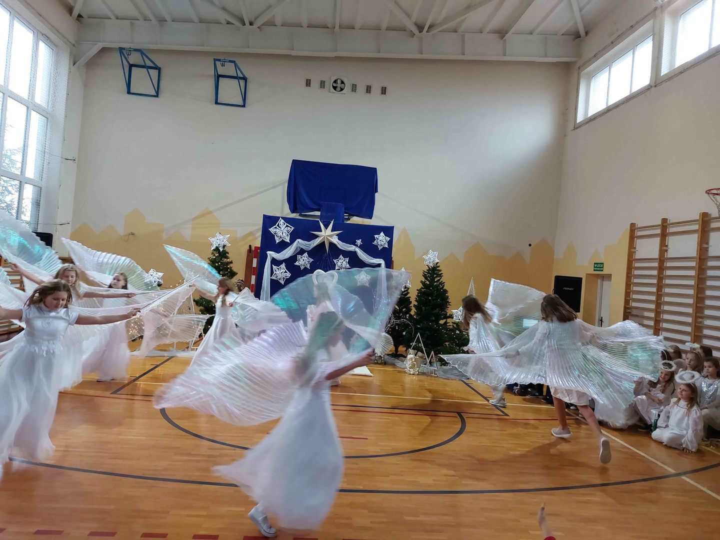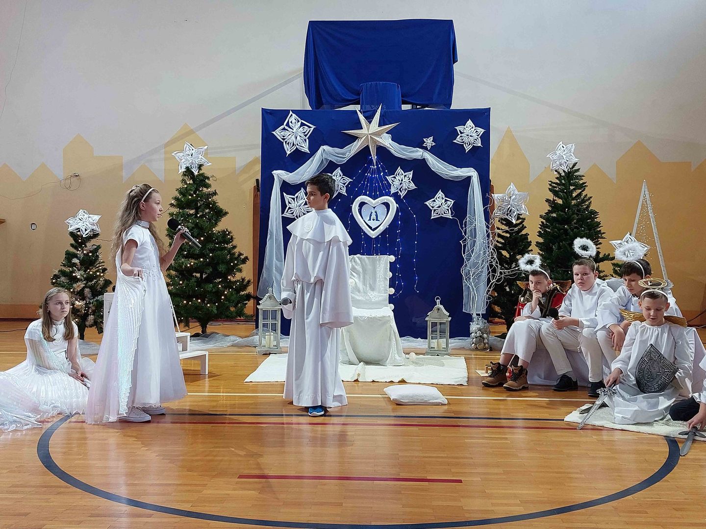 Klasa piąta przygotowała piękne i zabawne jasełka, z których mogliśmy się dowiedzieć ile było niespodziewanych trudności przed przyjściem Jezusa na świat. Podziwialiśmy taniec i śpiewy aniołów.