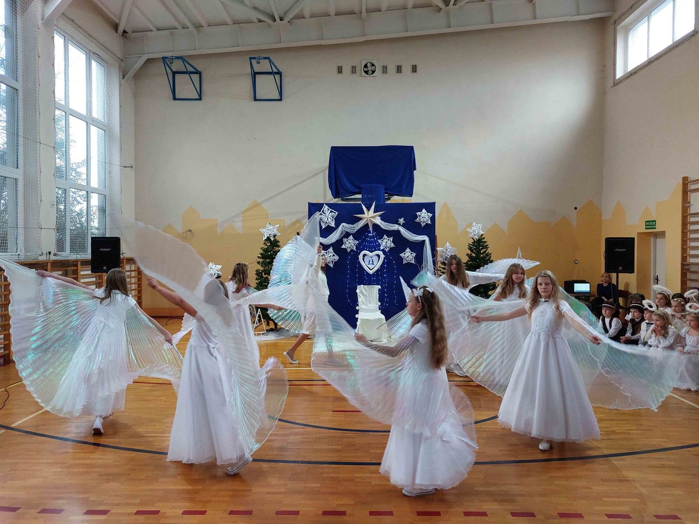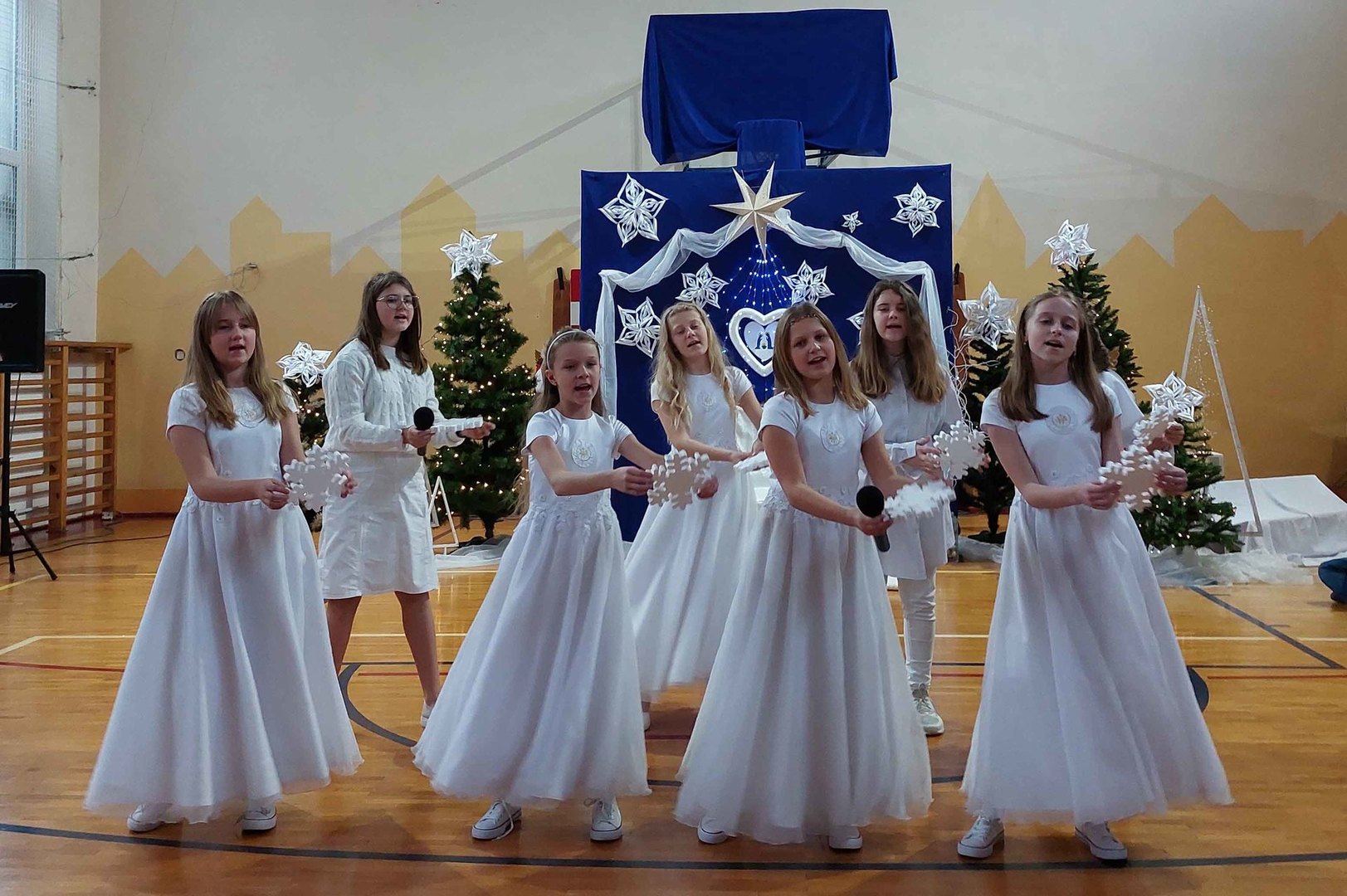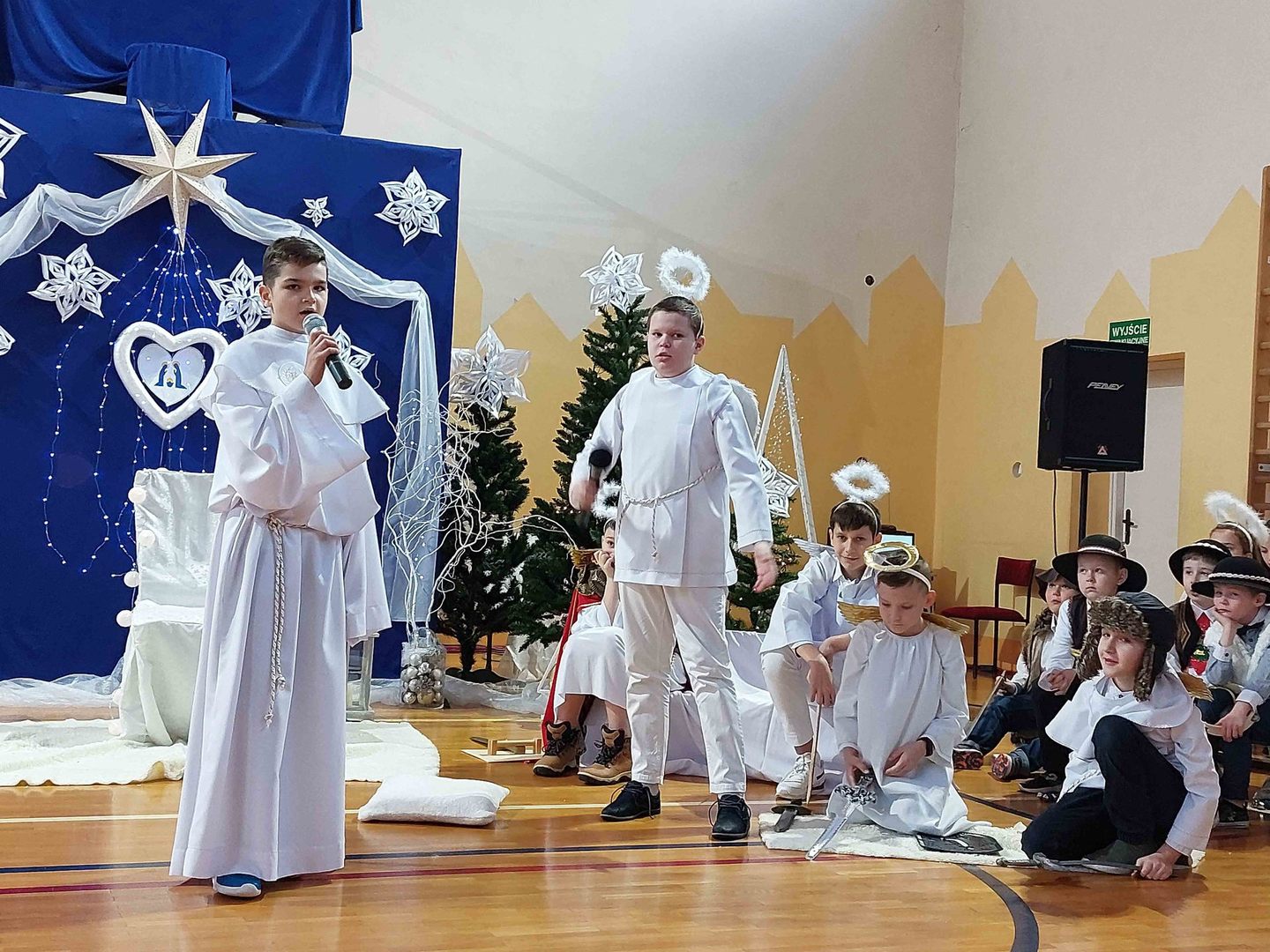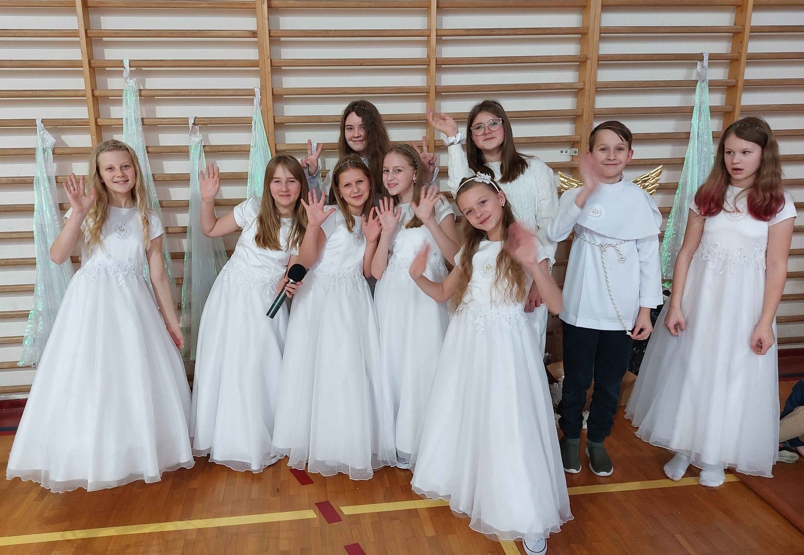 Klasa piąta przygotowała piękne i zabawne jasełka, z których mogliśmy się dowiedzieć ile było niespodziewanych trudności przed przyjściem Jezusa na świat. Podziwialiśmy taniec i śpiewy aniołów.