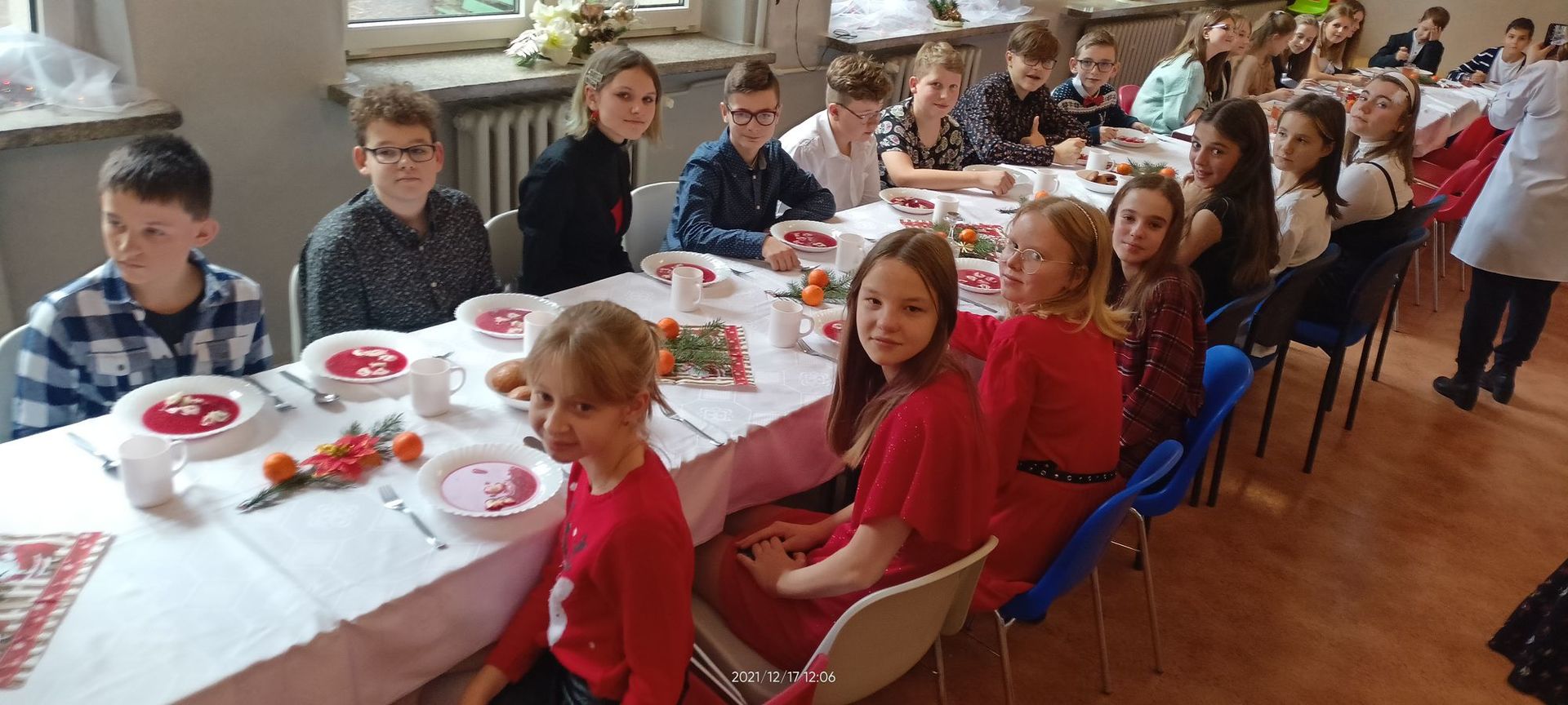 Na koniec wszyscy zjedliśmy wspólny wigilijny obiad. Wśród tradycyjnych potraw największą popularnością cieszył się barszcz z uszkami. Niektórzy uczniowie nawet dopytywali się o przepis ;)