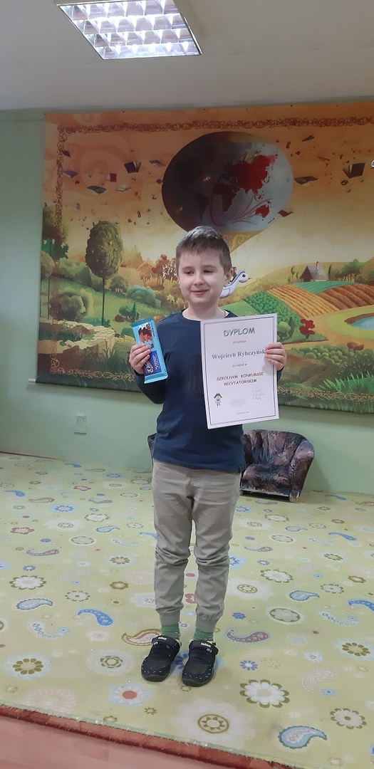 Dzień ten dla klas I-III rozpoczął się od Szkolnego Konkursu Recytatorskiego. Uczniowie usłyszeli wiersze polskich poetów w wykonaniu kolegów z klasy II i III. Zgodnie z regulaminem, każdy uczestnik konkursu otrzymał pamiątkowy dyplom i słodki upominek.