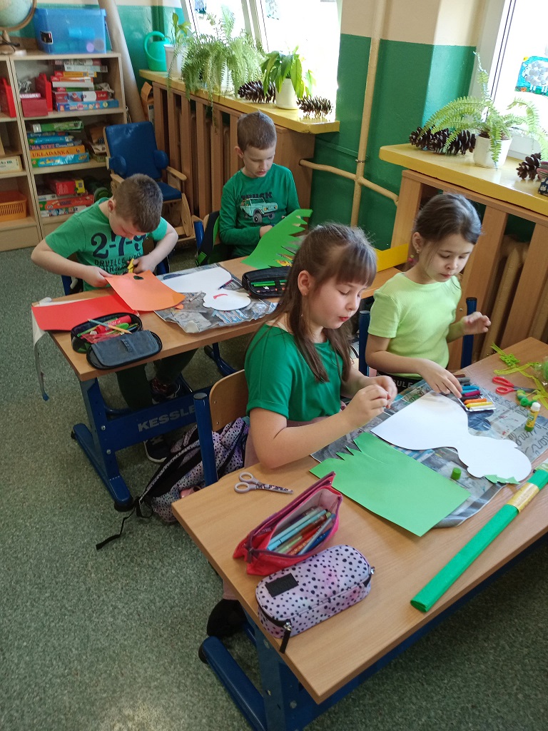 Każda z klas I-III wykonała wiosenne prace plastyczne, które wzbogaciły szkolną galerię.