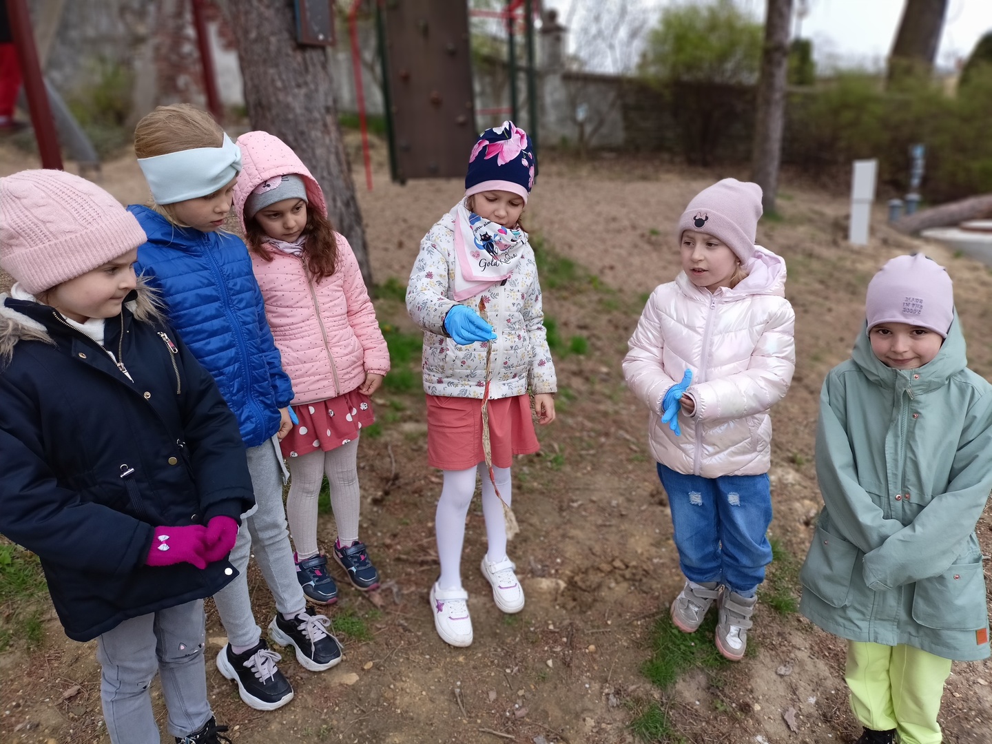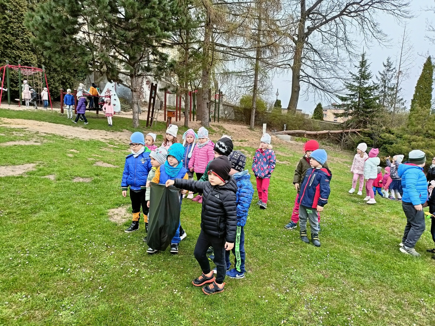 Przedszkolaki uczciły Dzień Ziemi spacerem po ogrodzie przedszkolnym, gdzie wszyscy sumiennie zaglądali pod każdy krzaczek w poszukiwaniu śmieci. Znalezione śmieci zostały odpowiednio posegregowane i wrzucone do odpowiednich koszy. Niech żyje nasza planeta Ziemia!