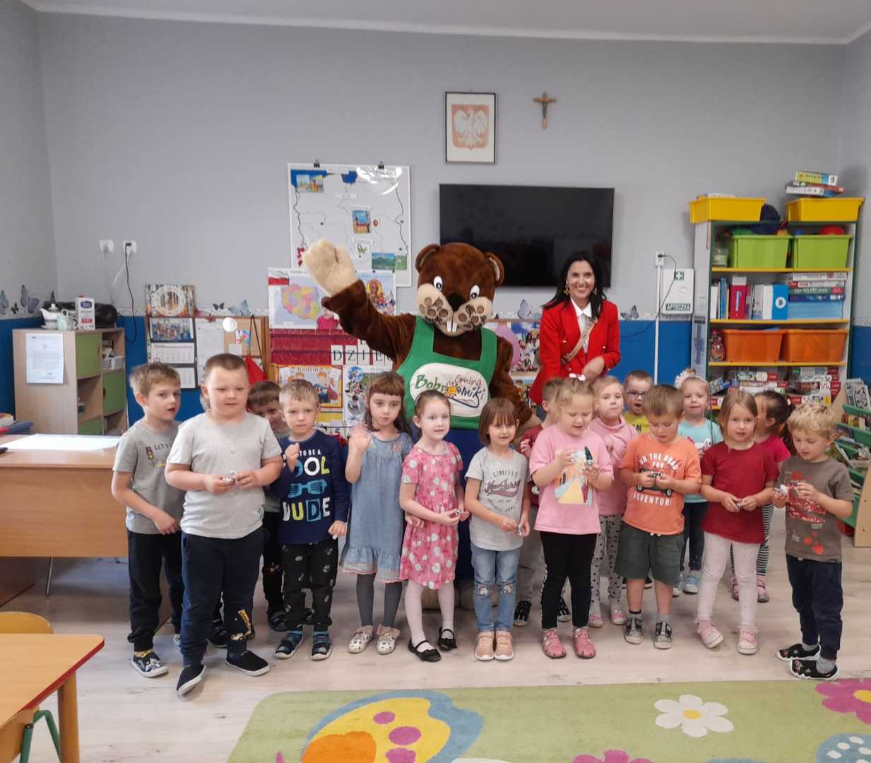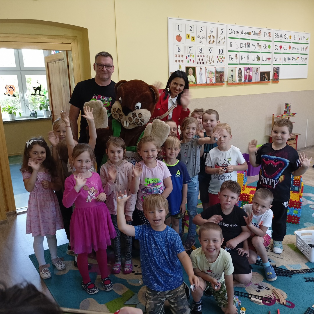 Dzień Dziecka świętowaliśmy na sportowo. Przedszkolaki rozegrały emocjonujący mecz w piłkę nożną, który sędziował sam Pan Dyrektor. W tym ważnym dniu, nie zabrakło również słodkich lodów i odwiedzin naszegi kochanego Gminnego Bobra.