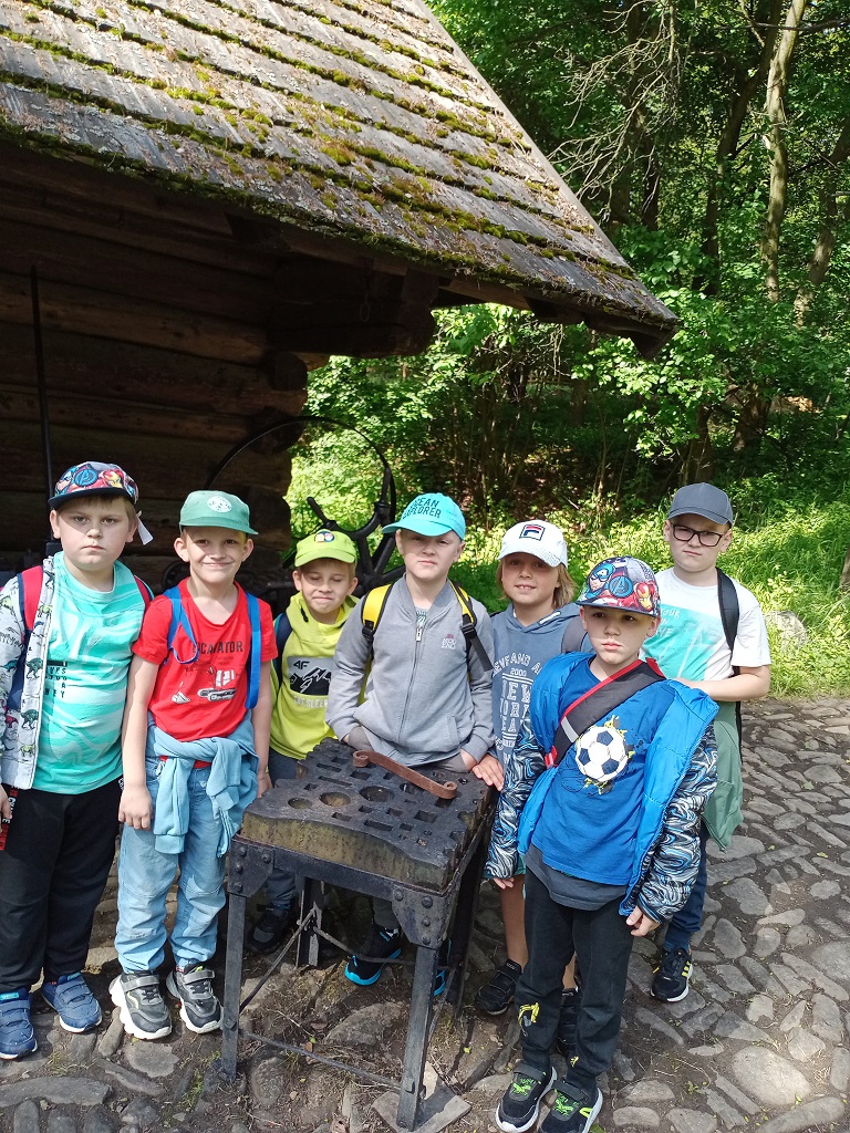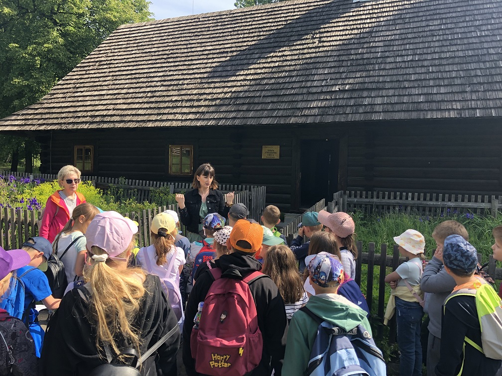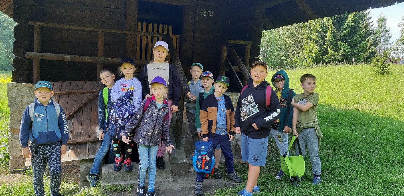 Dnia 31 maja 2022 r. uczniowie z klas I – III uczestniczyli w wycieczce do skansenu w Chorzowie. Głównym celem wycieczki było przybliżenie uczniom dawnej wsi, zapoznanie z jej architekturą, kulturą oraz z obrazem życia codziennego w chałupie i gospodarstwie. „Kto tu mieszkał?” to był temat przewodni wycieczki. Dzieci zwiedziły między innymi starą szkołę, młyn wodny i wiatrak, stare chaty wiejskie oraz zabytkowy kościółek. Odwiedziły warsztat kowala, garbarza, młynarza, pszczelarza oraz rzeźbiarza. Pani przewodnik w ciekawy sposób opowiedziała o życiu naszych przodków, a także pokazała najciekawsze obiekty, maszyny i narzędzia. Był również czas na odpoczynek, spotkanie ze zwierzętami przydomowymi oraz posiłek. Drugie śniadanie dzieci zjadły w cieniu drzew na podwórku u sołtysa z Katowic. Atrakcją były również spadające owoce czereśni. Dzieci bardzo mile i aktywnie spędziły czas i z uśmiechami na twarzy wróciły do szkoły.