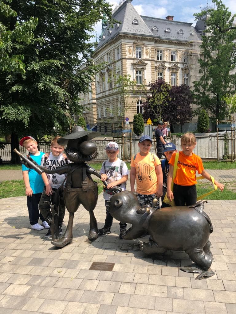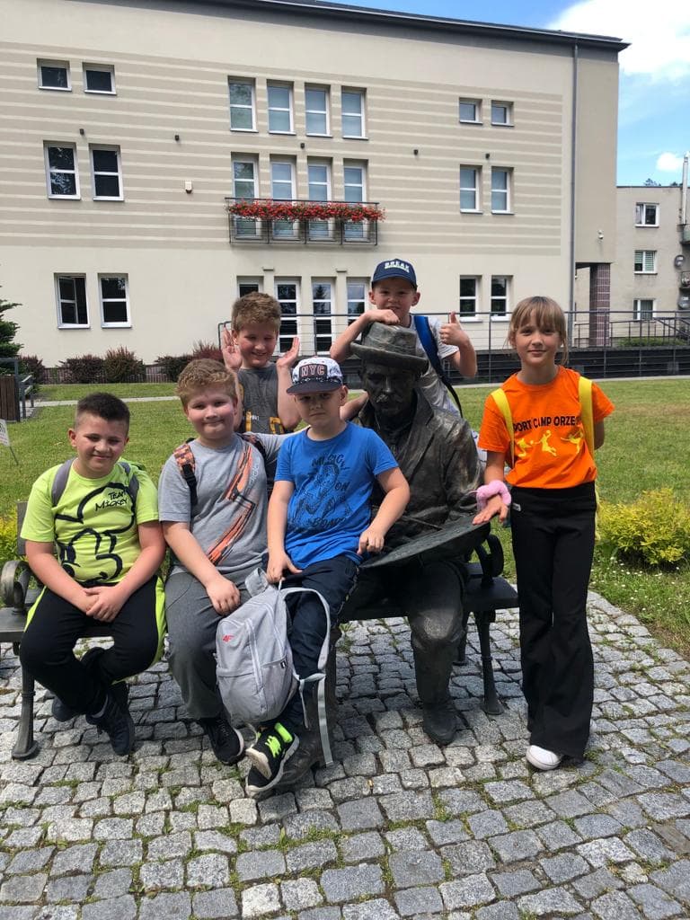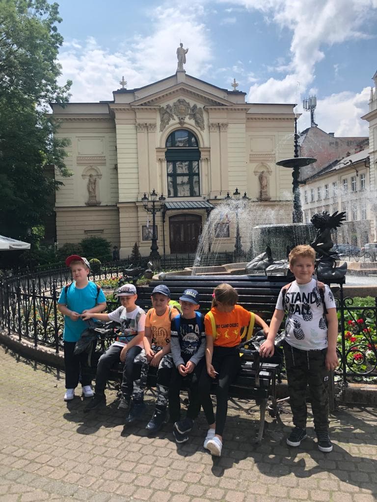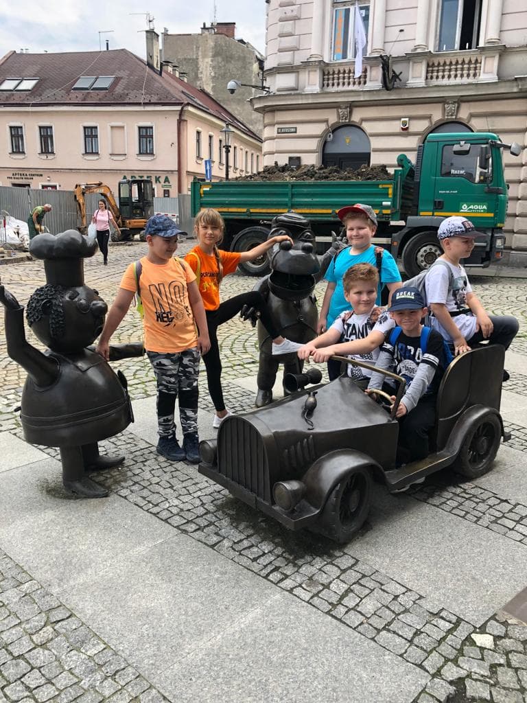 O poranku 7 czerwca uczniowie klasy III wraz z opiekunami panią Elą i Ewą wyruszyli na trzydniową wycieczkę w góry. Podróżowaliśmy autobusami, pociągami, a przede wszystkim wszędzie docieraliśmy pieszo. W pierwszym dniu po zakwaterowaniu w Bystrej odwiedziliśmy Muzeum Fałata. Zwiedziliśmy dom artysty, galerię obrazów oraz obejrzeliśmy film przybliżający jego postać. Spacerując ulicą Klimczoka zatrzymaliśmy się przy pomniku przyrody. Rośnie tam cis pospolity, który znajduje się na prywatnej posesji i ma ponad 360 lat. Następnie postój zrobiliśmy przy willi Halamówka, która była domem wczasowym na przełomie XIX/XX w. Dzień zakończyliśmy pieczeniem kiełbasek na ognisku. Drugiego dnia z racji niepogody odwiedziliśmy Gemini Park w Bielsku Białej, gdzie poszliśmy na seans filmowy „Wilk i spółka”. Dzień zakończyliśmy ucztowaniem przy stole z pizzą w różnych smakach oraz oglądaniem bajek wyprodukowanych w Wytwórni Filmów Rysunkowych w Bielsku Białej. Trzeciego dnia zwiedziliśmy Teatr Polski w Bielsku Białej. Mieliśmy okazję zajrzeć do pracowni krawieckiej, magazynu kostiumów, pań charakteryzatorek, garderoby aktorów, a także być w stolarni teatru. Dzieci były na scenie małej, dużej oraz w każdym miejscu na widowni. Po wyjściu z teatru podeszliśmy do budynku Poczty Głównej, aby wysłać rodzicom kartkę pocztową wcześniej samodzielnie wypisaną. Ostatnim punktem wycieczki był spacer po centrum Bielska, gdzie poszukiwaliśmy postaci bajkowych. A były to pomniki: Pampaliniego, Don Pedra z Krainy Deszczowców, Baltazara Gąbki, Reksia oraz Bolka i Lolka. Wrażeń było bardzo dużo, dzieci zmęczone, ale szczęśliwe wróciły do domu. Radzie Rodziców bardzo dziękujemy za pokrycie kosztów biletów do kina.
