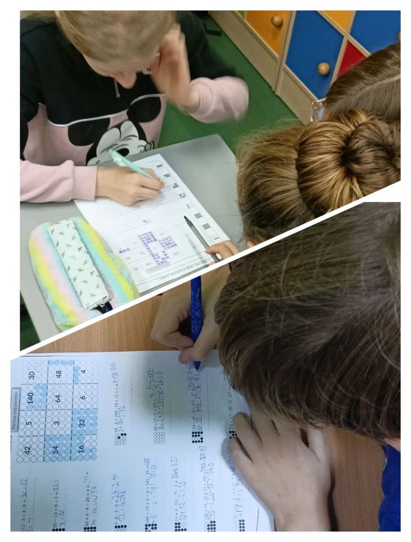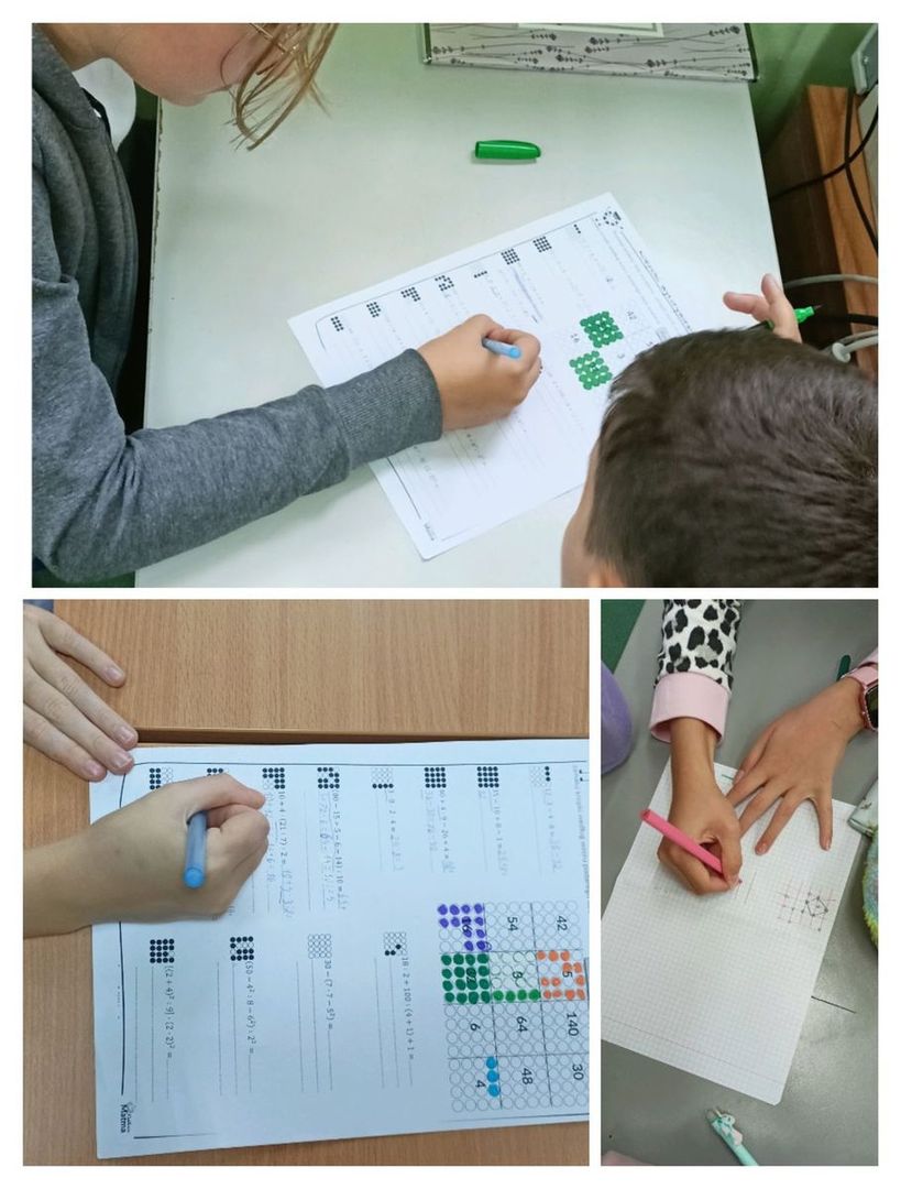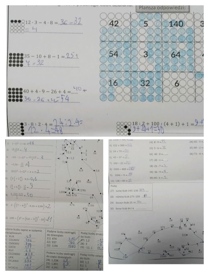 Na lekcji w klasie 5 i 6 uczniowie rozwiązywali zadania z kolejności wykonywania działań z kropką w tle. W klasie 4 i 8 uczniowie rozwiązywali zadania matematyczne dotyczące rachunku pamięciowego oraz działań na liczbach, by następnie połączyć kropki, które utworzyły różne rysunki. W parach również zagrali w „Połącz kropki zamknij kwadrat”.