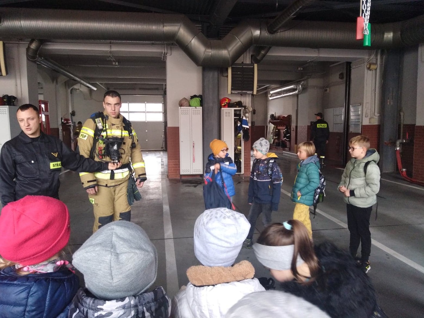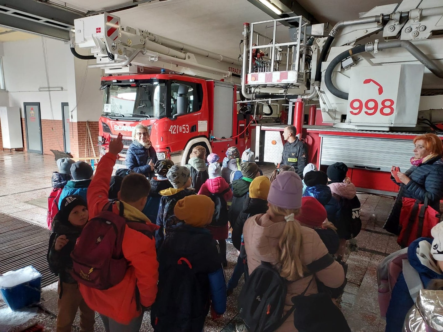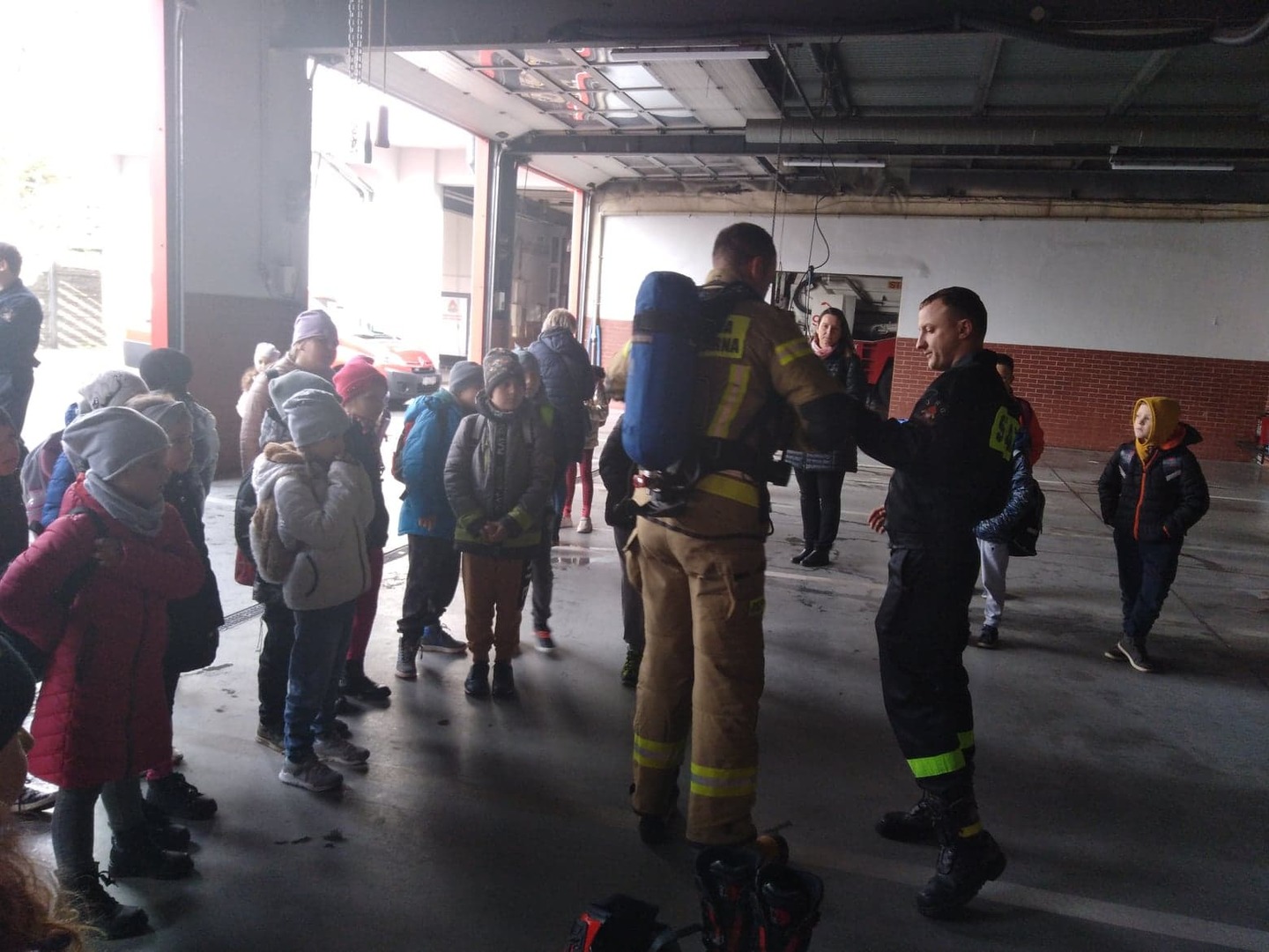 Na koniec wycieczki korzystając z uprzejmości strażaków z MPSP w Chorzowie uczniowie mogli zwiedzić prawdziwe garaże strażackie, w których znajdowały się wozy bojowe używane do akcji gaśniczych.