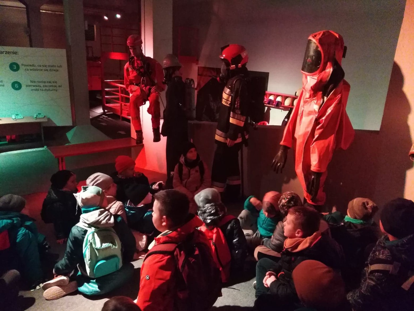 Zwiedzając Centrum dzieci oglądały multimedialne prezentacje i z zainteresowaniem wsłuchiwały się w słowa strażaków – przewodników, którzy opowiadali o przyczynach, źródłach i skutkach różnych zagrożeń pożarowych.