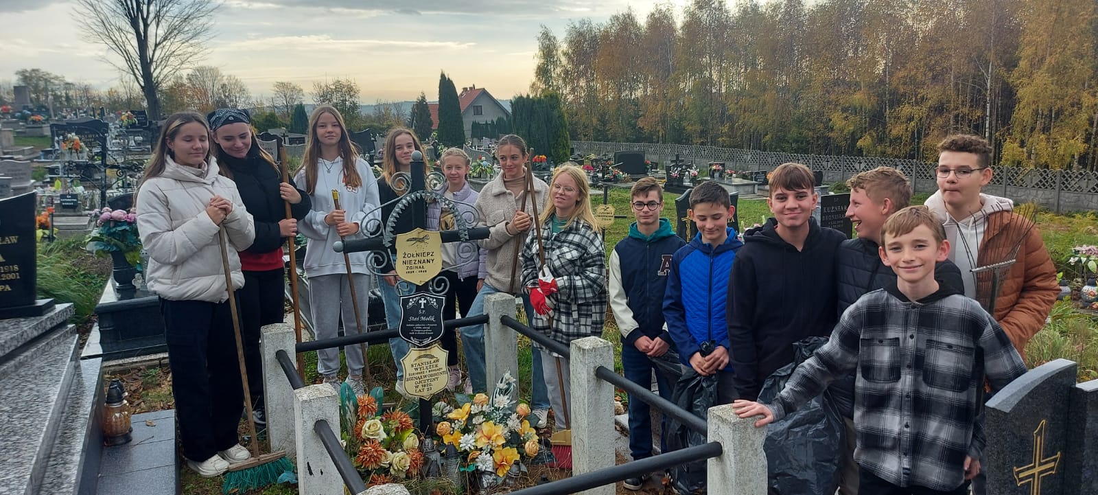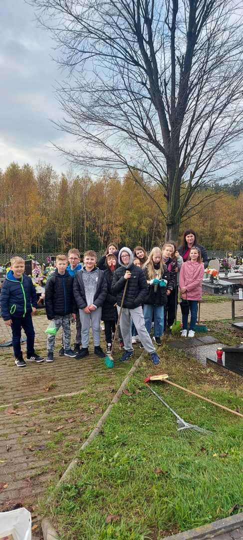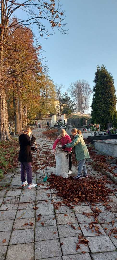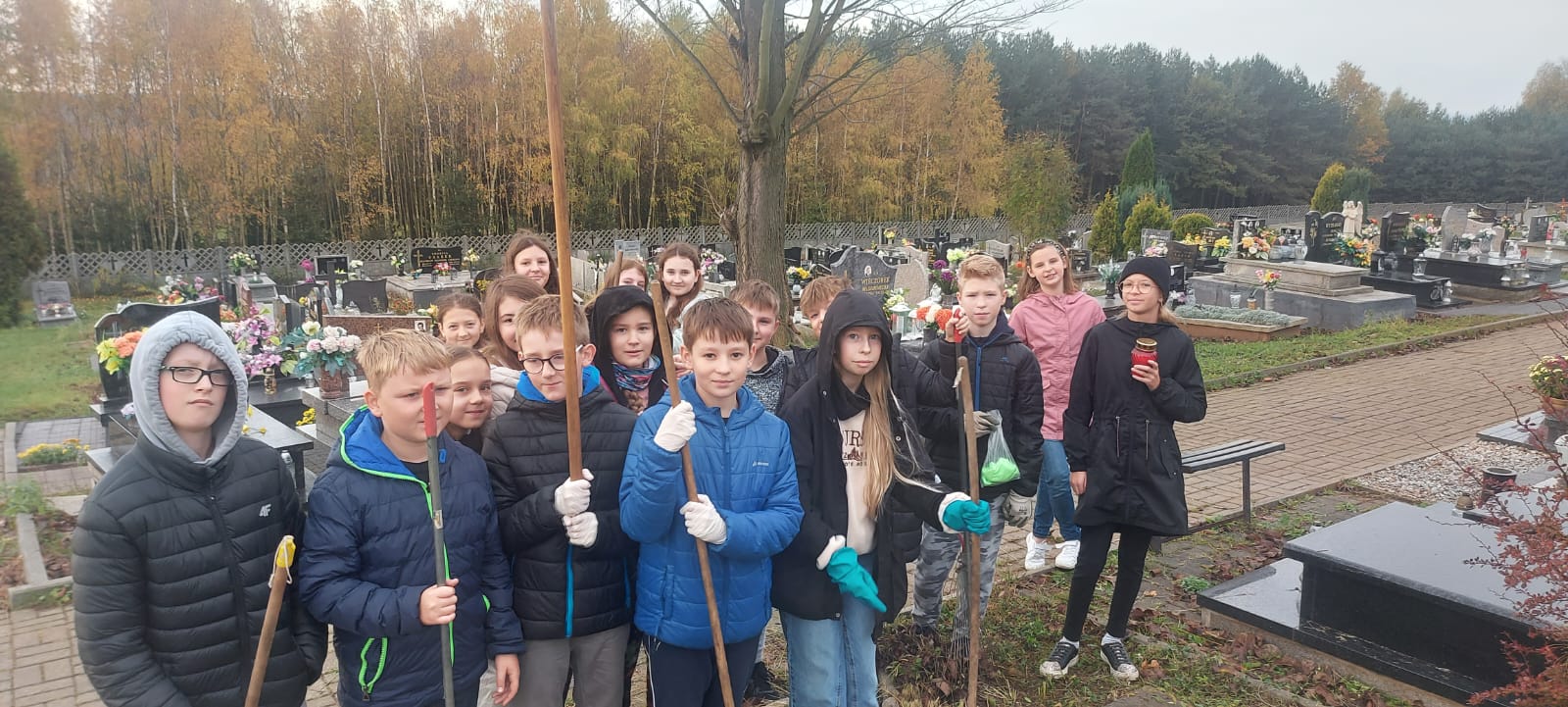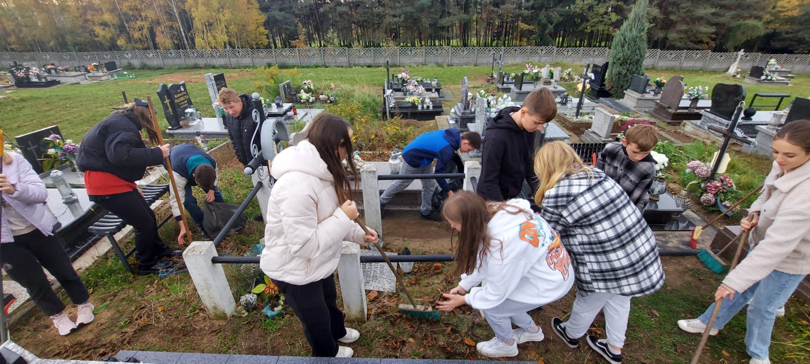 Pamięć o ludziach, którzy odeszli, troska o groby i cmentarze jest jednym z najważniejszych dowodów naszej kultury. Jak co rok uczniowie naszej szkoły z ogromnym zaangażowaniem porządkowali groby i alejki z jesiennych liści.
