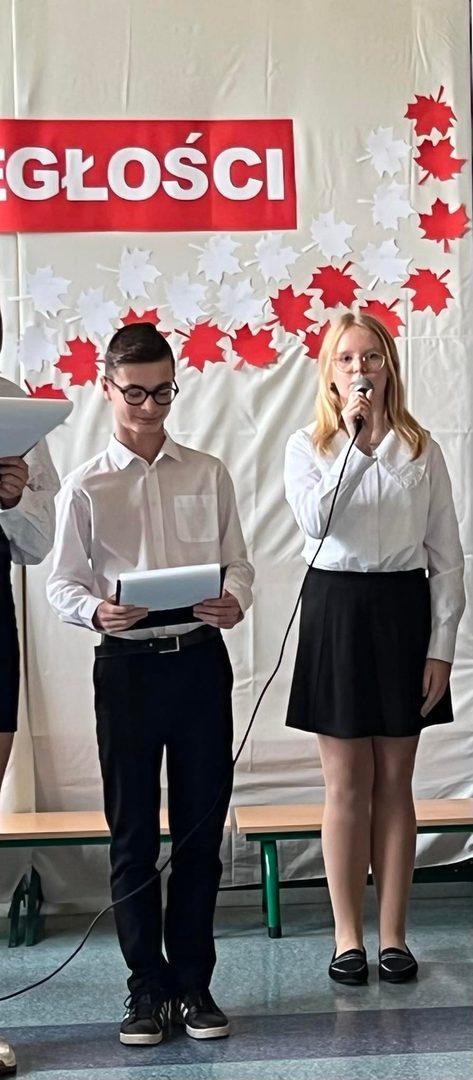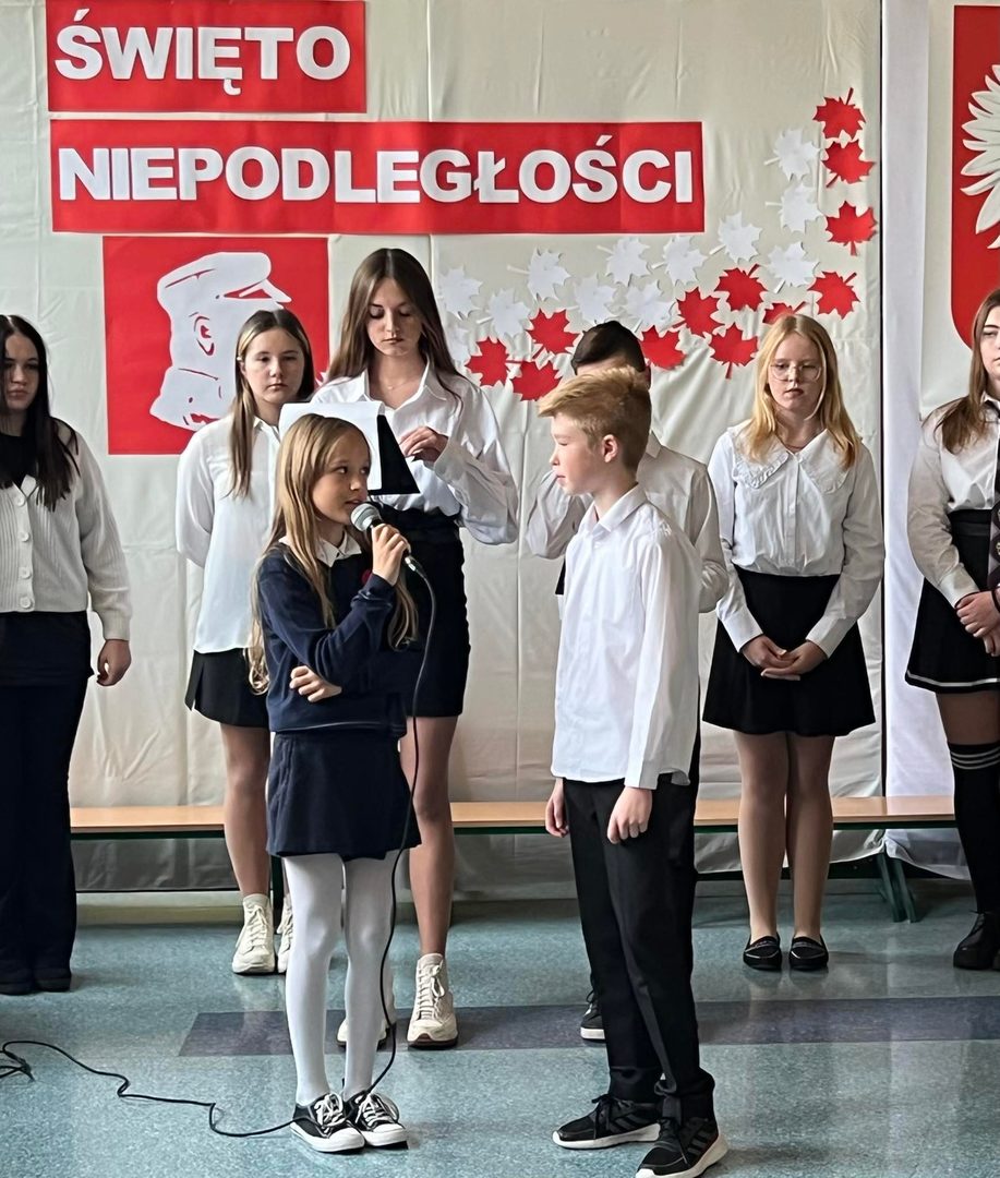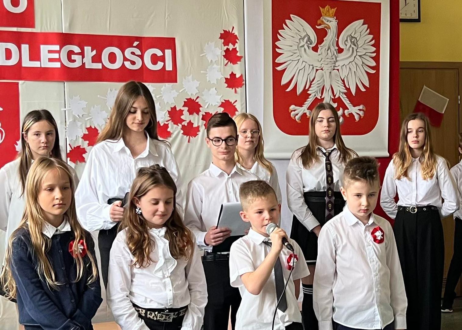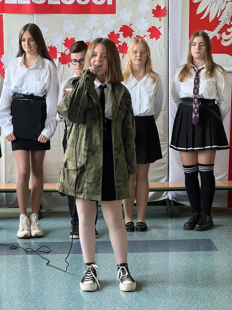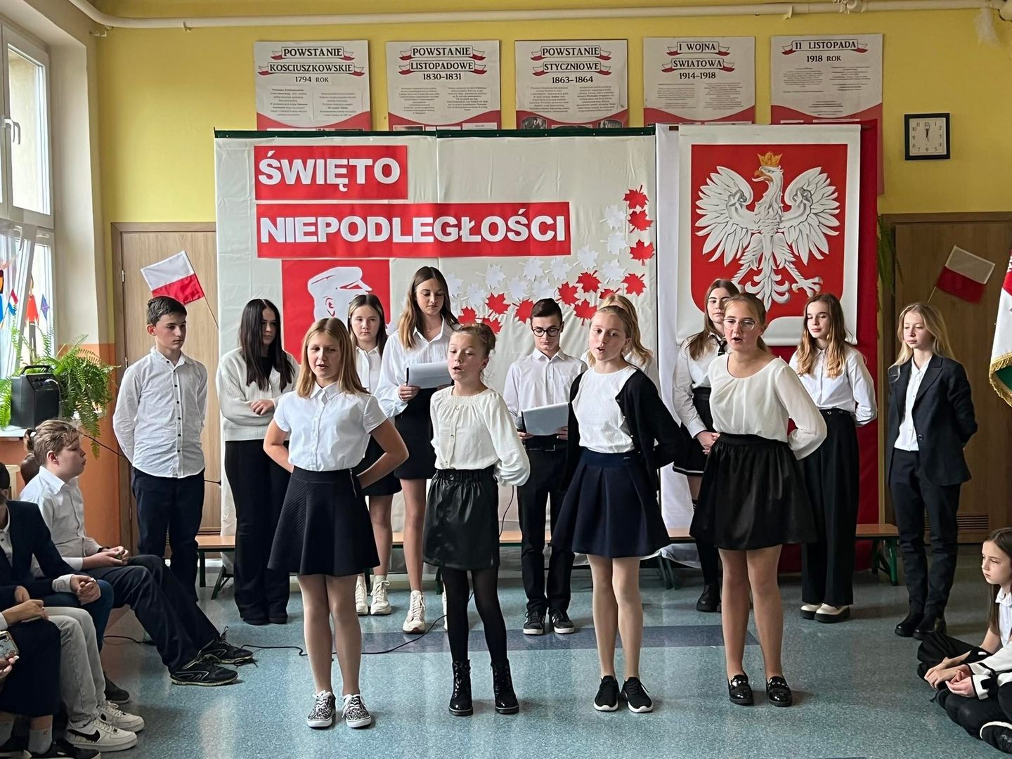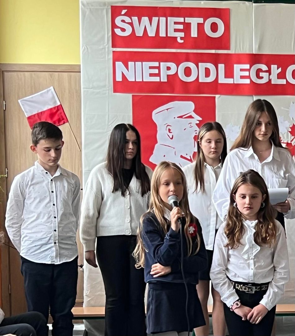 Przekazywane treści były przeplatane patriotycznymi pieśniami w wykonaniu młodszych dzieci i uczennic z klasy VI.