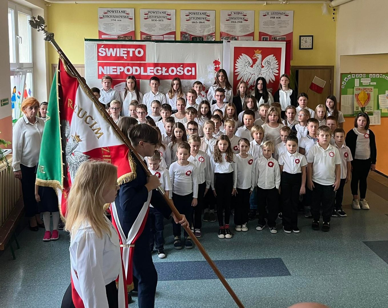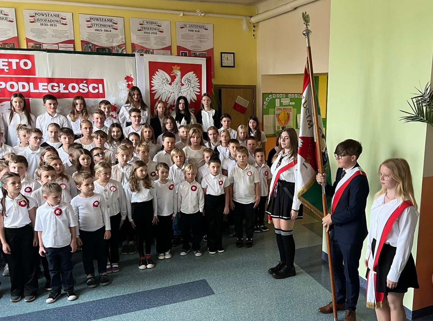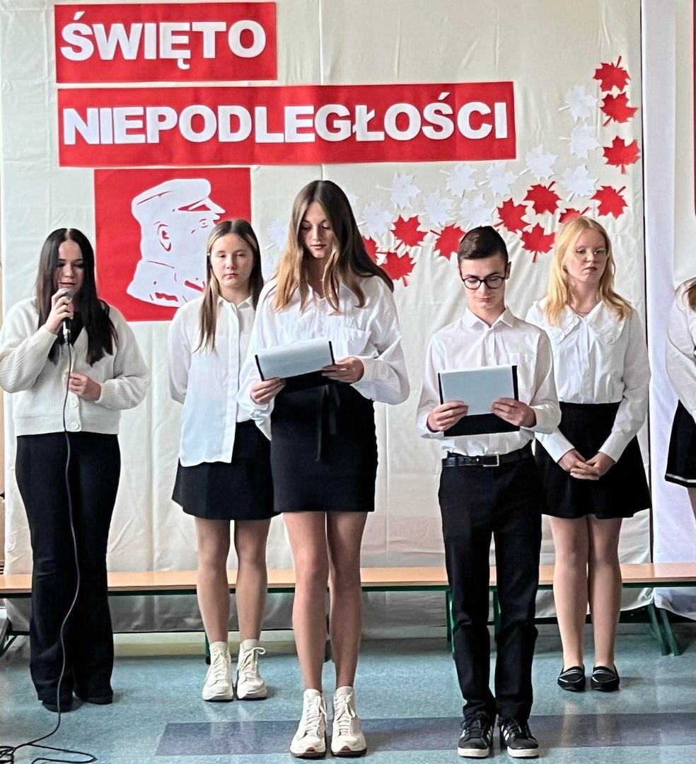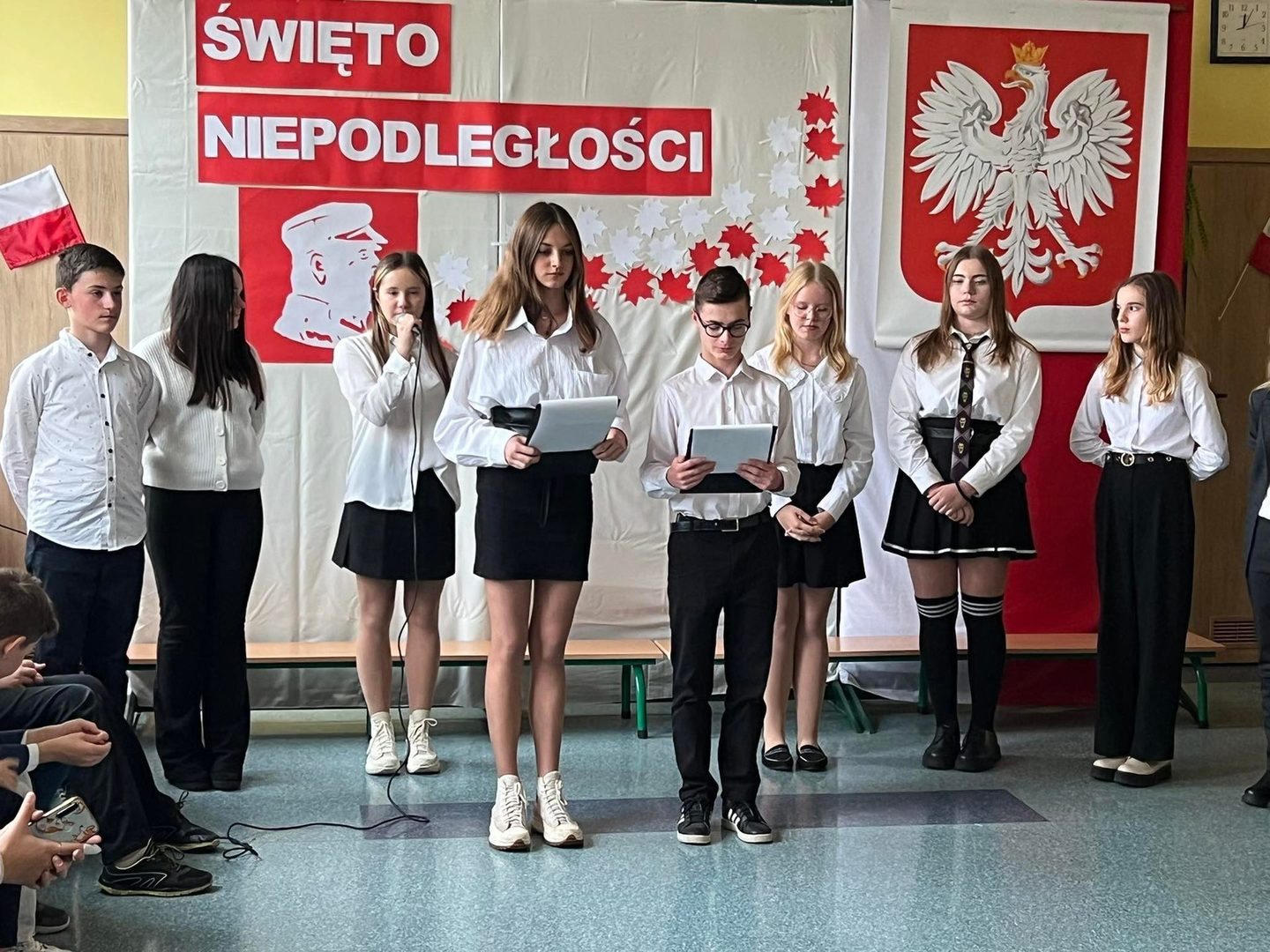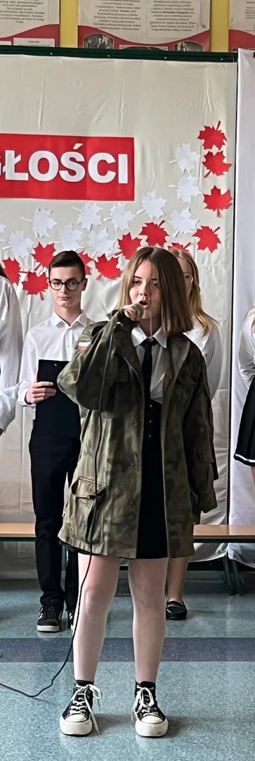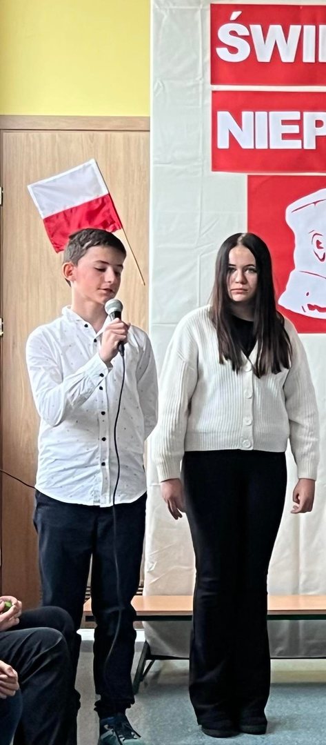Przekazywane treści były przeplatane patriotycznymi pieśniami w wykonaniu młodszych dzieci i uczennic z klasy VI.