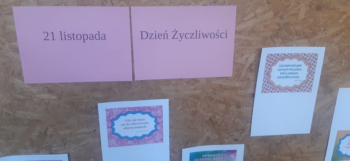 21 października w naszej szkole odbyła się akcja z okazji Dnia Życzliwości. Każde dziecko otrzymało balonik w środku którego znalazło życzliwe słowa. Uczniowie zapoznali się z historią Życzliwka, czytali sentencje umieszczone na gazetce obok gabinetu pedagoga szkolnego gdzie czekało na nich słodkie Drzewko Życzliwości. Akcja miała na celu zwrócenie uwagi uczniów na ich wzajemne relacje, na potrzebę bycia miłym i życzliwym wobec innych ludzi.