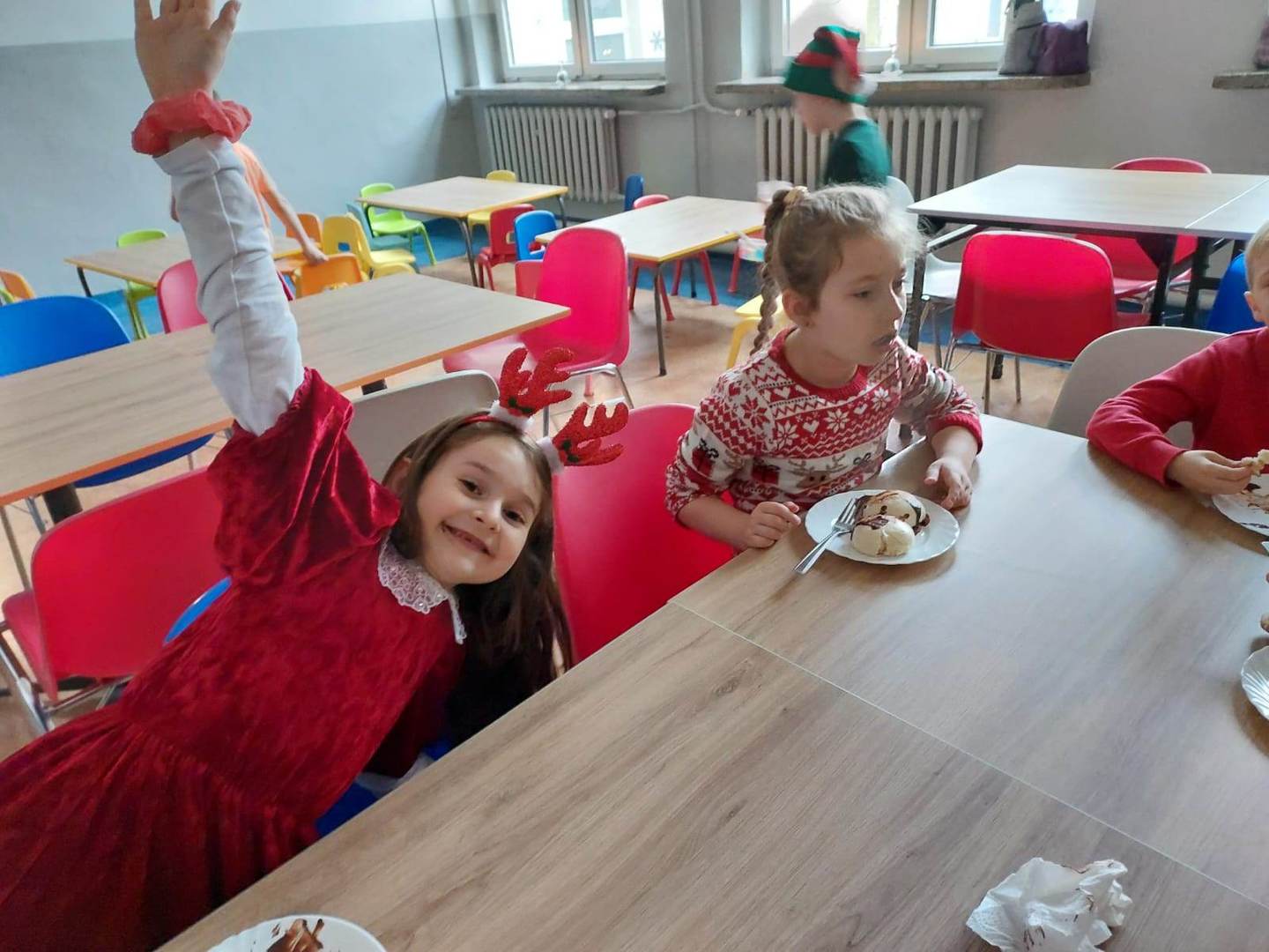 W tym niezwykłym dniu na wszystkie dzieci czekała też niespodzianka na stołówce. Przy wspólnym obiedzie z deserem miło upłynął czas.