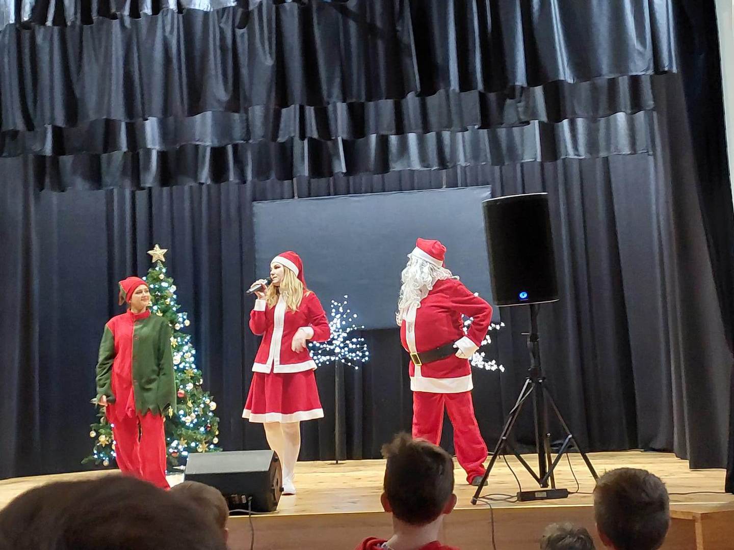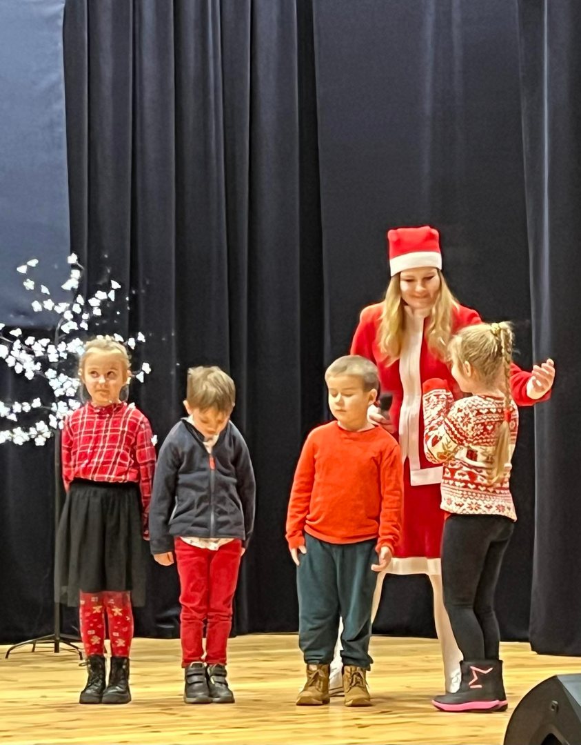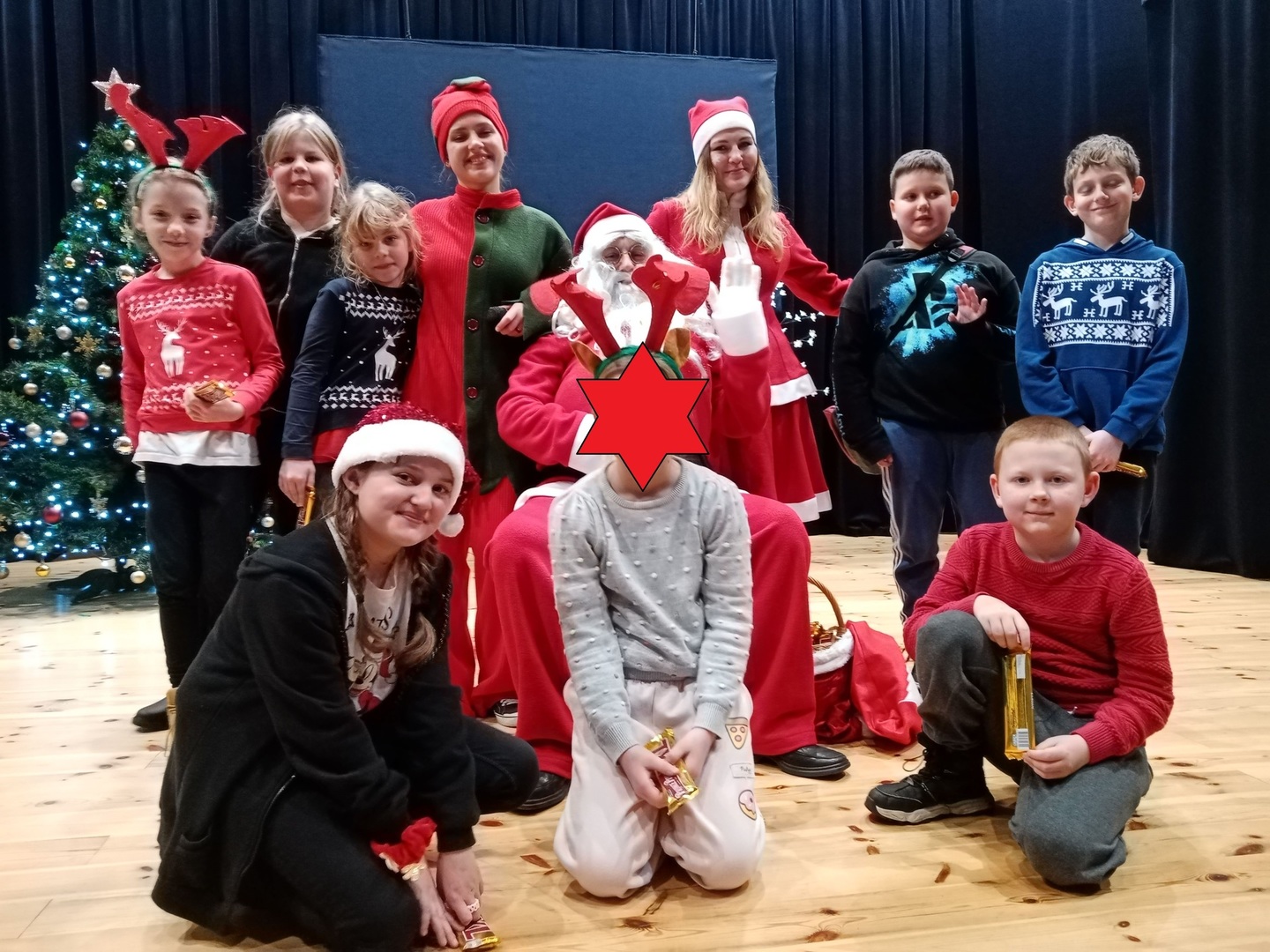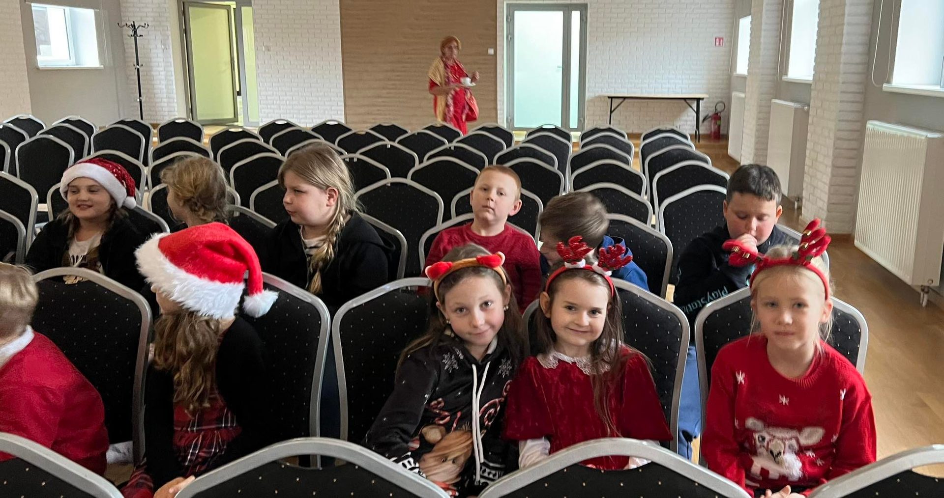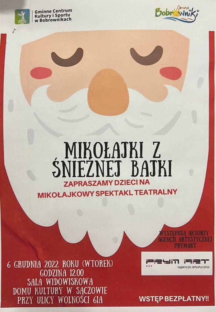 Główną niespodzianką dnia był wyjazd do Domu Kultury w Sączowie na spektakl muzyczno – teatralny pt. „ Mikołajki z śnieżnej bajki” zorganizowany przez Gminne Centrum Kultury i Sportu w Bobrownikach.