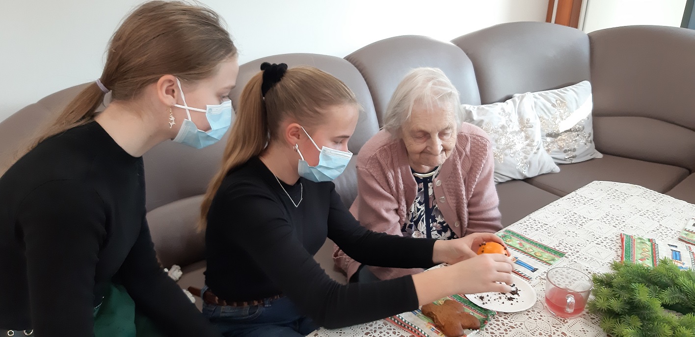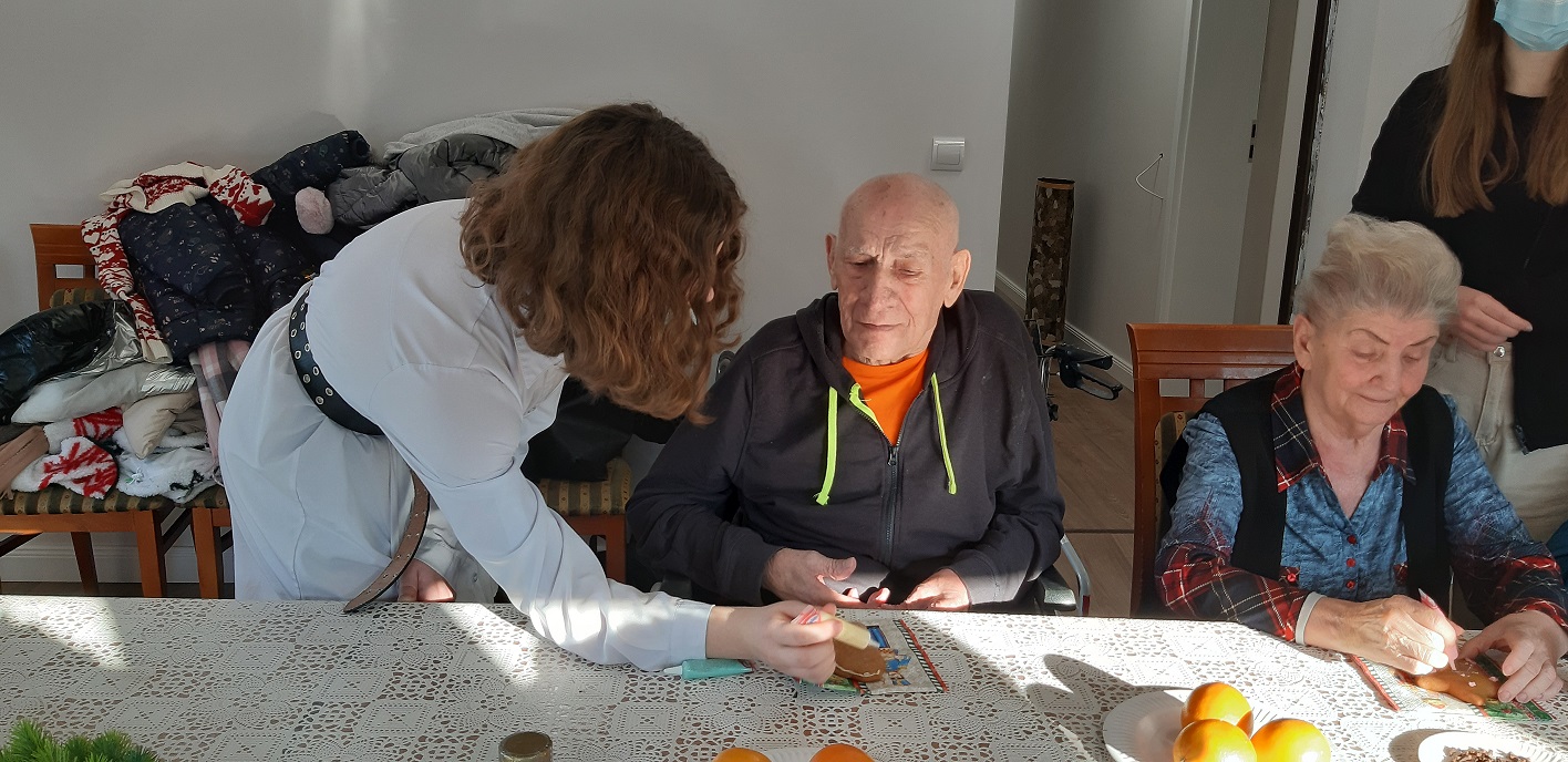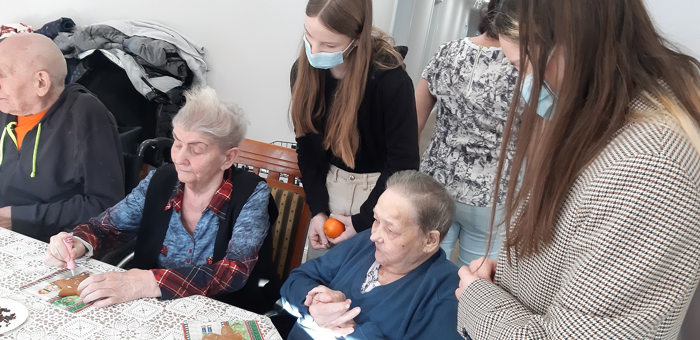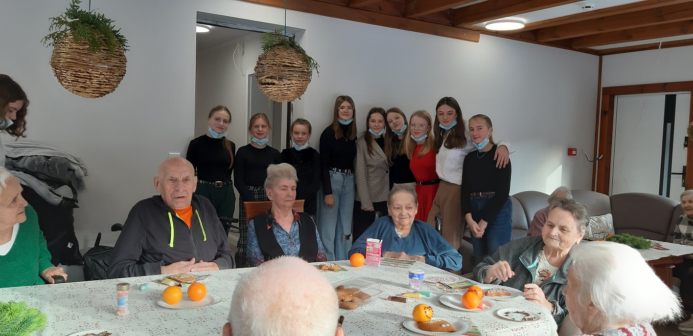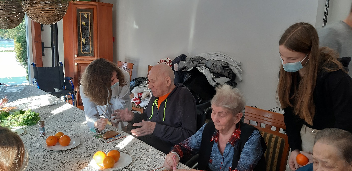 22 grudnia wolontariuszki naszej szkoły udały się z wizytą przedświąteczną do zaprzyjaźnionego Domu Opieki „Zielony Dworek” w Tąpkowicach. Mieszkańcy często bywają sami ze swoimi myślami, oczekiwaniem na kogoś…, dlatego wizyty młodzieży wnoszą w ich życie odrobinę radości. Dziewczyny zaprezentowały krótki program artystyczny, który został nagrodzony gromkimi brawami. Po występie młodzież wraz z podopiecznymi Domu opieki ozdobiła samodzielnie upieczone pierniki. Nie zabrakło również rozmów i łez wzruszenia.