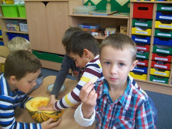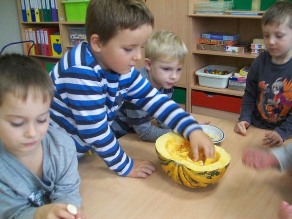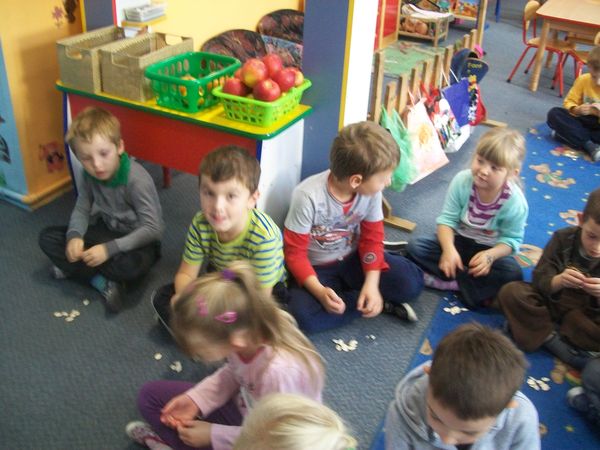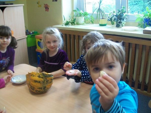 Grupy „Średniaki” i „Starszaki” znają dobrze zasady zdrowego odżywiania się. Postanowiły poszukać zdrowych przekąsek, które zastąpiłyby im różne przekąski, które nie sprzyjają zdrowemu odżywianiu. Zdrowe przekąski i zdrowe smakołyki znalazły w pestkach dyni i orzechach.
