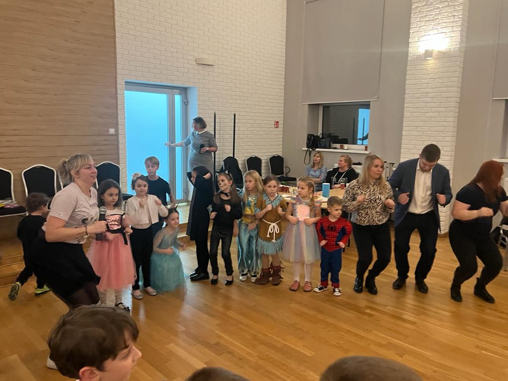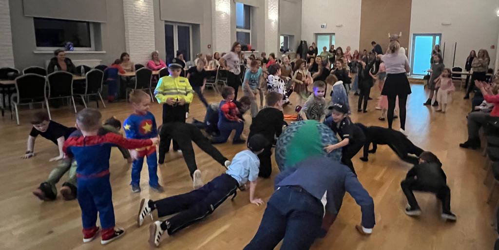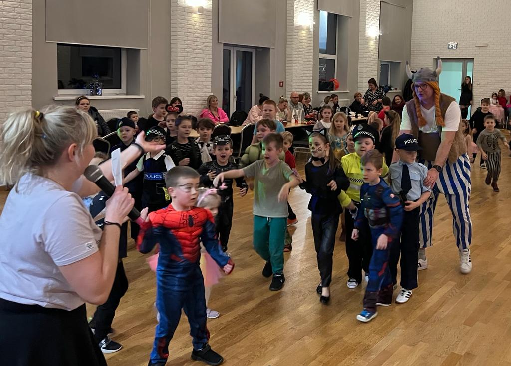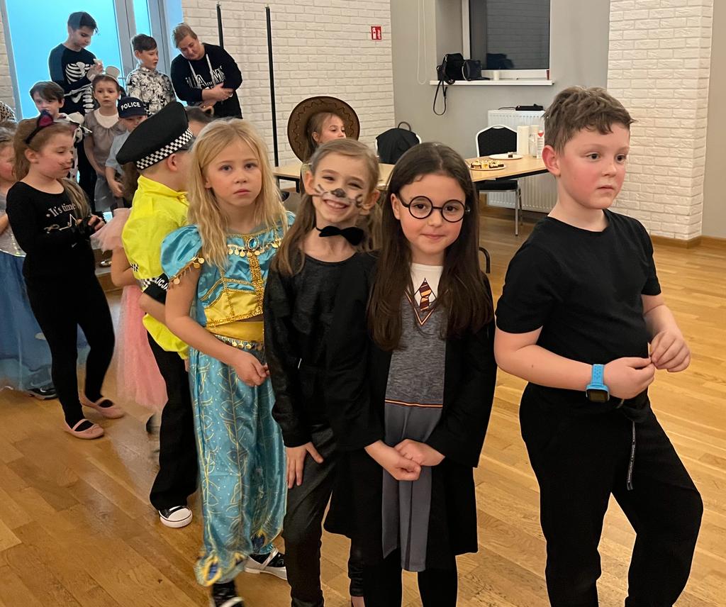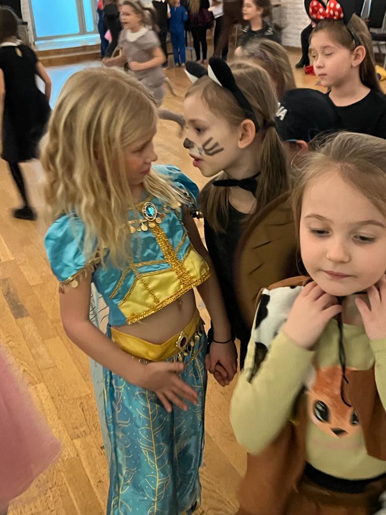 W trakcie pierwszej części spotkania uczniowie młodszych klas bawili się pod kierunkiem animatora. Na sali balowej zamiast uczniów pojawiły się księżniczki, damy dworu, wróżki, baletnice, Indianki, piratki i przedziwne zwierzątka. Przybyli również rycerze,piraci, klowni, kierowcy wyścigowi oraz czarnoksiężnicy. Utworzyli oni barwny korowód i bawili się w rytm muzyki.