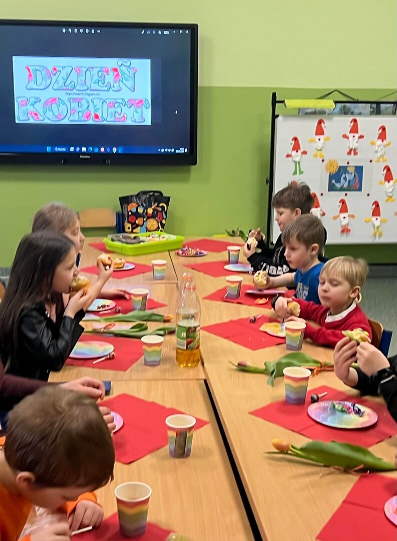Dnia 8 marca 2023 roku, w klasach I – III obchodzony był ,,Dzień Kobiet”. Chłopcy przy pomocy rodziców sprawili dziewczynkom niespodziankę i złożyli im najserdeczniejsze życzenia z okazji ich święta. Przygotowali prezenty, słodki poczęstunek oraz zaprosili do wspólnej zabawy.