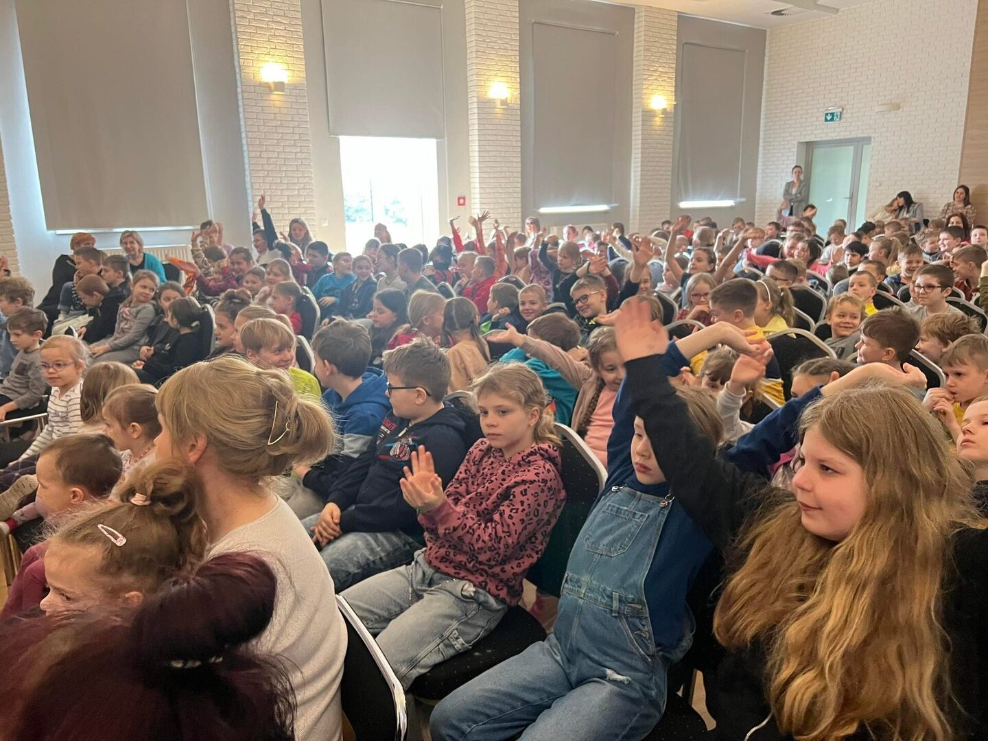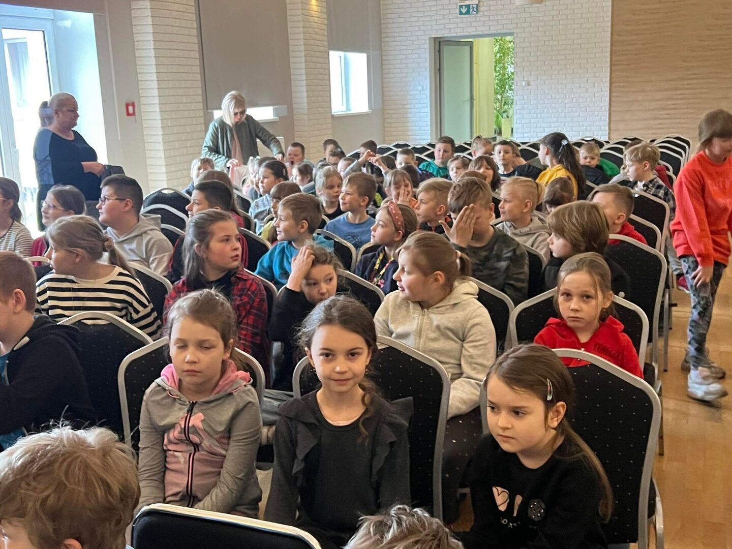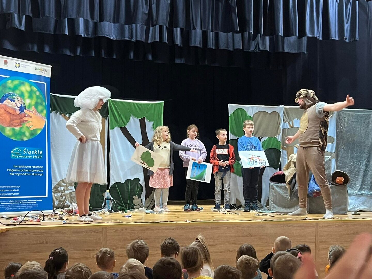 17 kwietnia 2023 r. uczniowie klasy I - III na zaproszenie Wójta Gminy Bobrowniki wzięli udział w spektaklu ekologicznym pt. „Wielka przygoda małej chmurki”,