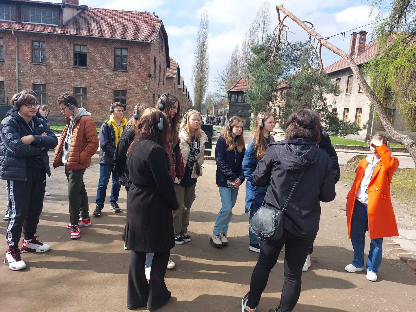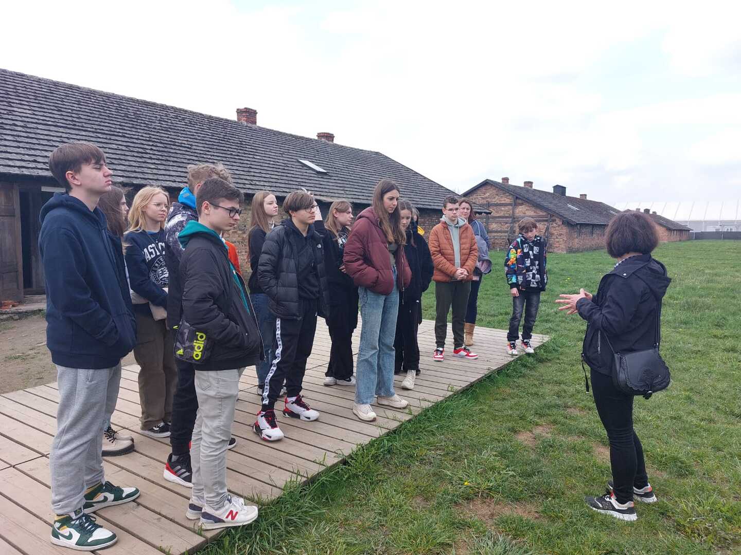 Gdy uczniowie weszli na teren Muzeum przed nimi ukazał się słynny napis: „Arbeit macht frei” czyli: „Praca czyni wolnym” – sarkastyczny tekst umieszczony przez Niemców. W trakcie zwiedzania ósmoklasiści dowiedzieli się o warunkach życia więźniów, kategoriach i oznaczeniach więźniów, liczbie ofiar, sytuacji dzieci w obozie, eksperymentach medycznych, karach i egzekucjach, a także o ewakuacji i wyzwoleniu z obozu.