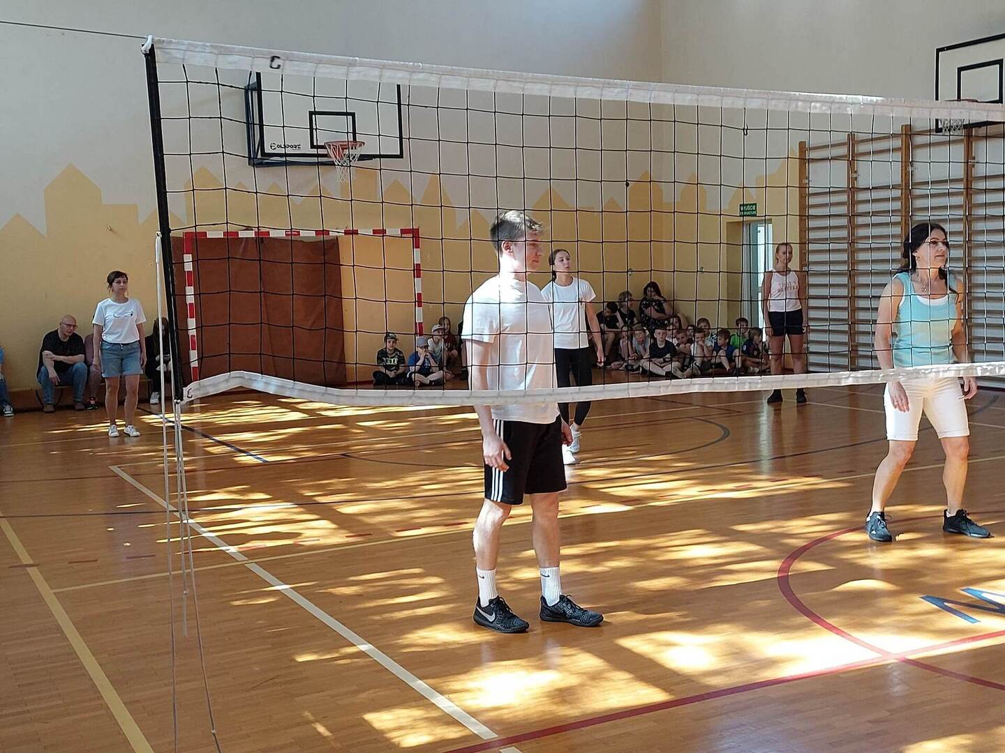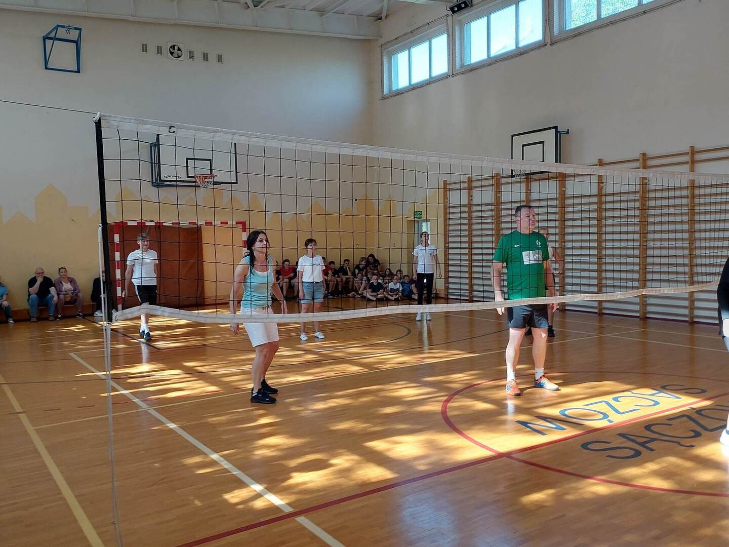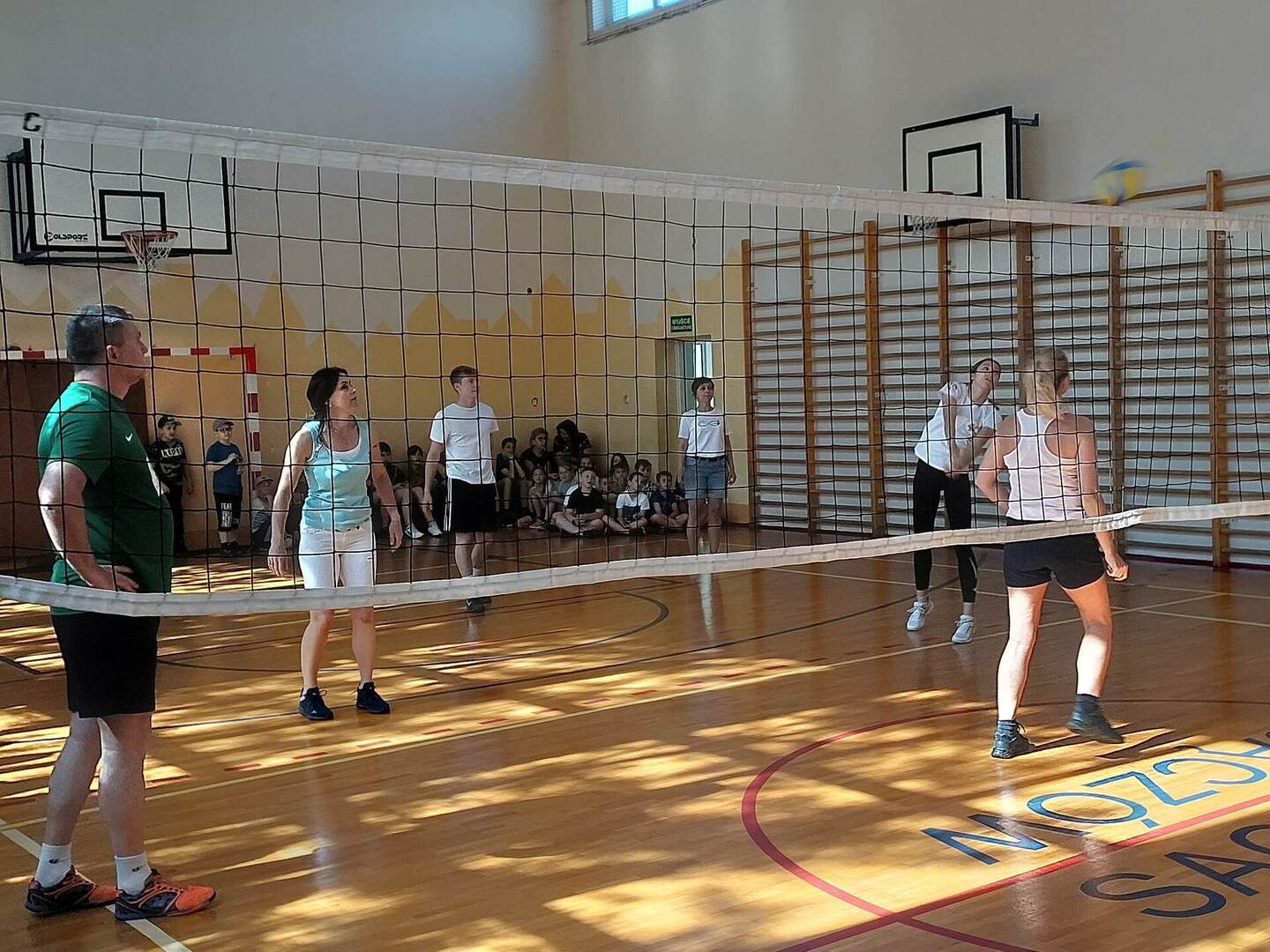 Całość imprezy uświetnił nam mecz w piłce siatkowej uczniowie kontra nauczyciele, od którego to rozpoczęliśmy naszą imprezę. Nasi belfrowie dzielnie dotrzymywali nam kroku do samego końca ambitnie walcząc o każdy punkt. Odrobinę lepsi byli znowu uczniowie wygrywając całość 3:0. Wielkie brawa dla wszystkich, bo zafundowali nam niezłe widowisko dostarczając nam niezapomnianych emocji.