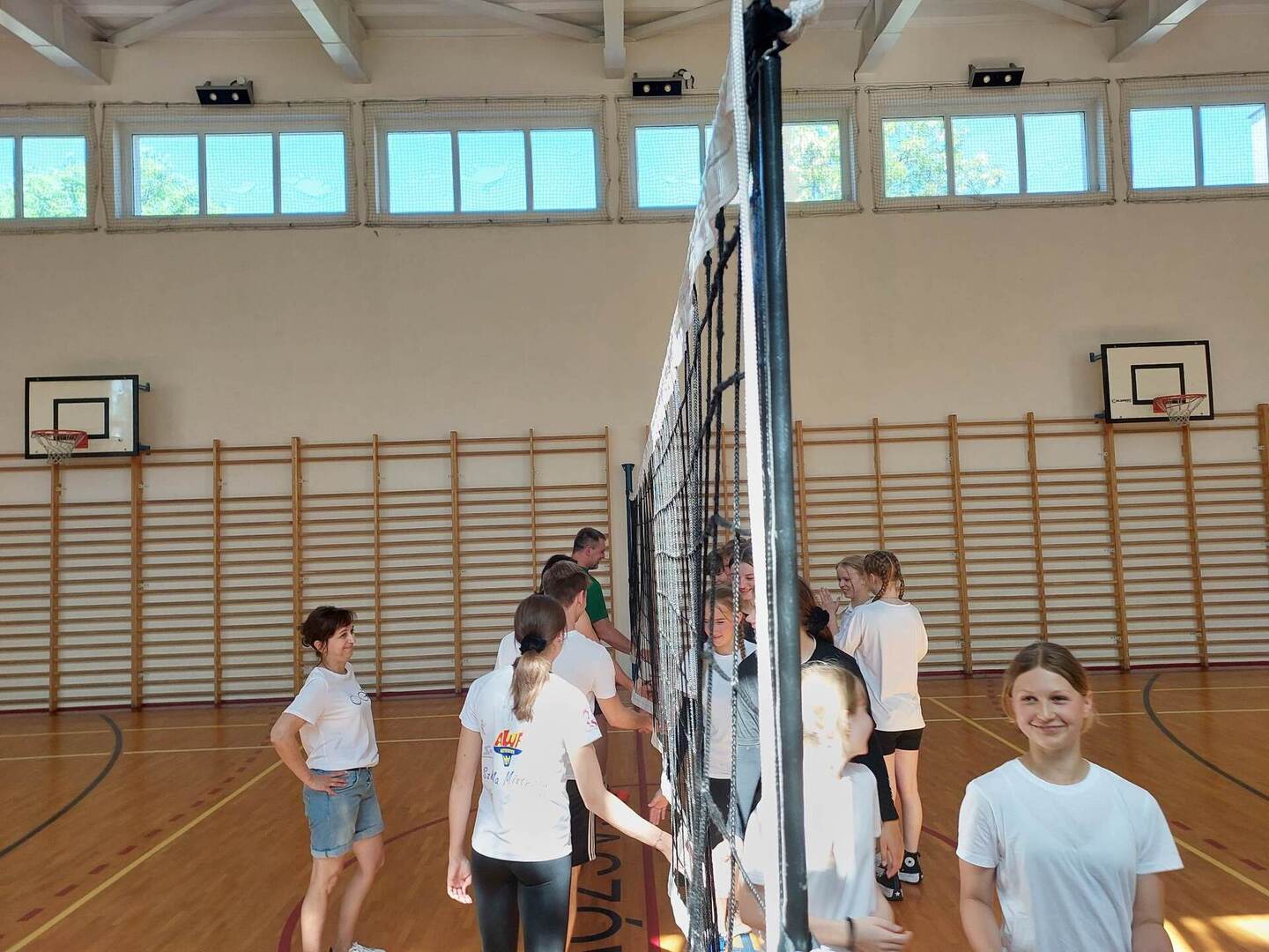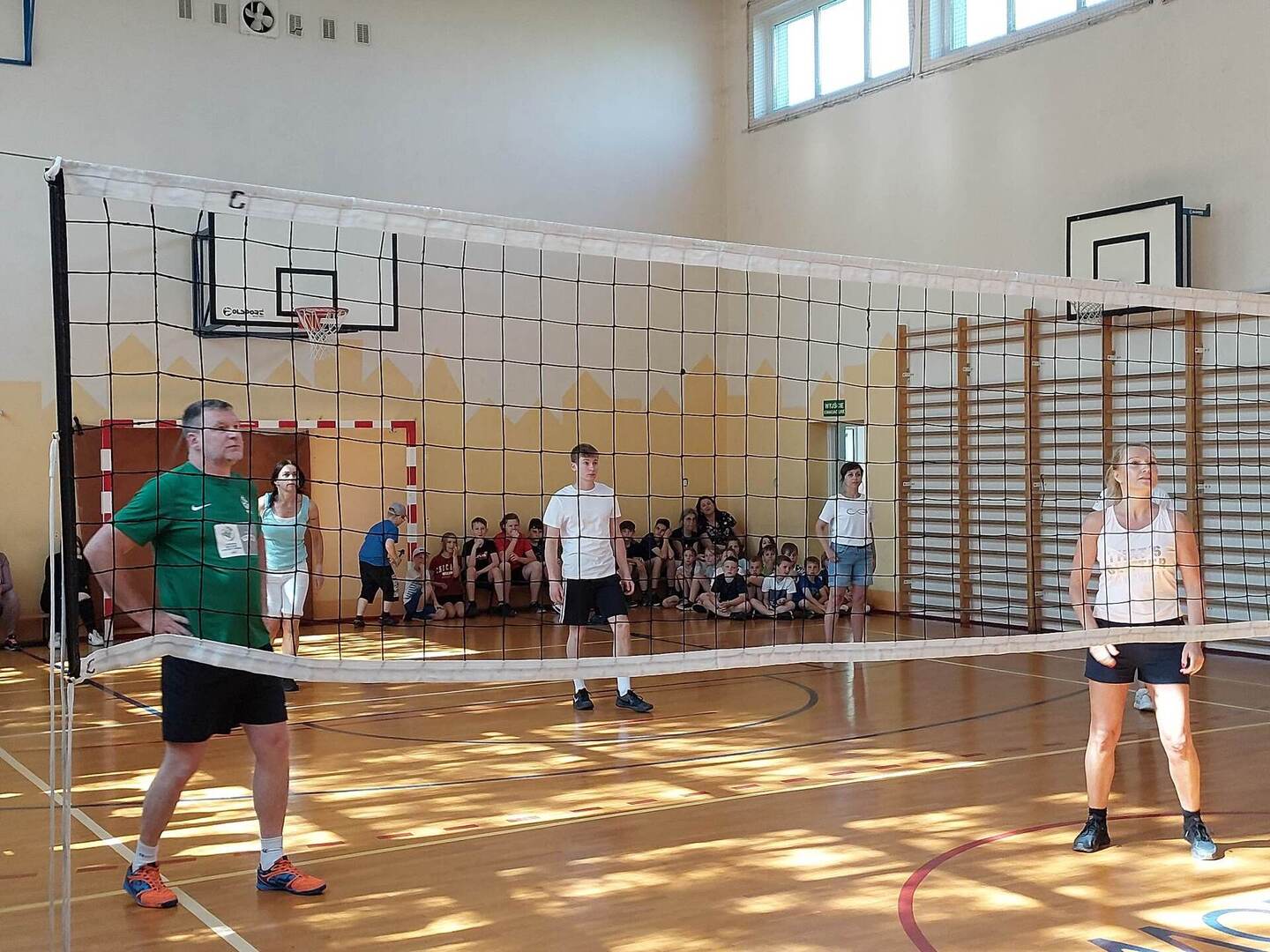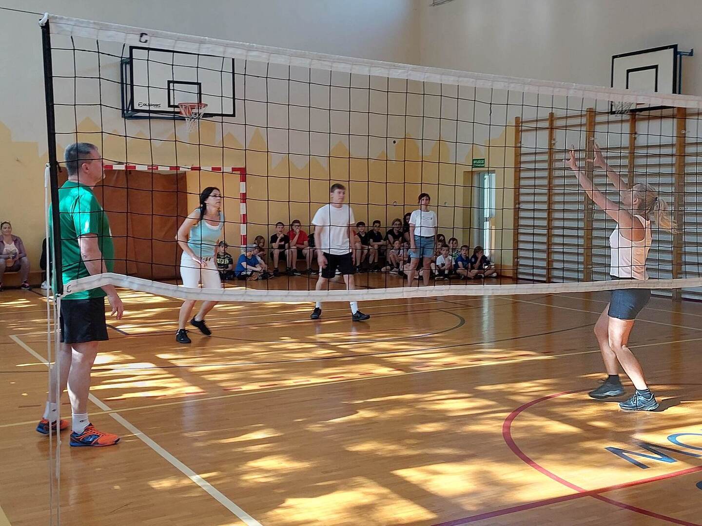 Całość imprezy uświetnił nam mecz w piłce siatkowej uczniowie kontra nauczyciele, od którego to rozpoczęliśmy naszą imprezę. Nasi belfrowie dzielnie dotrzymywali nam kroku do samego końca ambitnie walcząc o każdy punkt. Odrobinę lepsi byli znowu uczniowie wygrywając całość 3:0. Wielkie brawa dla wszystkich, bo zafundowali nam niezłe widowisko dostarczając nam niezapomnianych emocji.