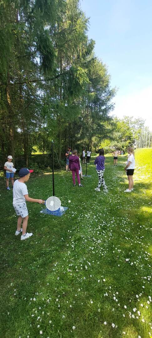 Ponieważ dopisała piękna pogoda wszyscy wyszliśmy na zewnątrz, gdzie rywalizowaliśmy w różnych konkurencjach sportowych. Były biegi, skoki na skakance, rzuty do celu i na odległość, odbicia piłki siatkowej, strzały na bramkę i żonglerka. Mogliśmy się popisać swoimi umiejętnościami sprawdzając swoje możliwości w fajnych zadaniach ruchowych, do których niewątpliwie zaliczał się speed- ball. Dzięki Clubowi Sportowemu Senior ROYAL mieliśmy wielką przyjemność sprawdzenia swoich możliwości w tej fantastycznej grze rekreacyjnej.