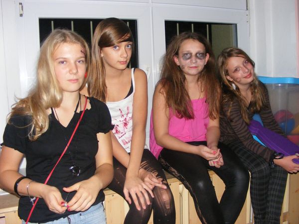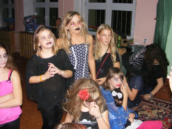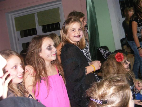 Ale upiorna dyskoteka, nie macie pojęcia jaką wyobraźnię mają jej uczestnicy. Na dyskotece zagościły upiory, czarownice, topielice i inne straszydła. Mięliśmy super makijaże i malunki, niektórych nie można było poznać. Jak już jest to w tradycji naszych dyskotek, zajadaliśmy się pizzą i bawiliśmy się bardzo bardzo fajnie. Do zobaczenia koleżanki i koledzy na andrzejkachJ