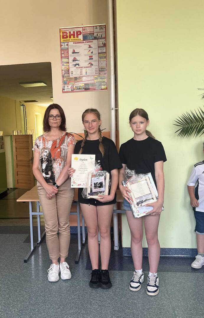 Nauczycielka plastyki pani Agnieszka Giec-Pierzchała wręczyła lauretkom konkursu gminnego literacko – plastycznego Marcie Cabaj i Natalii Gwoźdź pamiątkowe dyplomy i nagrody.