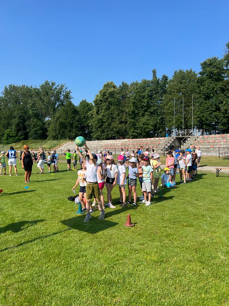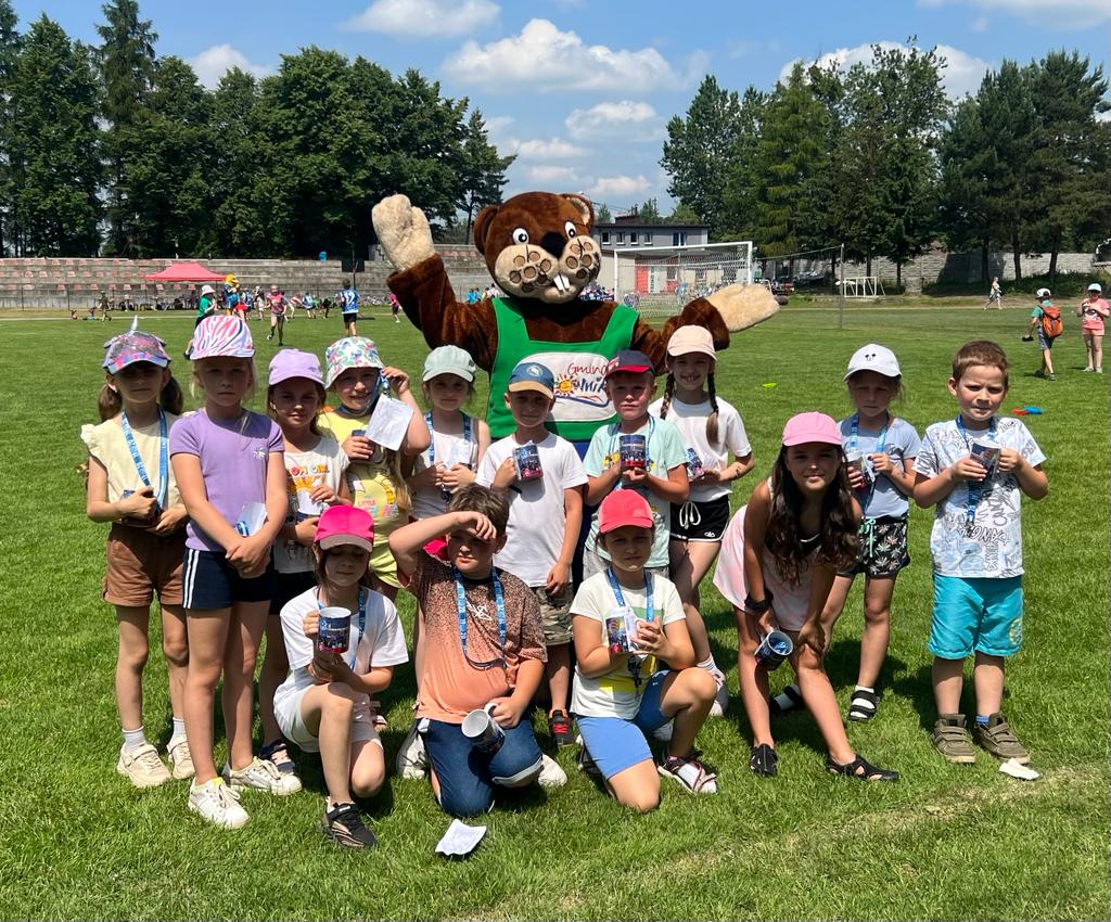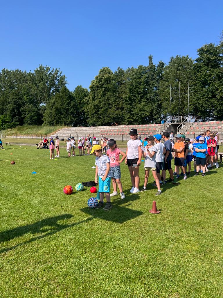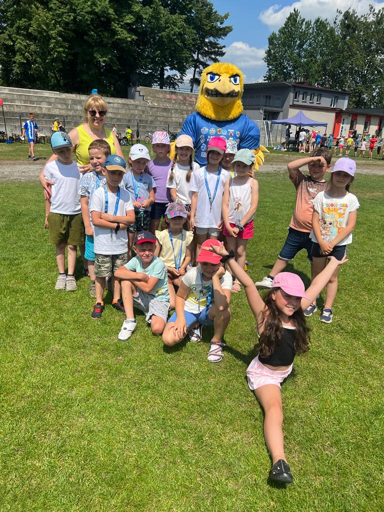 W czwartek 22 czerwca 2023 r. uczniowie klas I – IV oraz przedszkolaki z najstarszej grupy przedszkolnej z Zespołu Szkolno - Przedszkolnego w Sączowie wzięli udział w imprezie sportowej zorganizowanej na stadionie Orła w Bobrownikach pod hasłem „Ruch to zdrowie”. Głównym organizatorem imprezy było