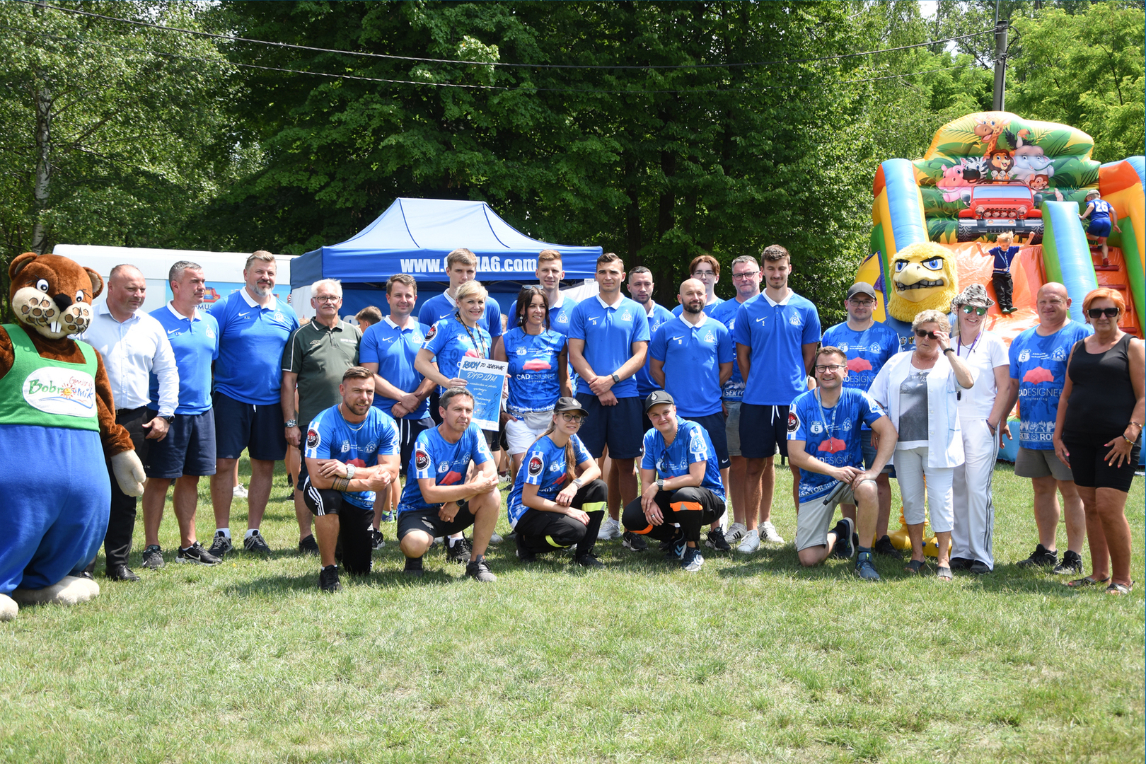 Podczas zabawy dzieciom towarzyszył muskularny górnośląski orzeł Adler w niebieskiej koszulce czyli oficjalna maskotka Ruchu Chorzów i znany wszystkim Bóbr – maskotka Gminy Bobrowniki.