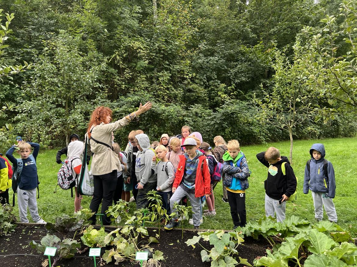 2 października 2023 r. uczniowie klasy I, II i III wybrali się w podróż do Śląskiego Ogrodu Botanicznego w Radzionkowie na warsztaty terenowe „Tropiciele przyrody”. W pięknym, jesiennym słonku uczniowie zwiedzali Ogród Botaniczny, oglądali, wąchali i smakowali owoce drzew i krzewów oraz pod okiem wykwalifikowanych edukatorów odkrywali tajniki jesiennej przyrody. Uczestnicy wycieczki poznali sadownicze, ozdobne, dendrologiczne, miododajne i inne kolekcje roślinne występujące na terenie Ogrodu. Przy pomocy narzędzi takich jak lupy i lornetki, samodzielnie tropili tajemnice natury.