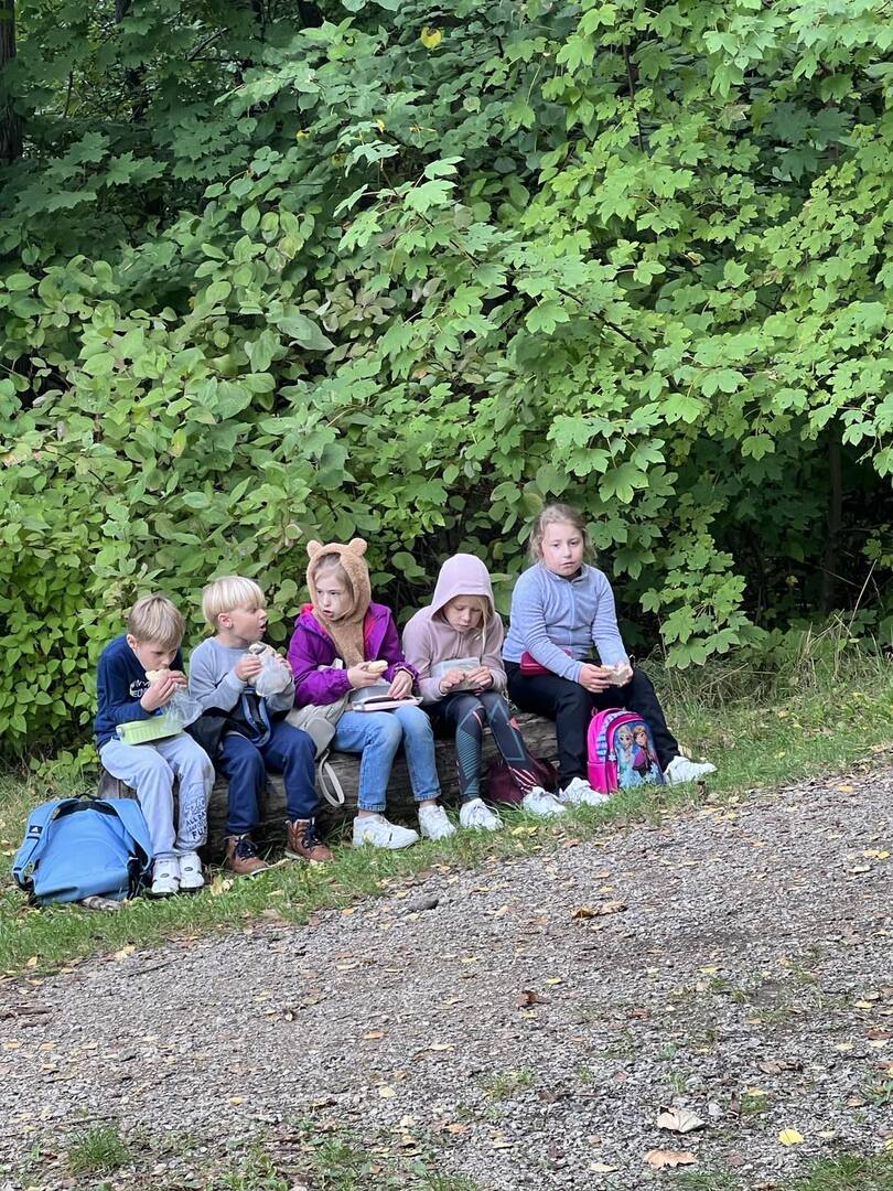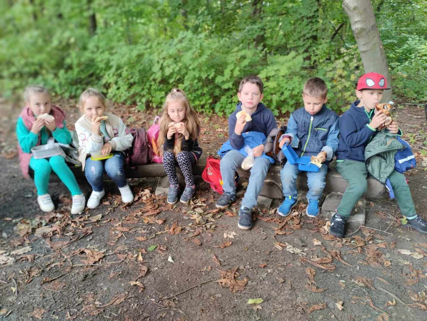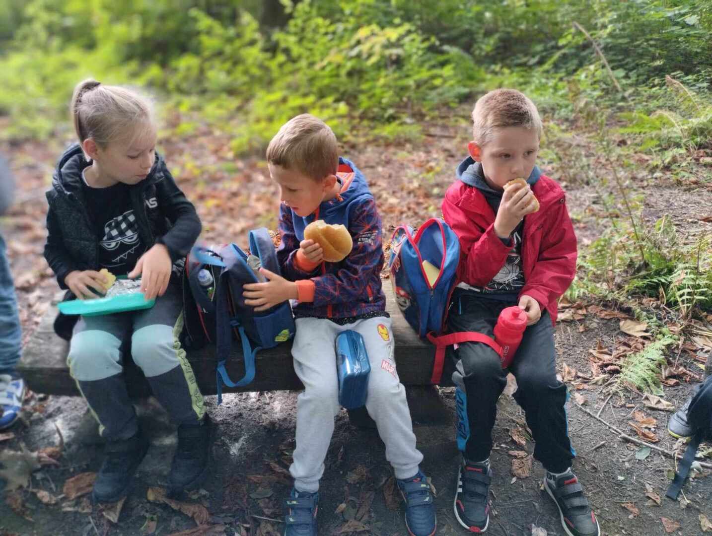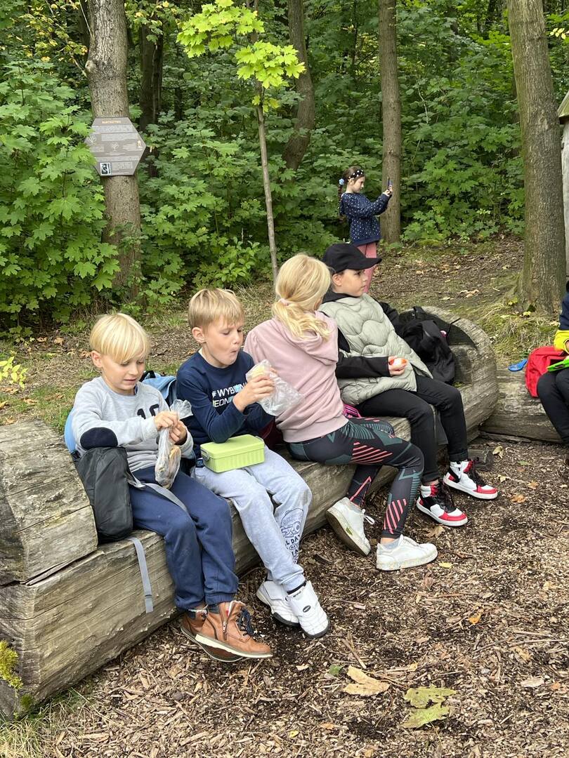 Atrakcją wycieczki było wspólne śniadanie na trawie. Zwykłe kanapki smakowały nadzwyczajnie, kiedy zjadało się je w otoczeniu pięknej przyrody.