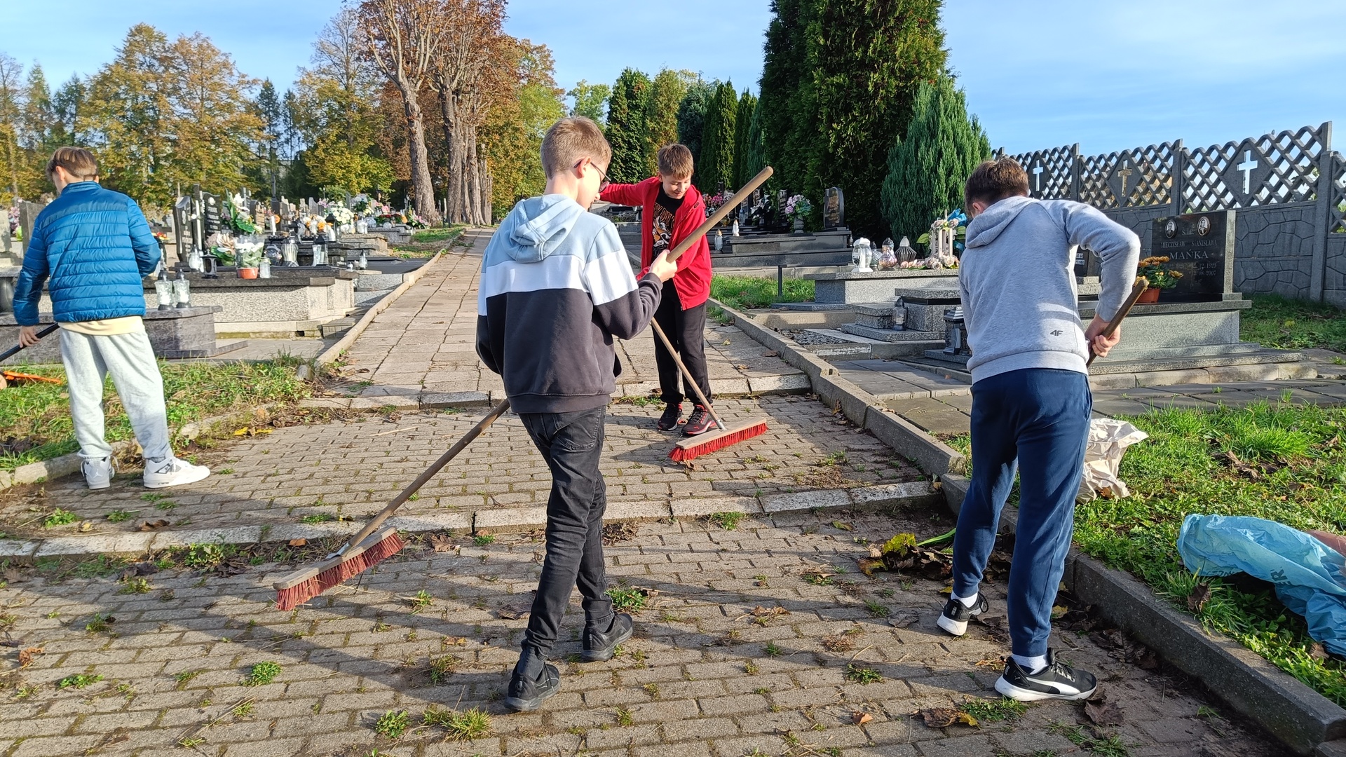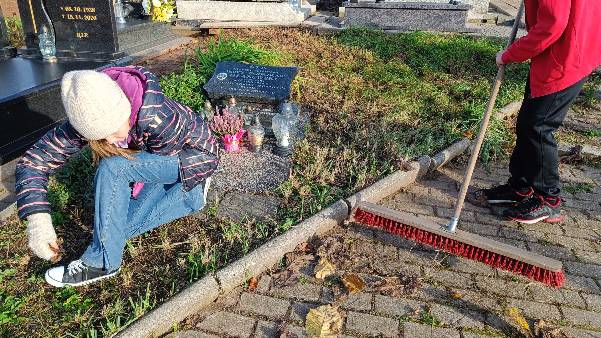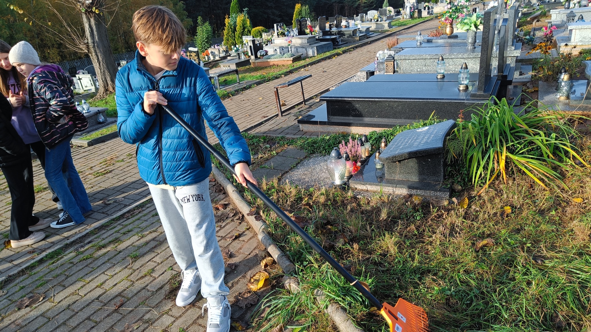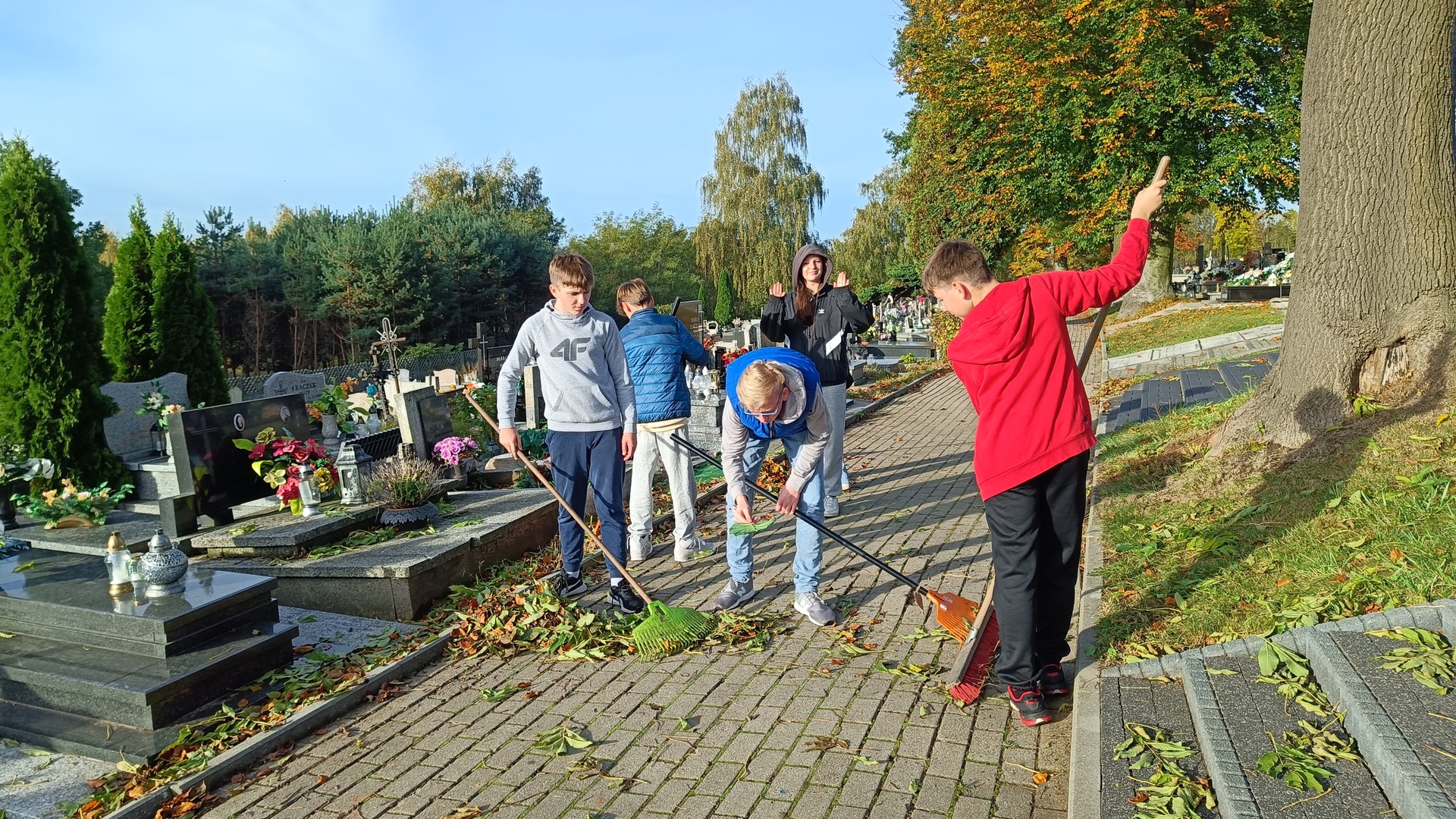 Listopad to wyjątkowy miesiąc w polskiej tradycji- miesiąc zadumy i pamięci o tych, których nie ma już wśród nas. Naszą szkolną tradycją jest porządkowanie grobów i grabienie liści na alejkach parafialnego cmentarza w Sączowie w ramach akcji „Lampka pamięci”. W ostatnie dni października uczniowie klas V-VII uprzątnęli grób Nieznanych Żołnierzy, Starszego Marynarza Jerzego Głażewskiego oraz zapalili zebrane w szkolnej akcji znicze.