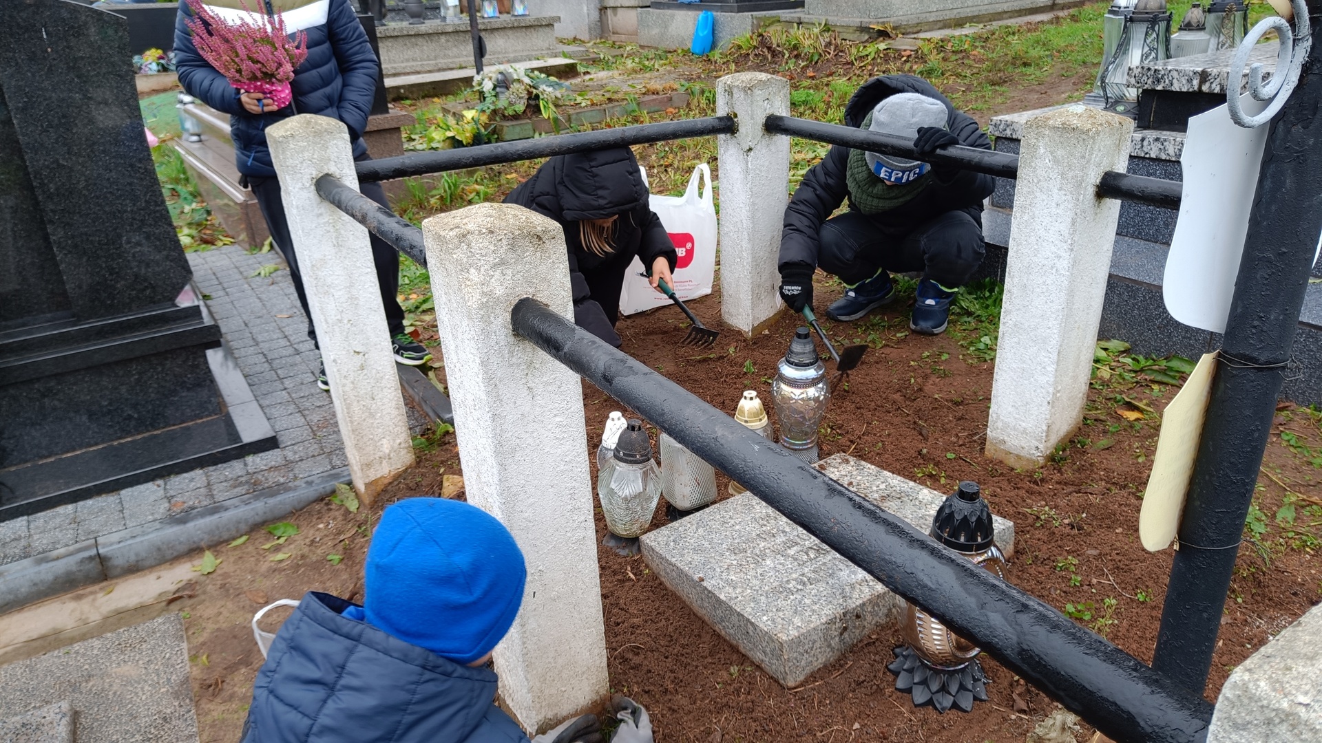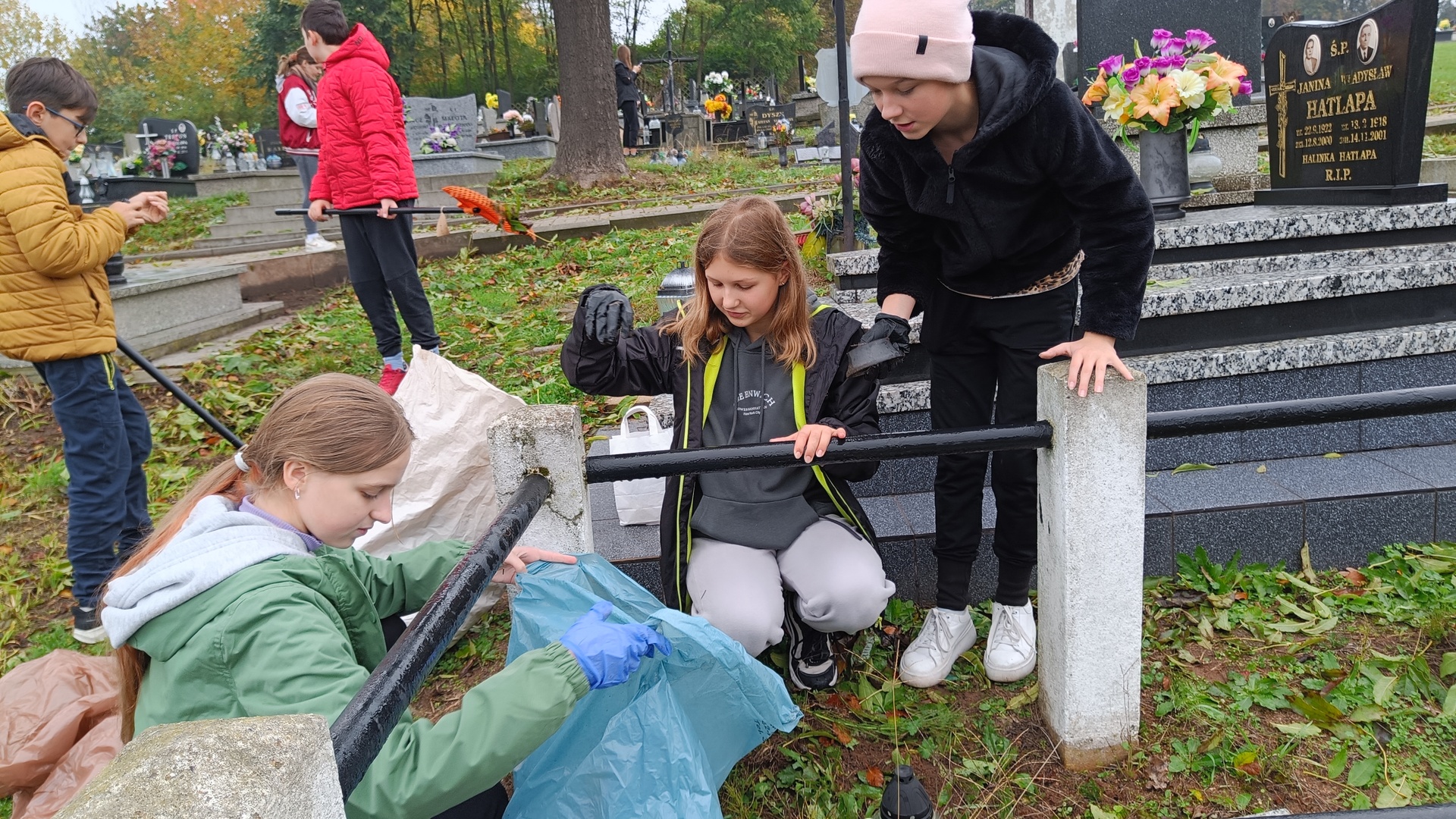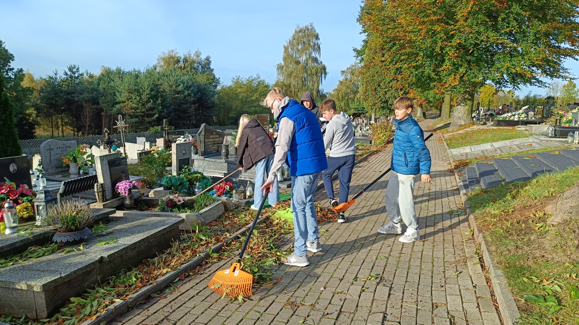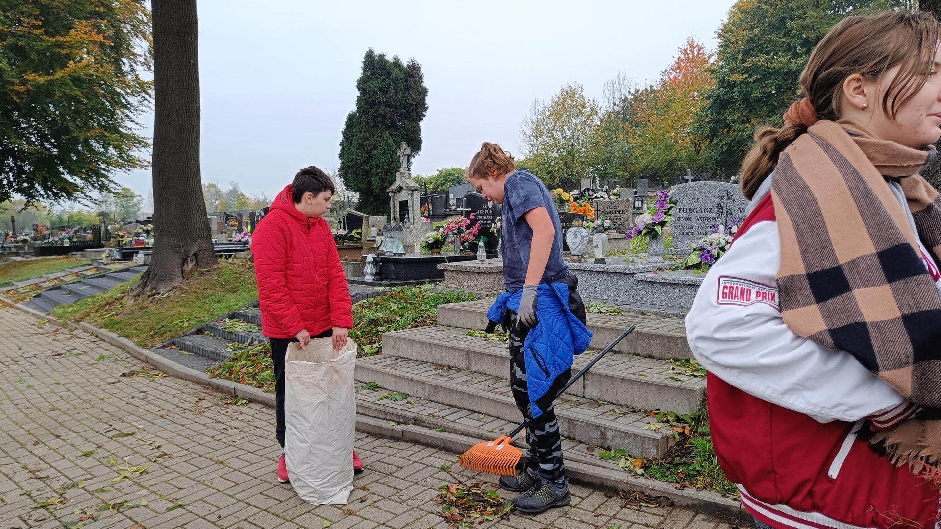 Listopad to wyjątkowy miesiąc w polskiej tradycji- miesiąc zadumy i pamięci o tych, których nie ma już wśród nas. Naszą szkolną tradycją jest porządkowanie grobów i grabienie liści na alejkach parafialnego cmentarza w Sączowie w ramach akcji „Lampka pamięci”. W ostatnie dni października uczniowie klas V-VII uprzątnęli grób Nieznanych Żołnierzy, Starszego Marynarza Jerzego Głażewskiego oraz zapalili zebrane w szkolnej akcji znicze.