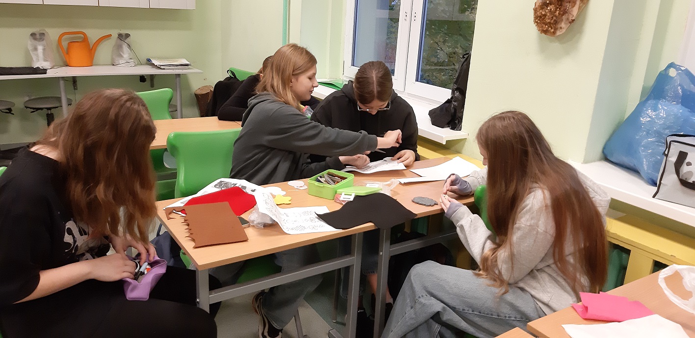 A póki co nasze siódmoklasistki spotykają się raz w tygodniu, żeby rozwijać umiejętności manualne: projektują, wykrawają oraz uczą się podstawowych ściegów krawieckich. Efektem spotkań będą własnoręcznie uszyte ozdoby świąteczne i breloki, którymi planują wesprzeć coroczny Kiermasz świąteczny organizowany przez Radę Rodziców.