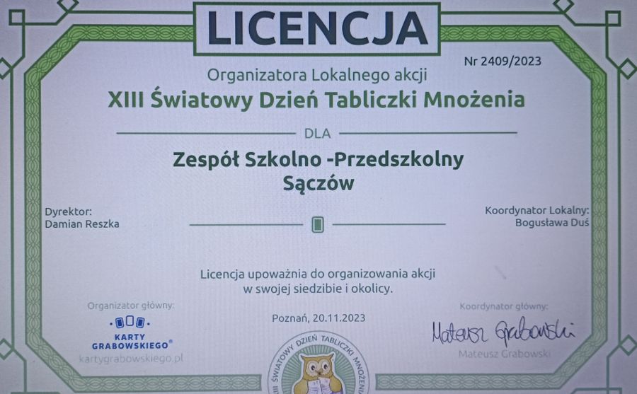 Dnia 17 listopada 2023 r. w naszej szkole odchodziliśmy XIII Światowy Dzień Tabliczki Mnożenia. Głównym celem akcji było propagowanie uczenia się matematyki za pomocą zabawy oraz zachęcenie do przypomnienia sobie tabliczki mnożenia w przyjemny i niecodzienny sposób.