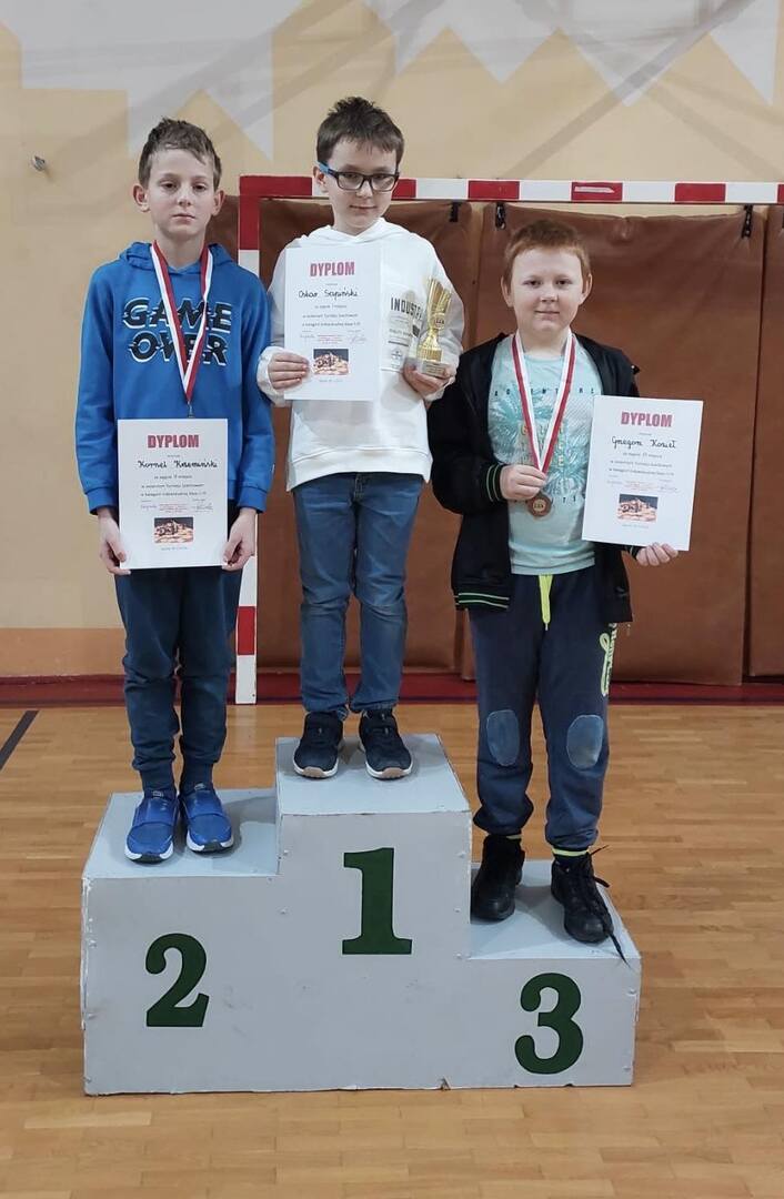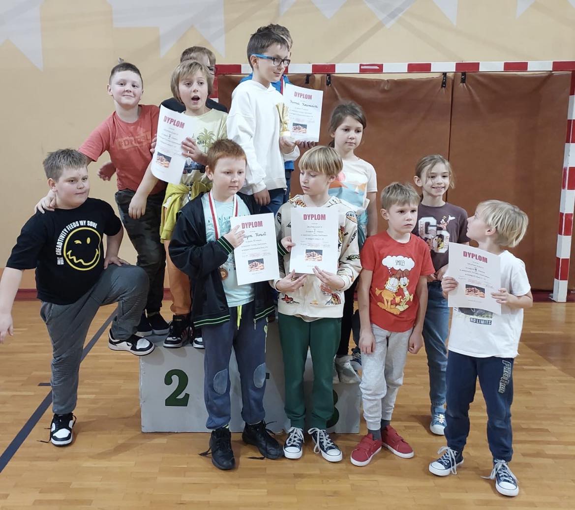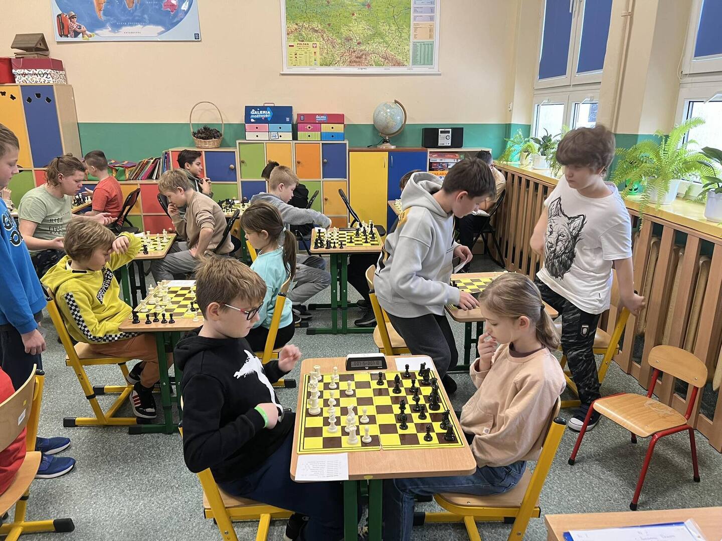Młodsi zawodnicy to początkowi gracze, którzy dopiero rozwijają swój talent w tym kierunku. Ale o starszych zawodnikach można powiedzieć, że to już pasjonaci tej królewskiej gry. W tym roku szkolnym 2023/2024 nasza drużyna z klasy VII zdobyła puchar mistrza powiatu będzińskiego w Igrzyskach Młodzieży Szkolnej w szachach. Dlatego gra była na bardzo wysokim poziomie.