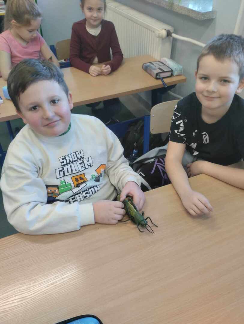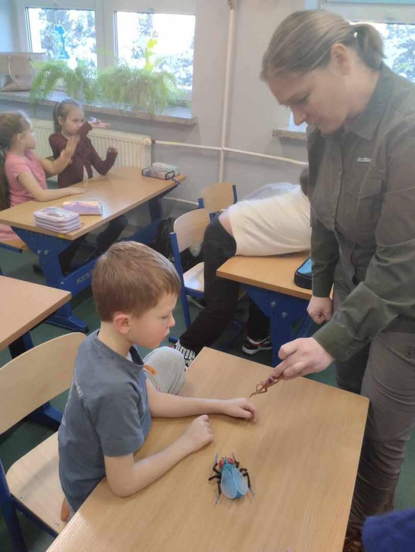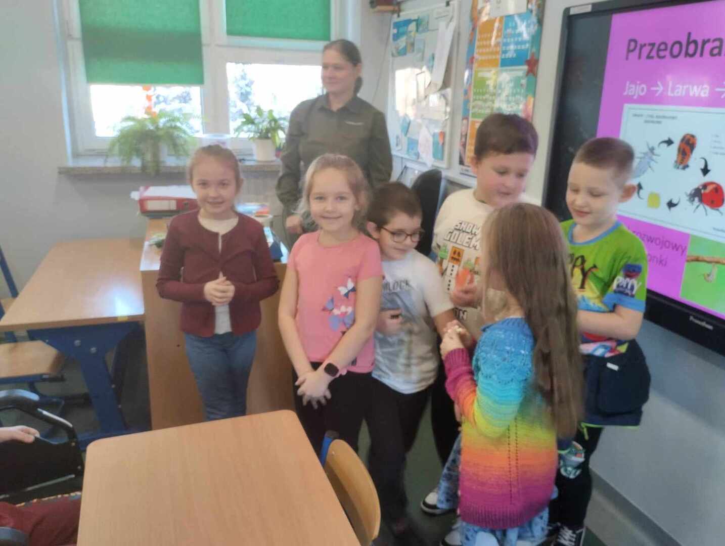 Tematem warsztatów były owady. Uczniowie poznali owady zamieszkujące w Polsce, ich tryb życia, budowę i rolę w przyrodzie. Na dużych modelach uczniowie mogli dokładnie pooglądać owady, które można spotkać w polskich lasach i nie tylko. Wspólnie z leśnikiem uczniowie poszukiwali odpowiedzi na pytanie, czy owady są pożyteczne, czy szkodliwe? Podczas spotkania z leśnikiem uczniowie przypomnieli sobie jak należy zachowywać się w lesie.