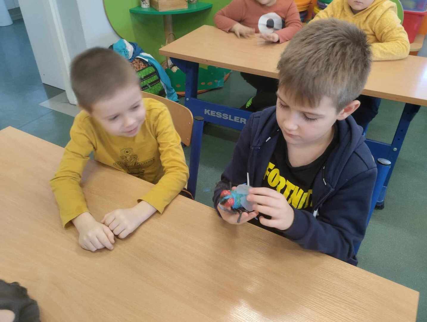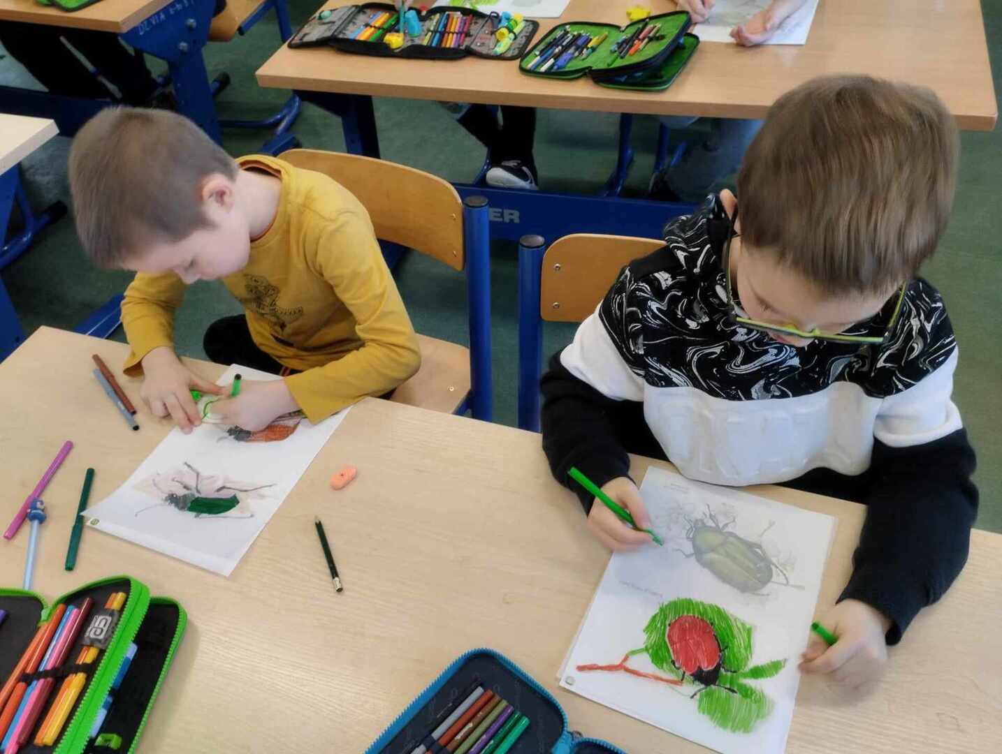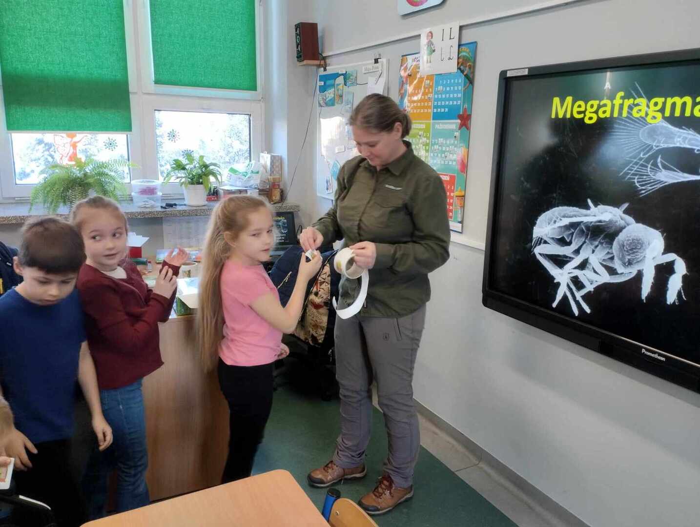 Tematem warsztatów były owady. Uczniowie poznali owady zamieszkujące w Polsce, ich tryb życia, budowę i rolę w przyrodzie. Na dużych modelach uczniowie mogli dokładnie pooglądać owady, które można spotkać w polskich lasach i nie tylko. Wspólnie z leśnikiem uczniowie poszukiwali odpowiedzi na pytanie, czy owady są pożyteczne, czy szkodliwe? Podczas spotkania z leśnikiem uczniowie przypomnieli sobie jak należy zachowywać się w lesie.