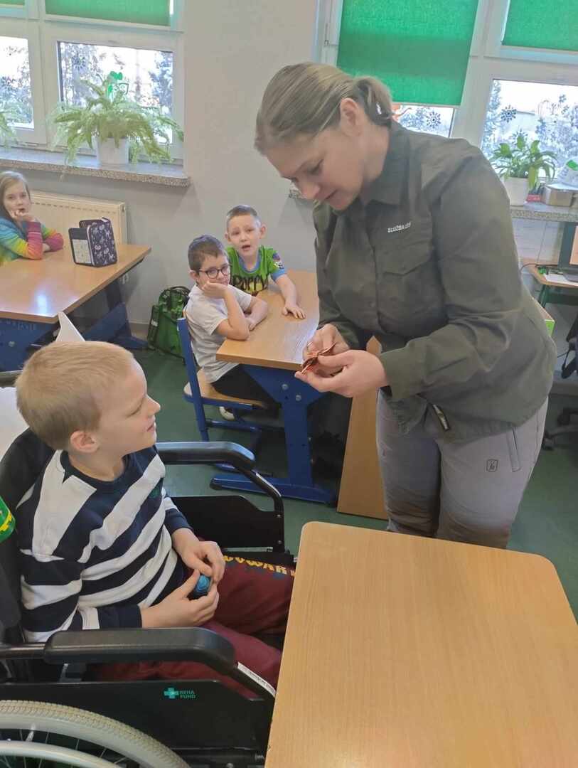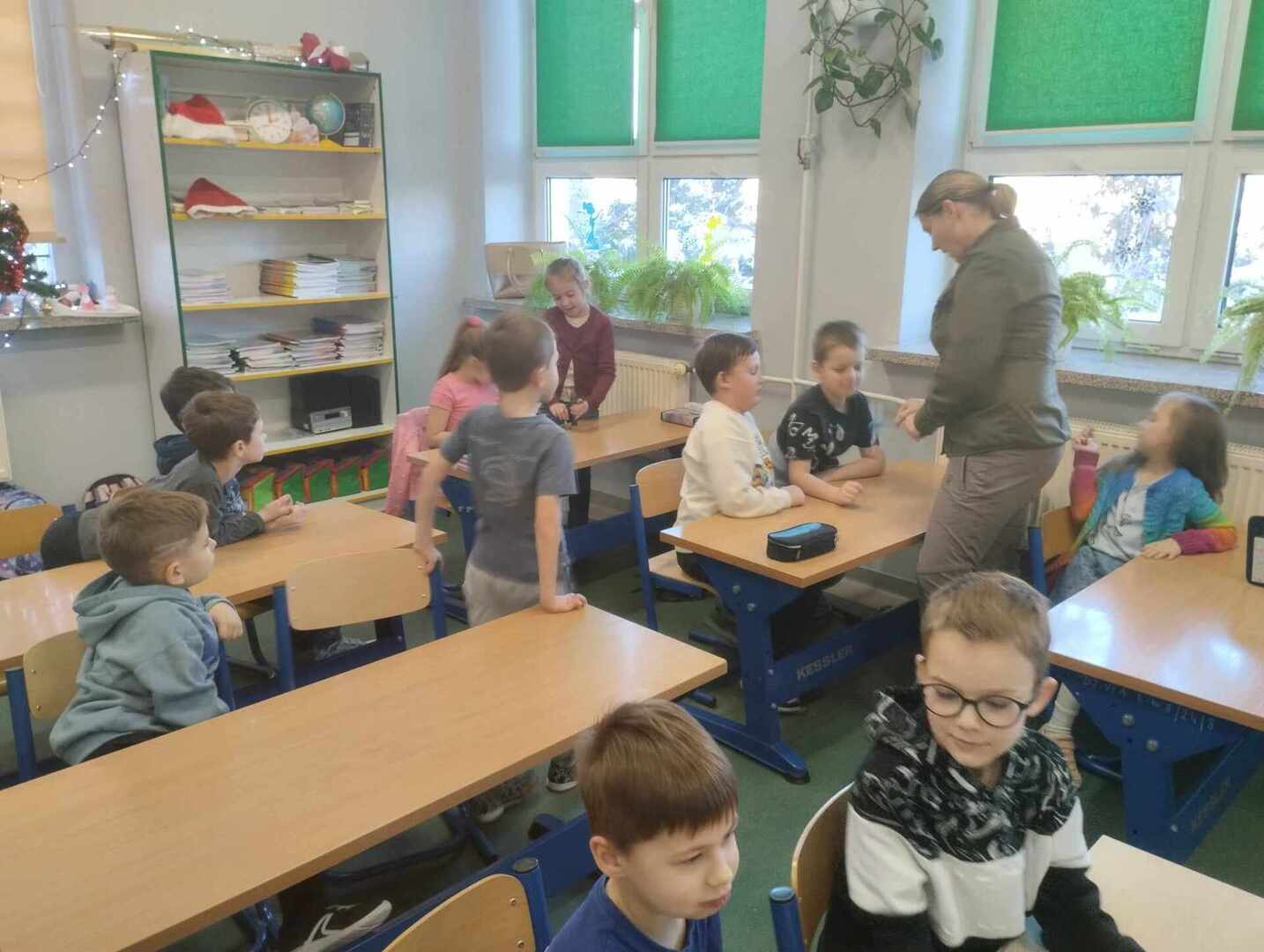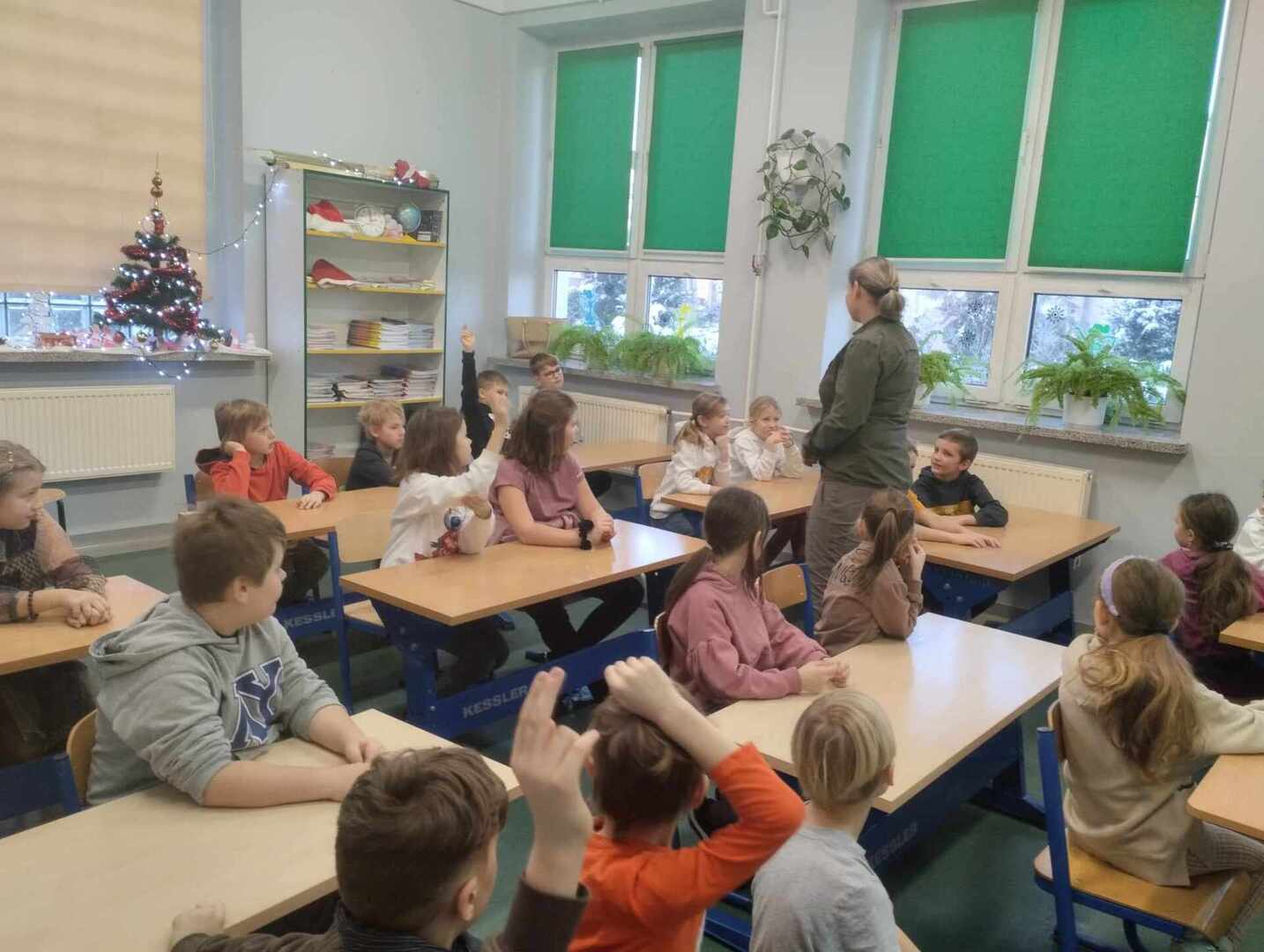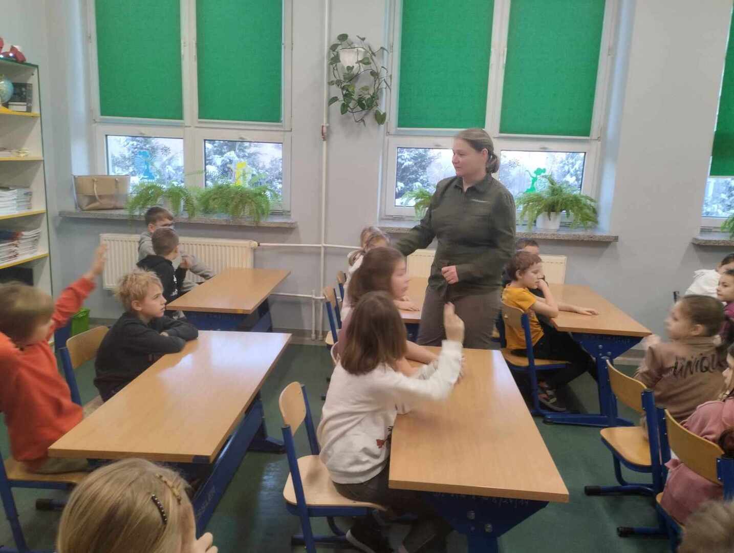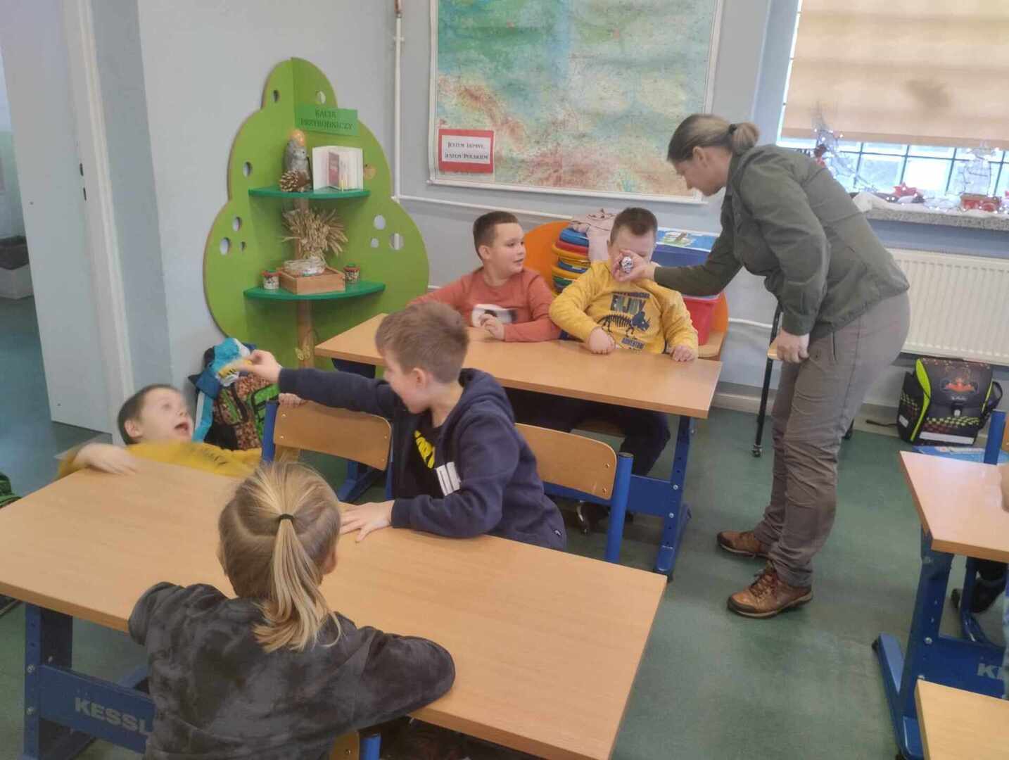 9 stycznia 2024 r. uczniowie klas 1, 2 i 3 odbyli bardzo ciekawe warsztaty przyrodnicze z leśnikiem Nadleśnictwa Świerklaniec. Warsztaty prowadziła pani Monika Pasterak - Starszy Specjalista Służby Leśnej ds. ochrony lasu.