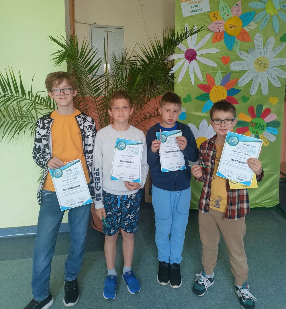 Miło nam poinformować, że uczeń klasy VI, Konrad Krzemiński, uczestnik II etapu uzyskał najlepszy wynik w gminie Bobrowniki w swojej kategorii wiekowej. Z powodzeniem do II etapu zakwalifikował się także Oskar Sapiński z kl. IV. W konkursie tym wzięli udział również: Kornel Krzemiński, Wojciech Rybczyński z klasy VI którzy swoje zmagania z zadaniami zakończyli na I etapie konkursu.